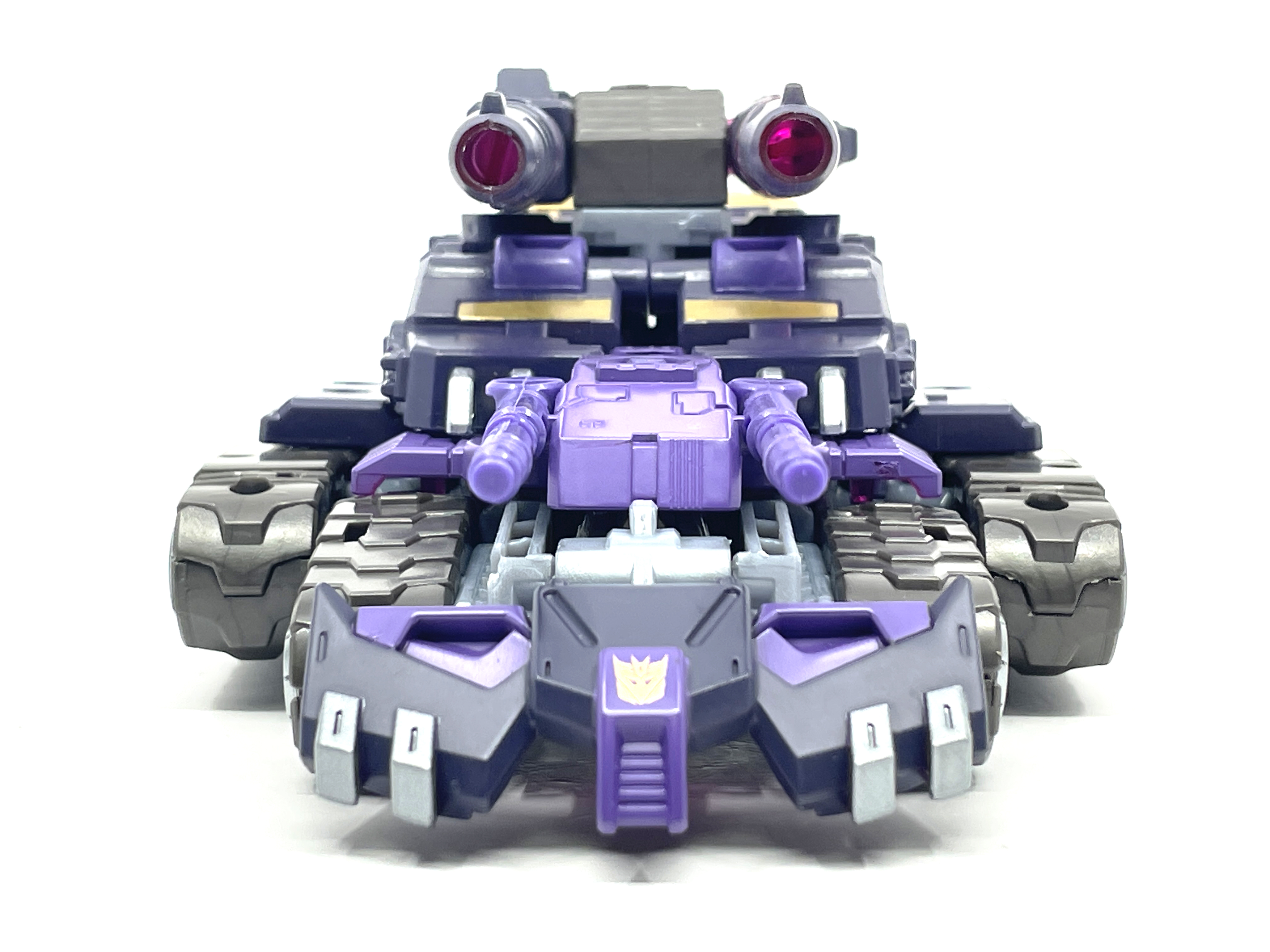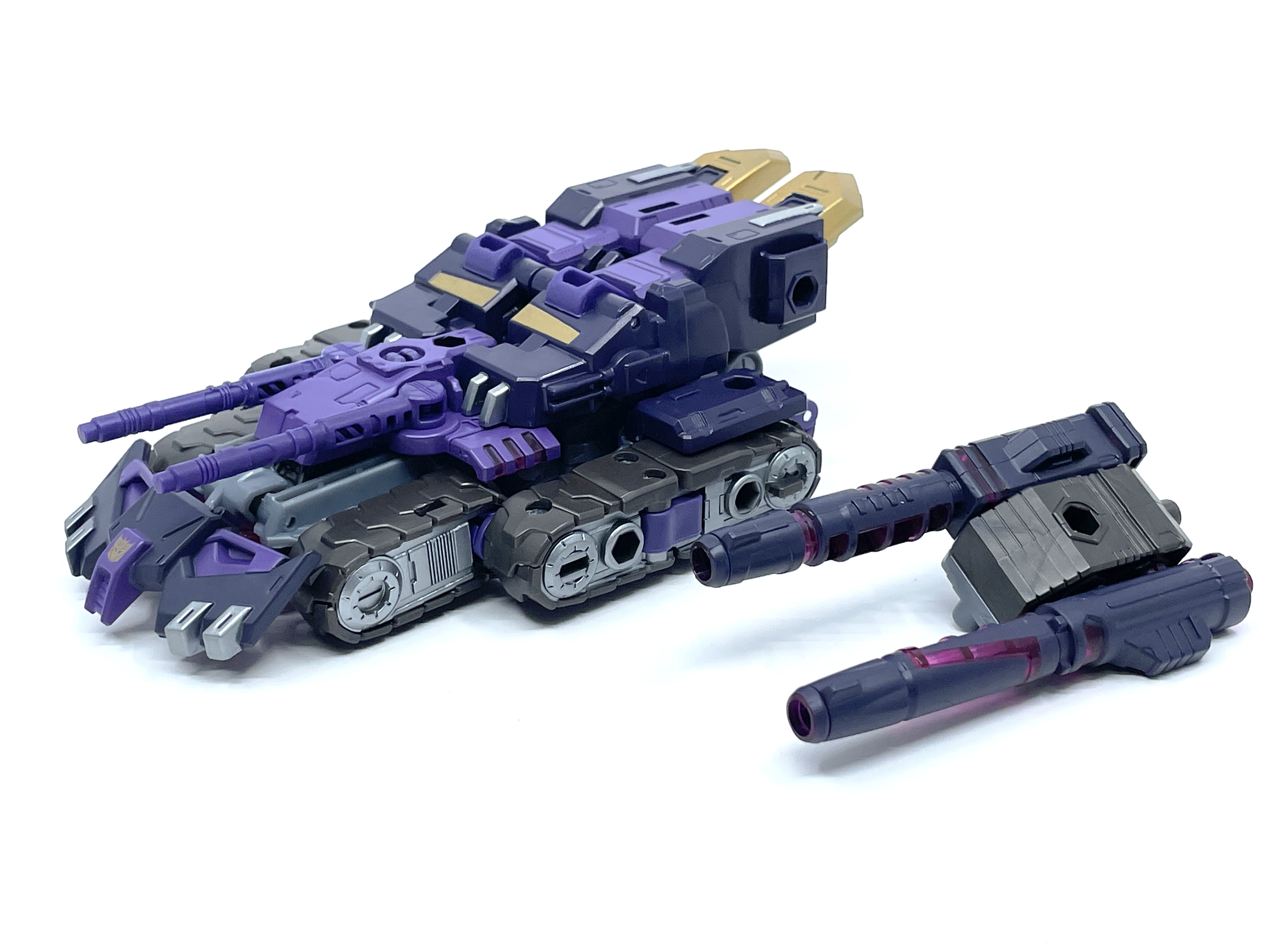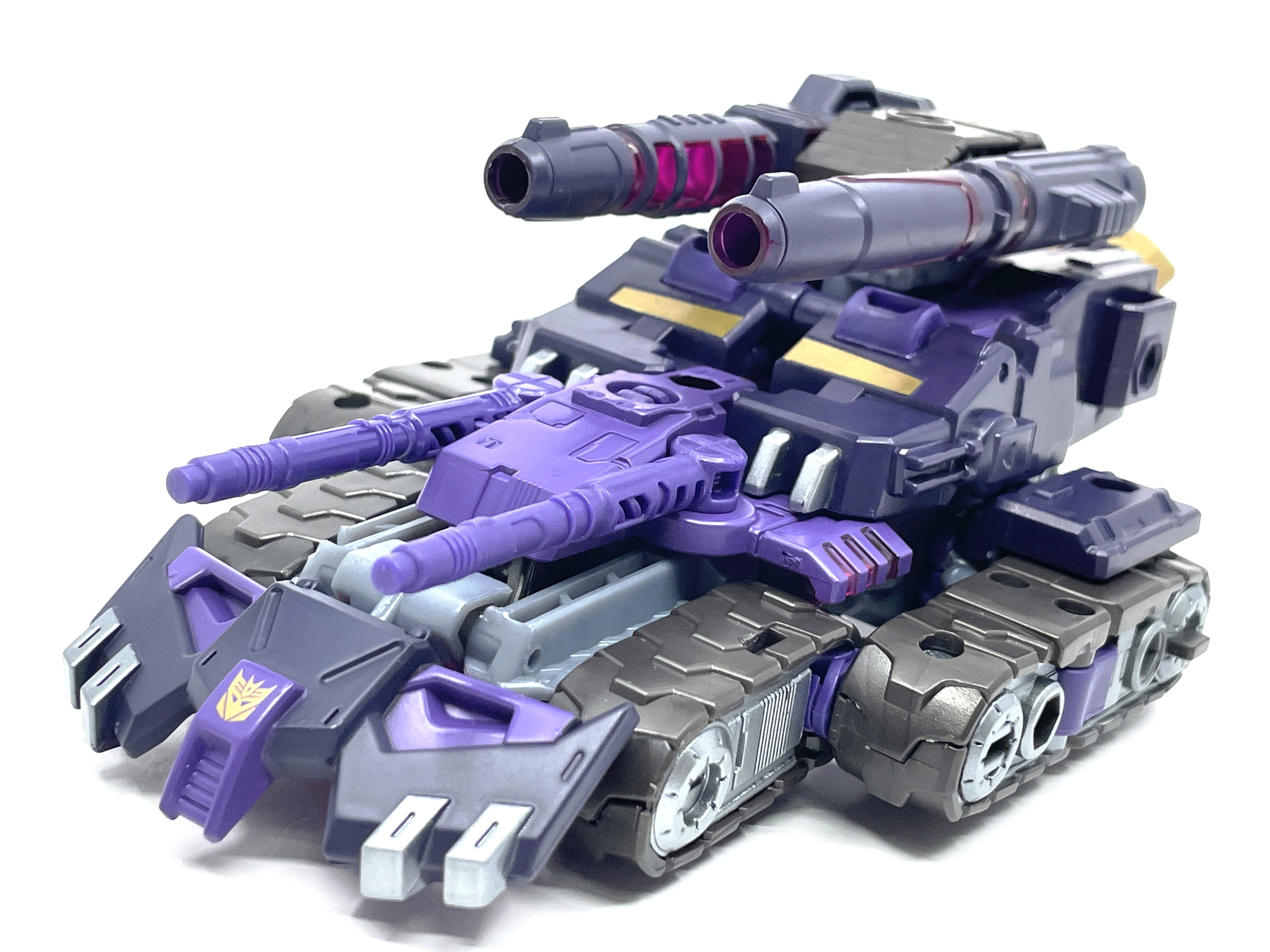 금색 디셉티콘 휘장.탄의 디셉티콘 마크는 보라색이 아닌 금색입니다.