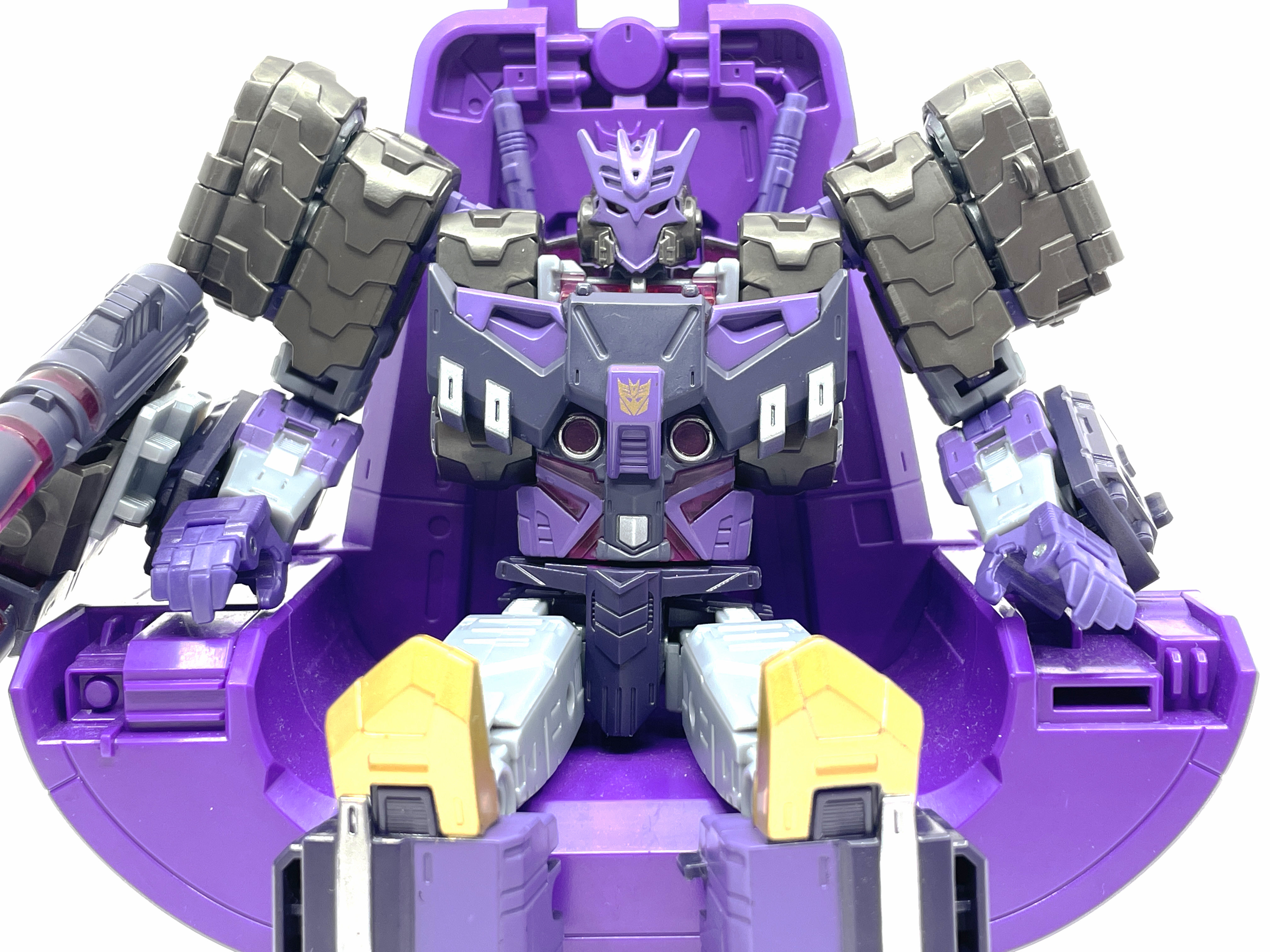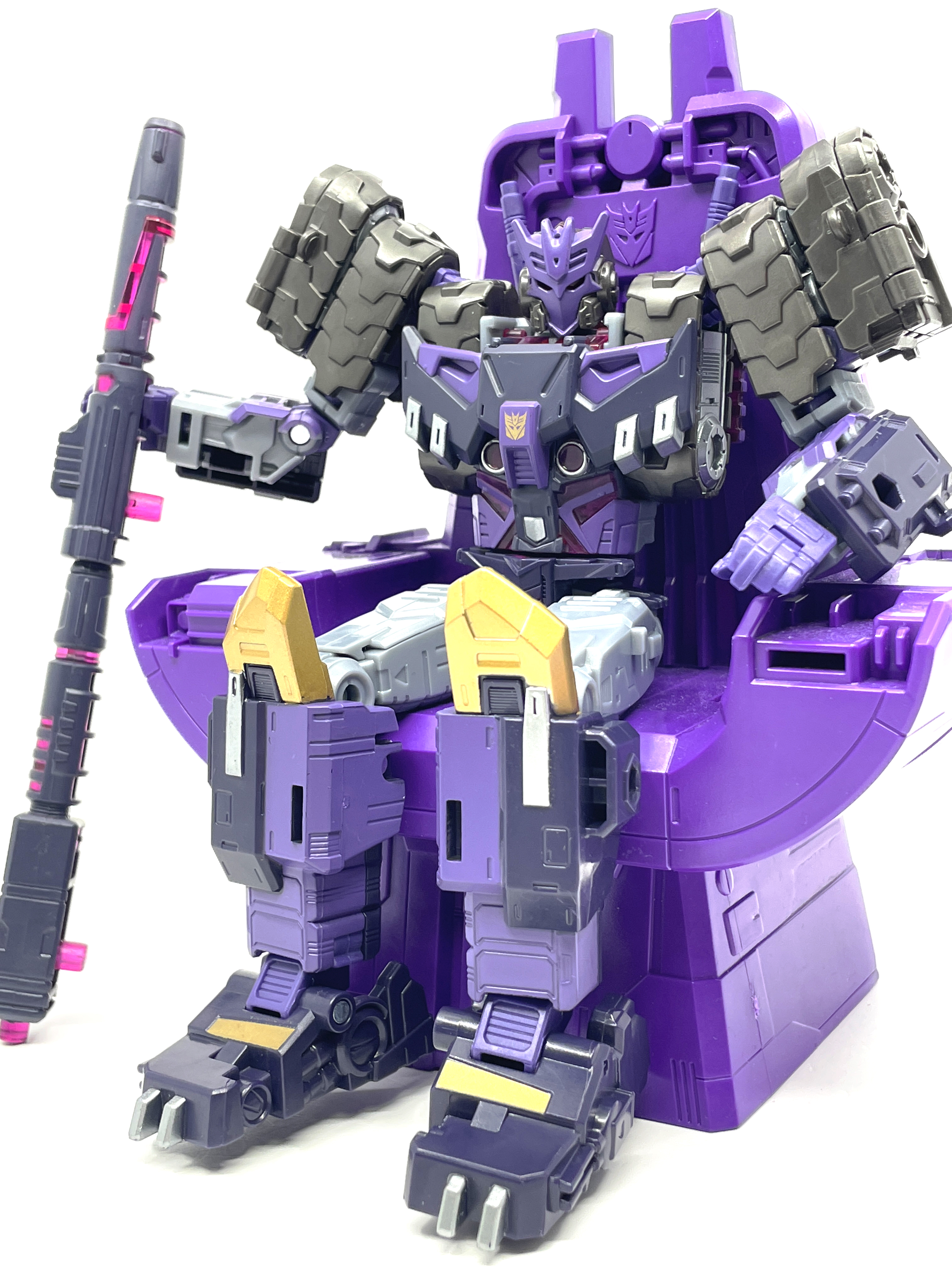 스튜디오 86 리더급 킹 스타스크림 제품에 포함된 네메시스 왕좌에 앉은 탄.