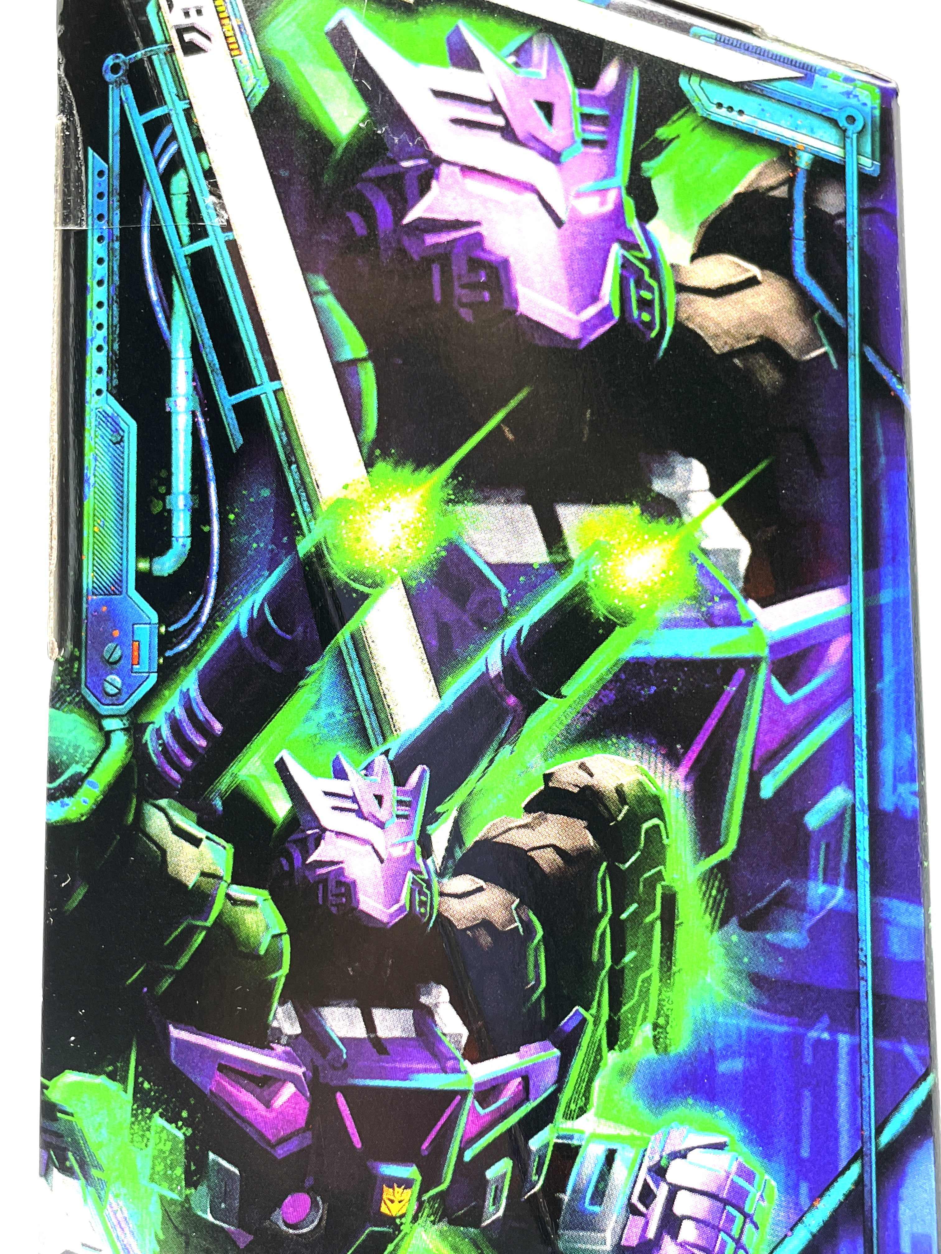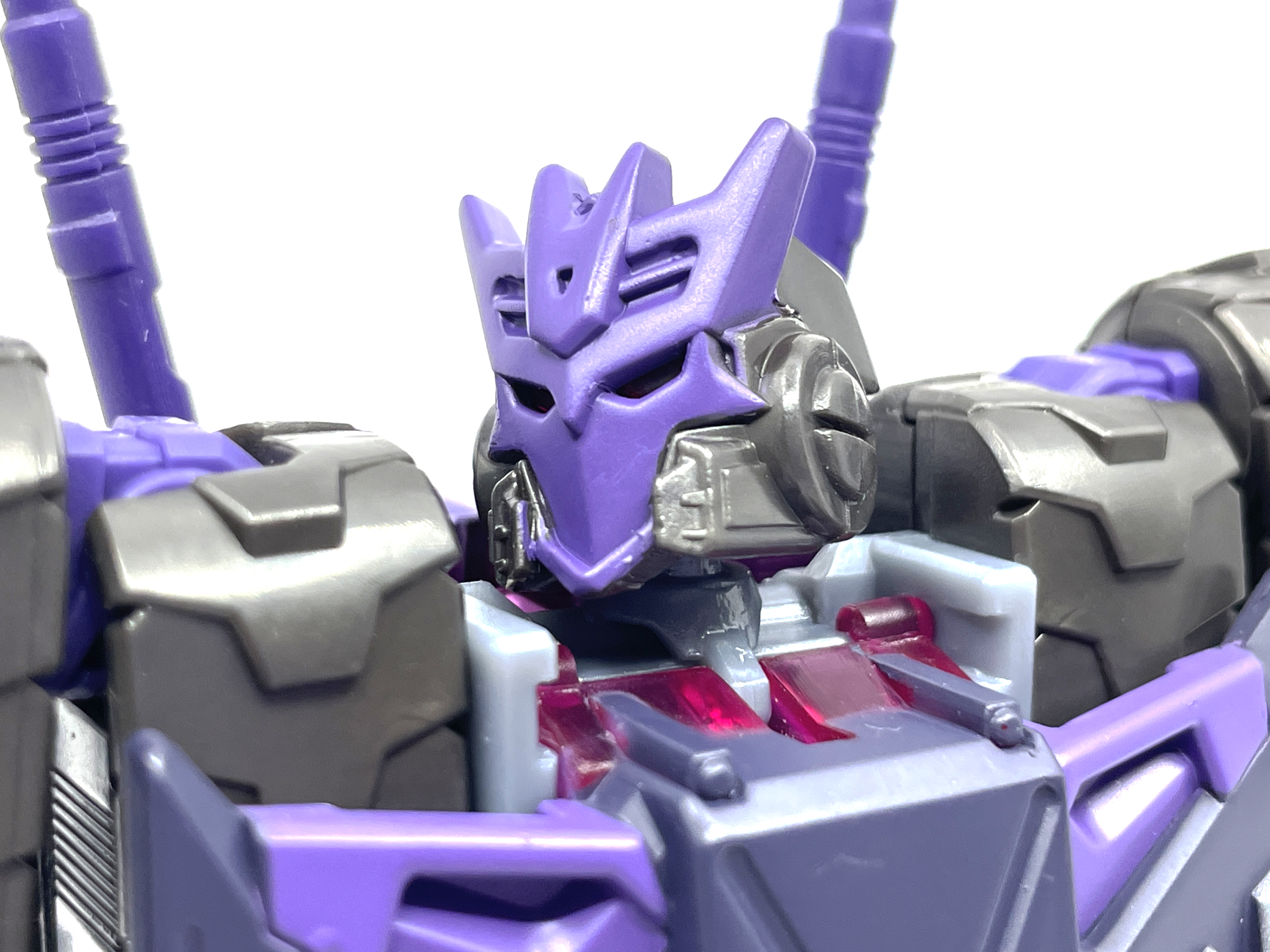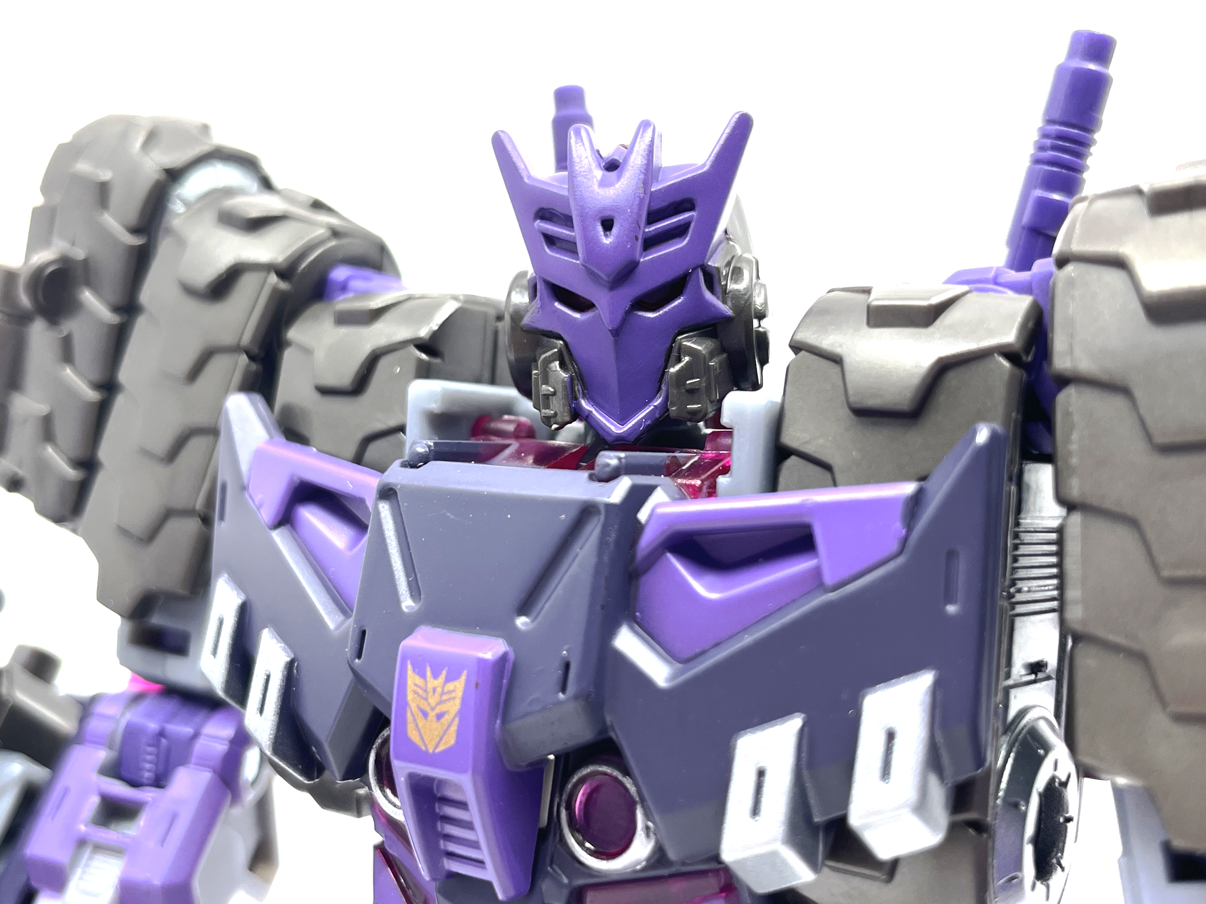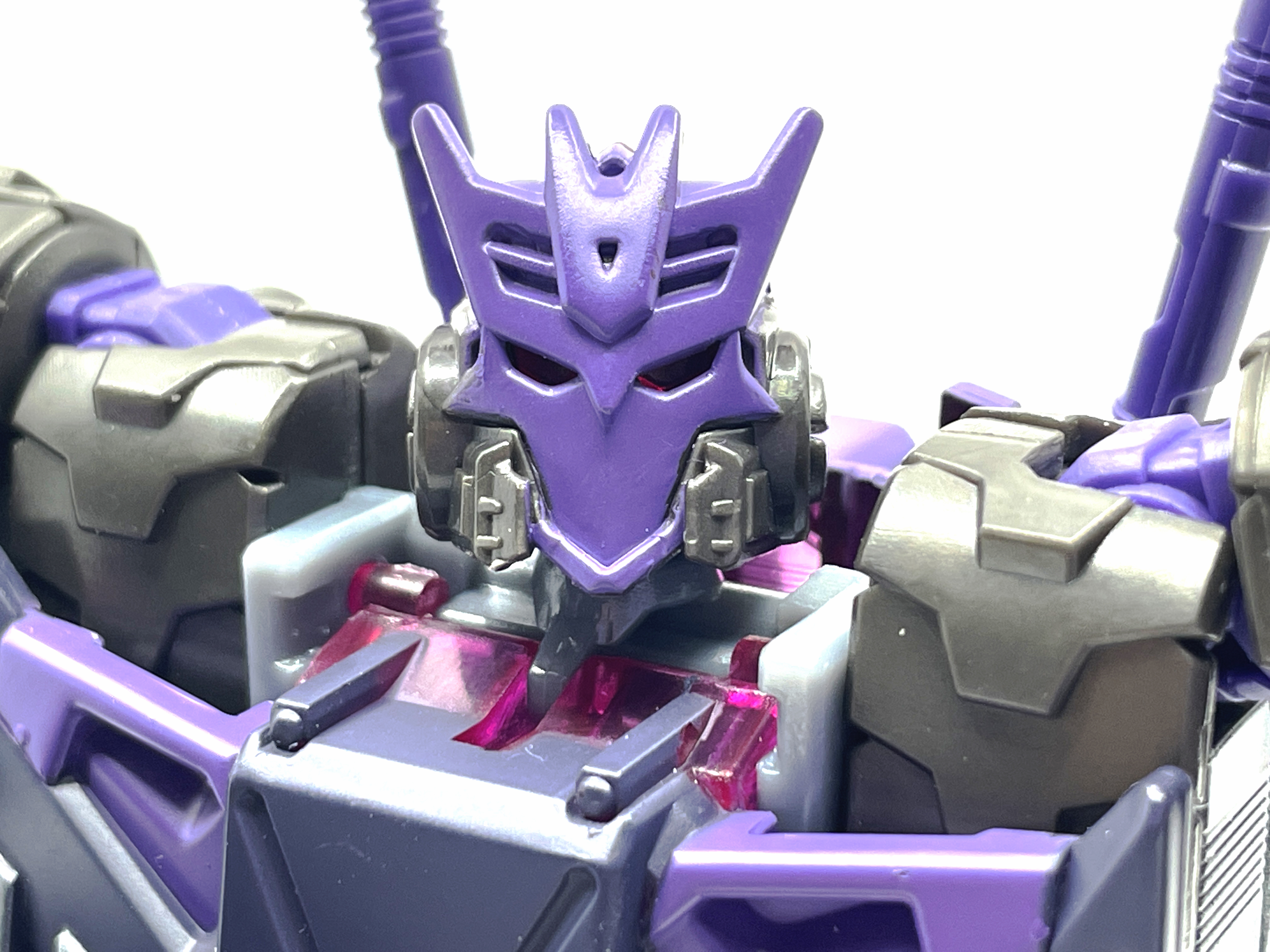디셉티콘 사상에 심취한 나머지 디셉티콘 가면을 착용합니다. 디셉티콘 진영 마크는 사운드웨이브의 얼굴을 기반으로 만들어졌다는 걸 생각하면 이건 또 재미난 부분이지요.