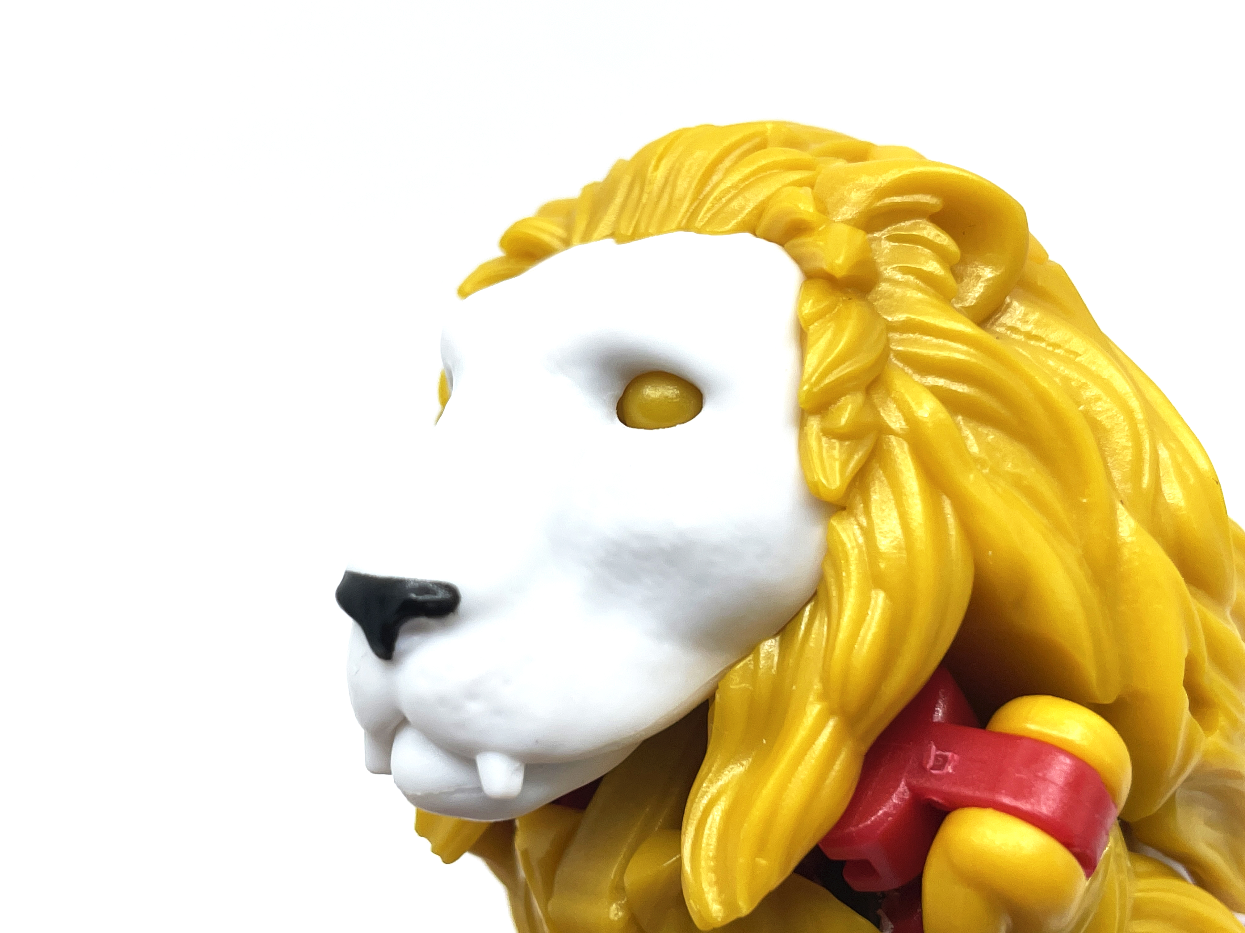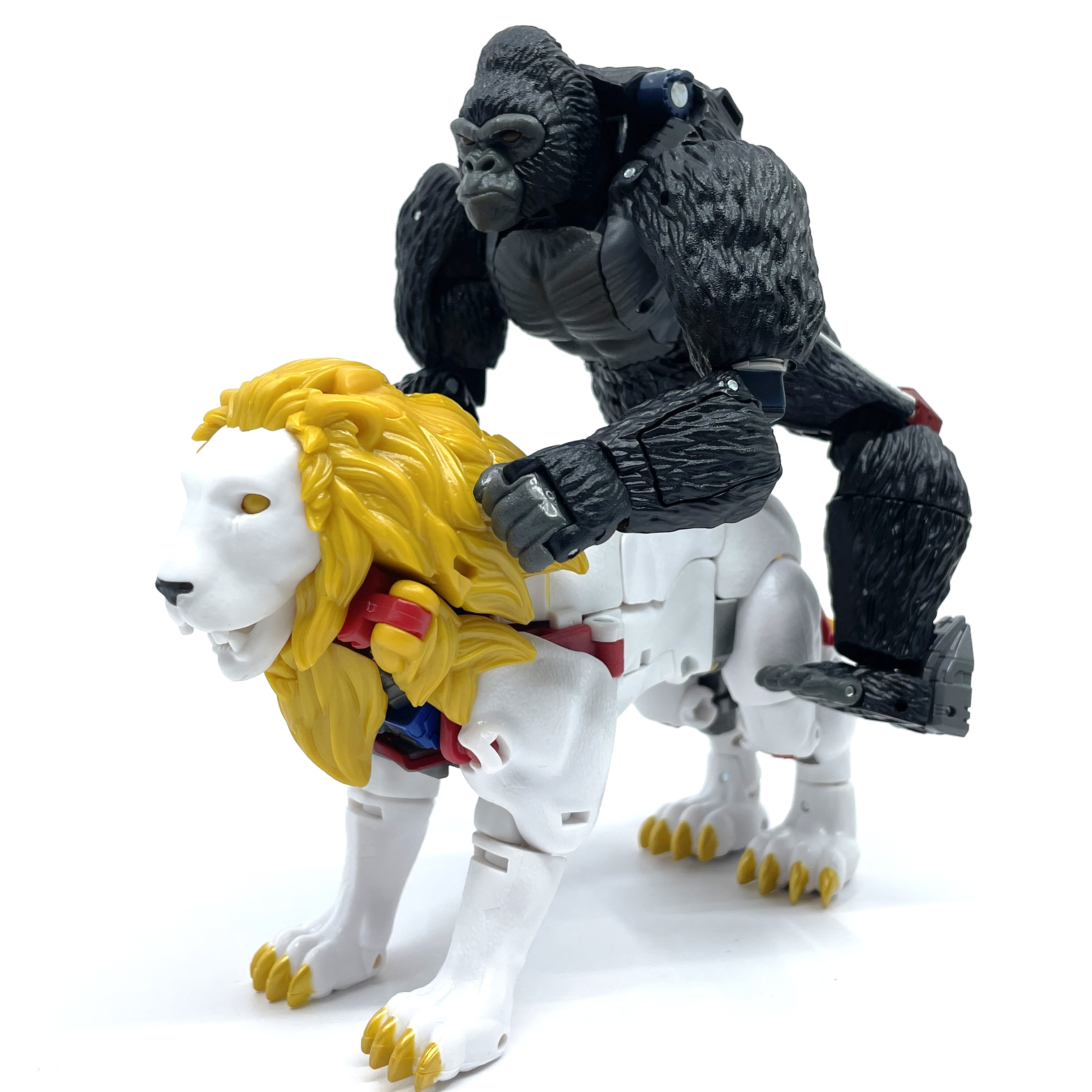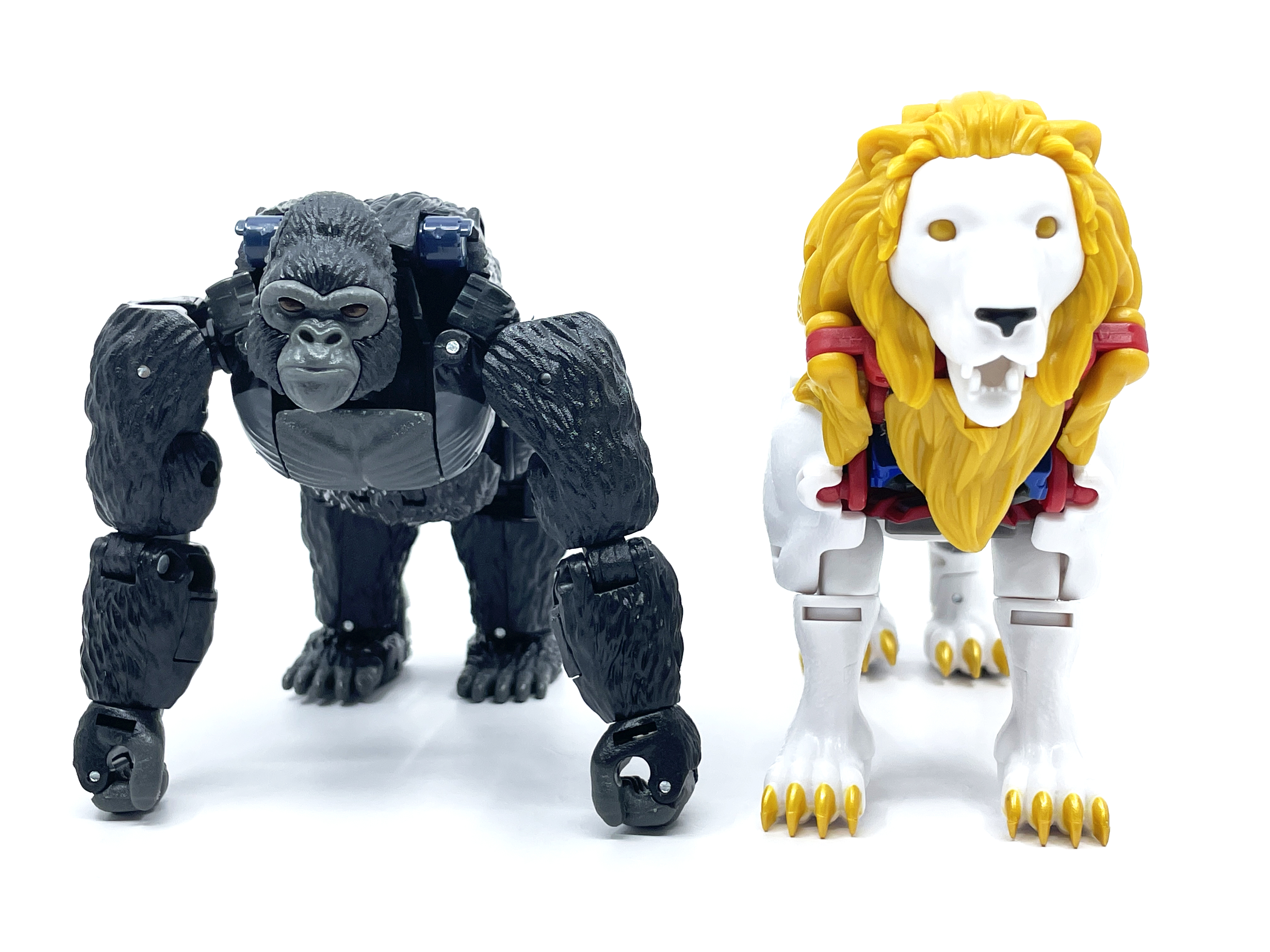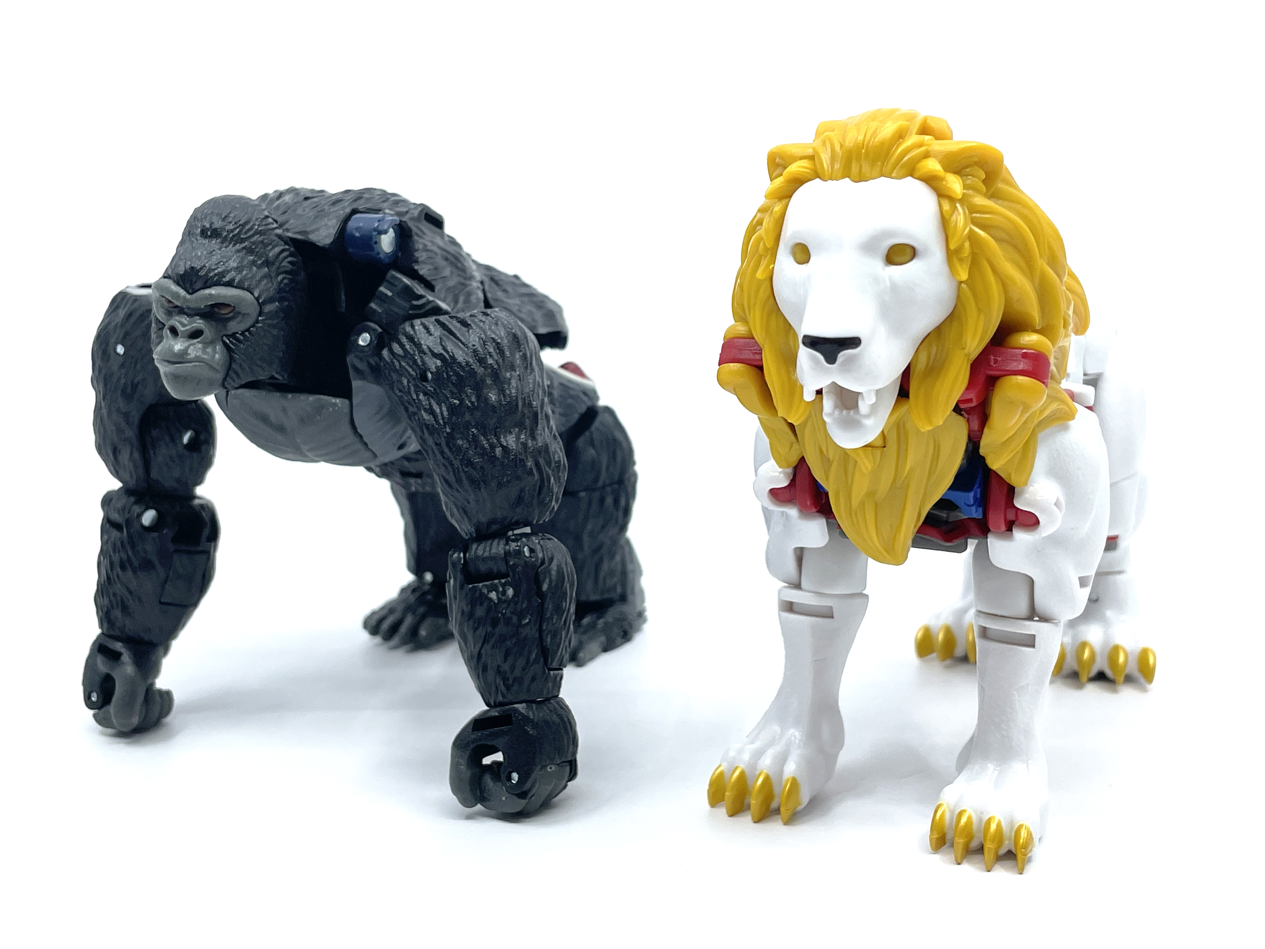 흰 숫사자로 변신하는 레오 프라임. 킹덤 비스트 워즈 제품들처럼 사실적인 동물로 만들어졌습니다.