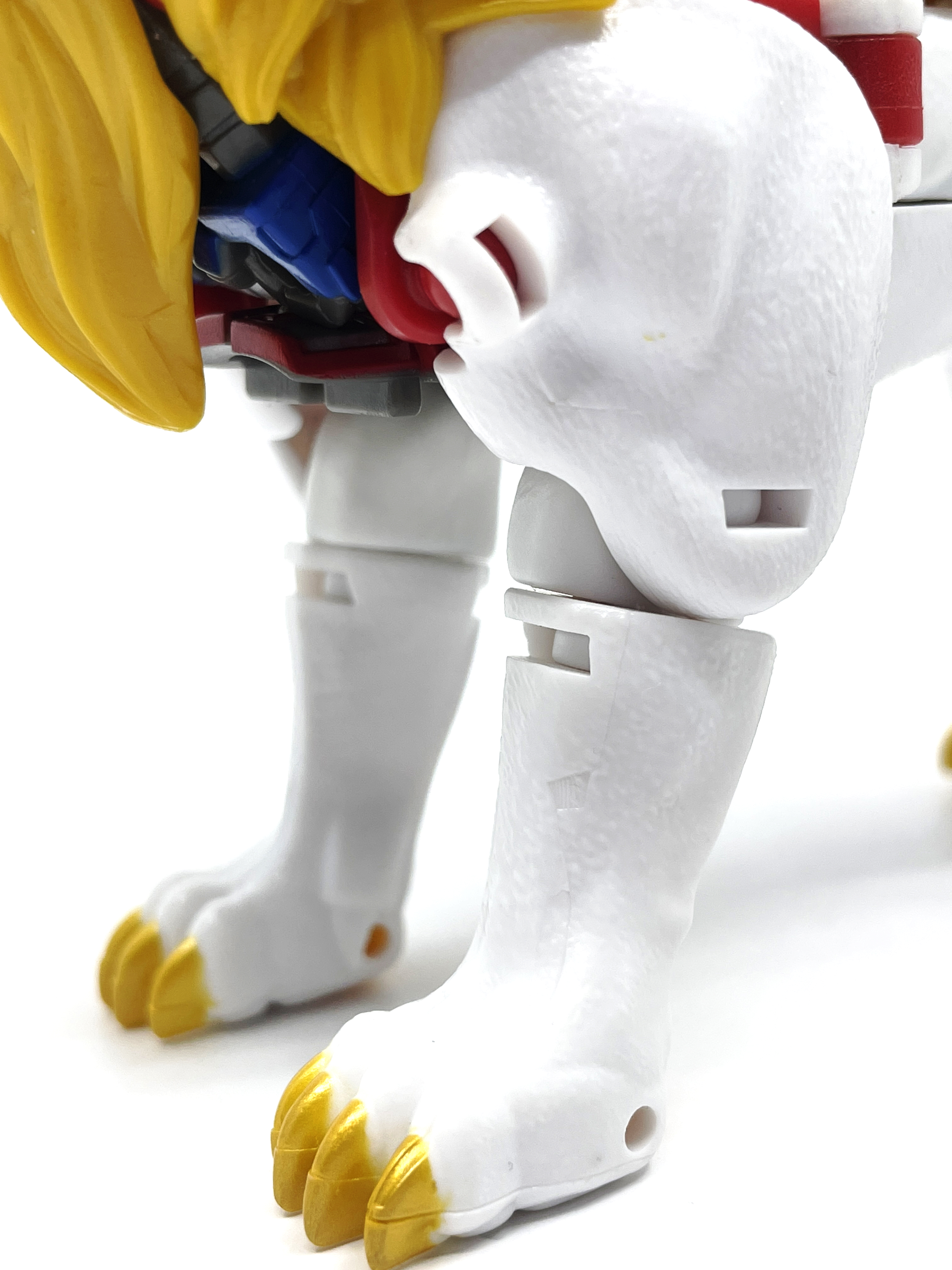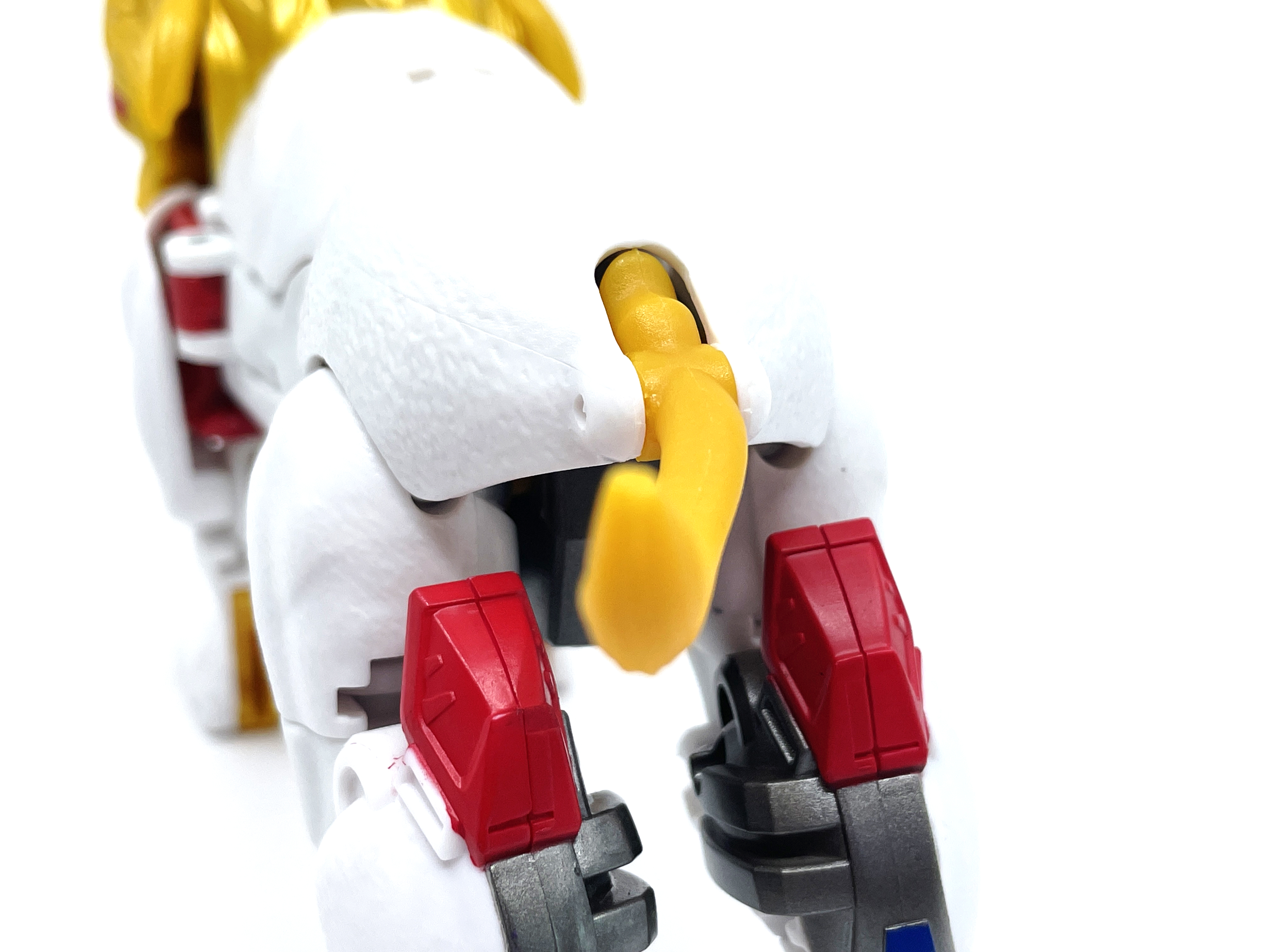 다리는 사자 뒷다리를 그대로 사용하기에 전용 로봇 발이 있는 다른 비스트 워즈 사령관들 보다 야성적입니다.