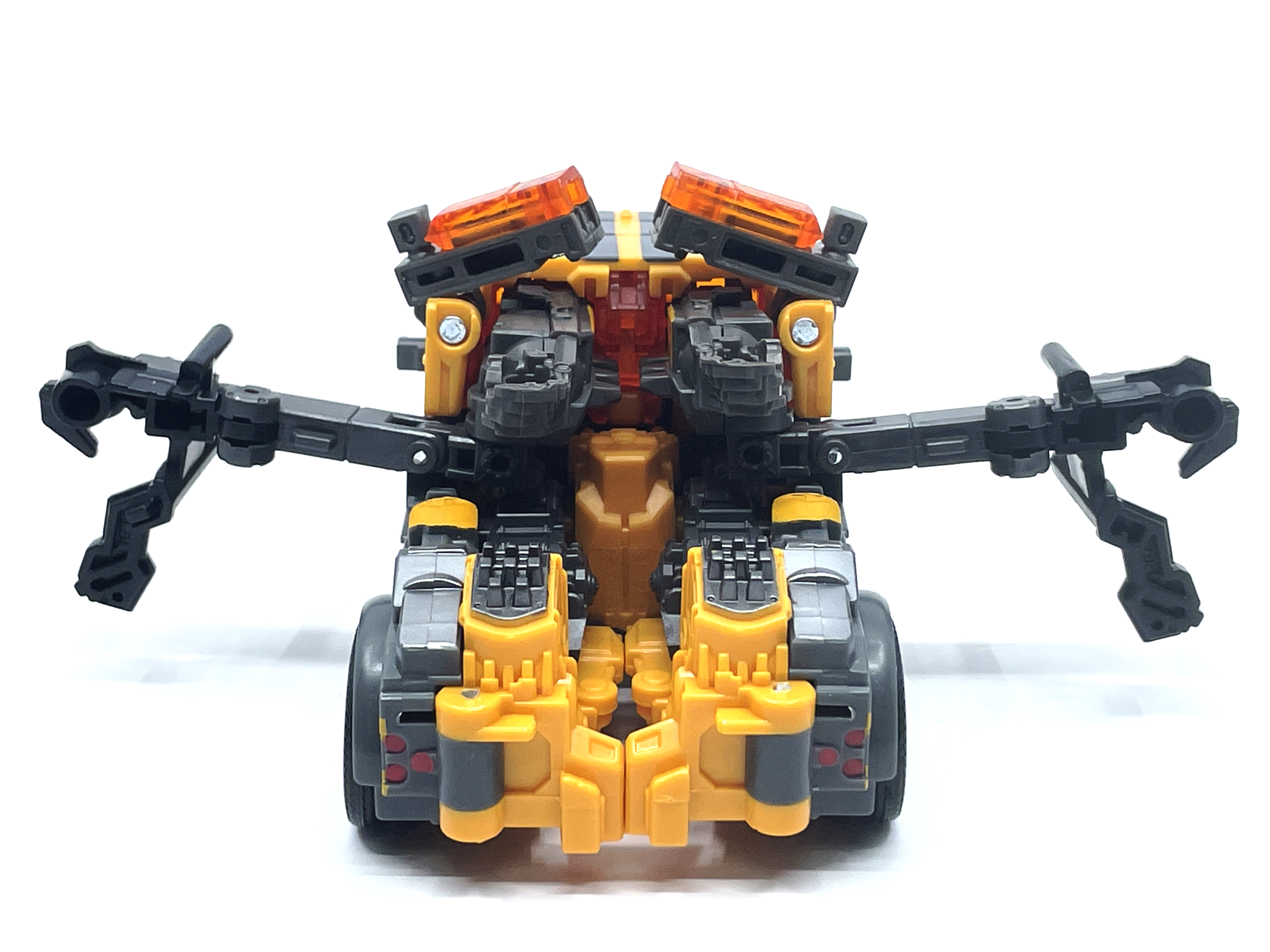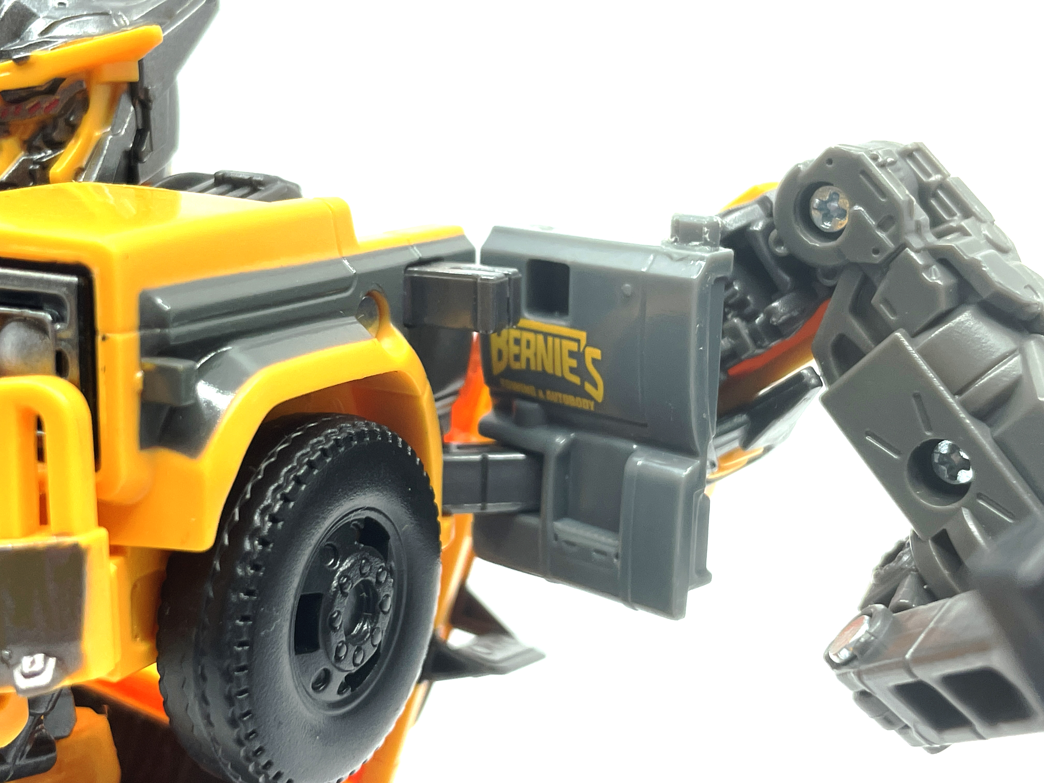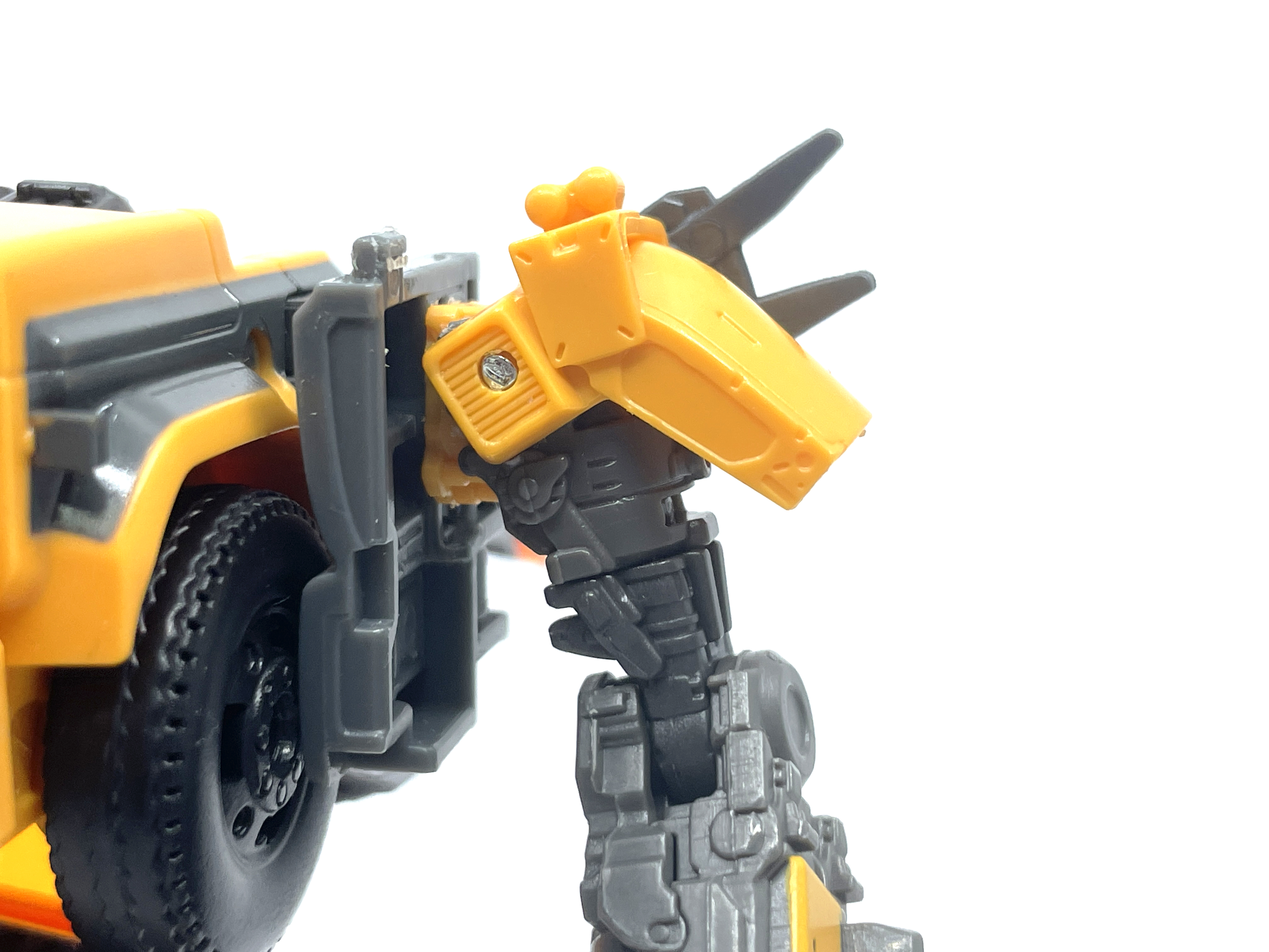 변신 완구의 한계로 인해 로봇 발이 차량 측면부에서 보입니다.