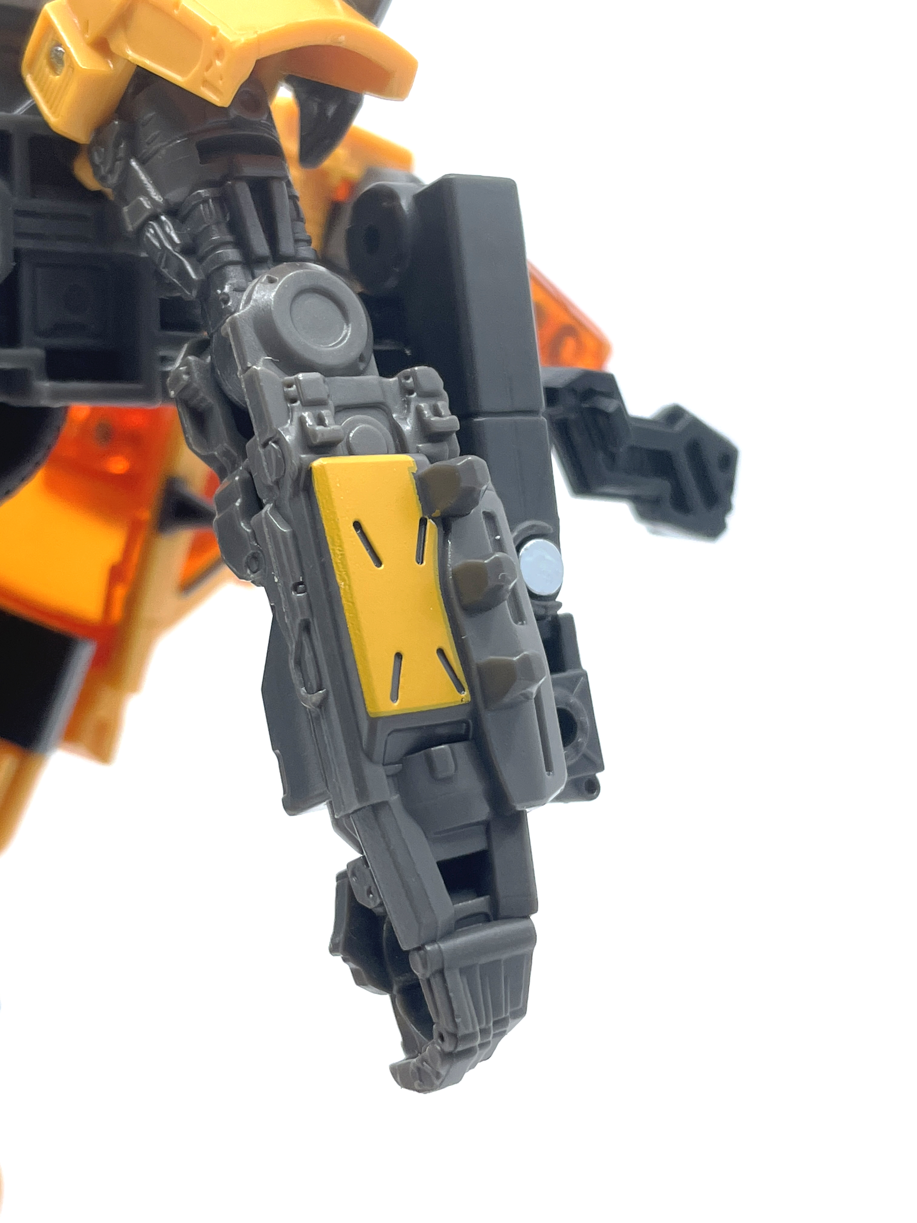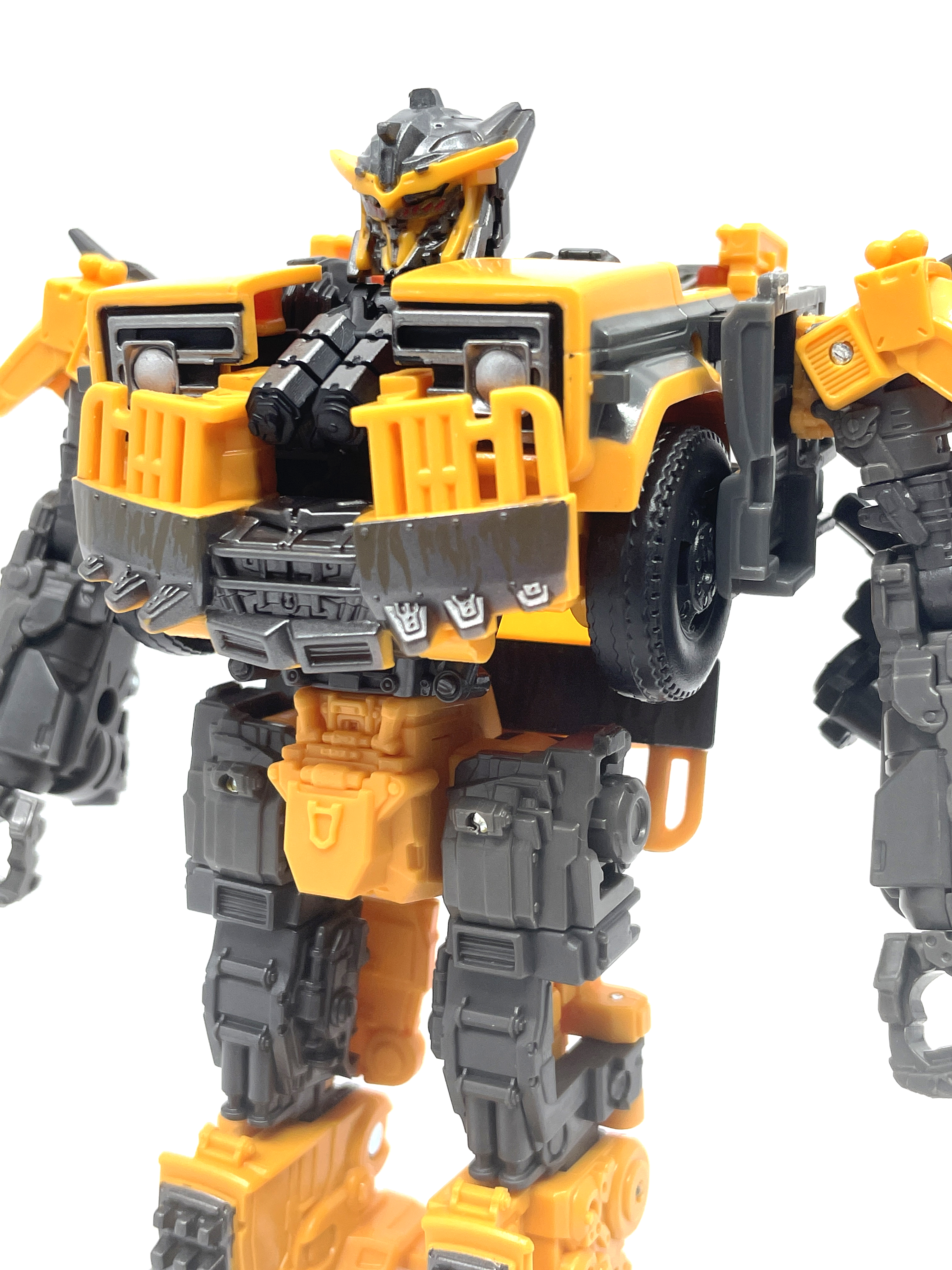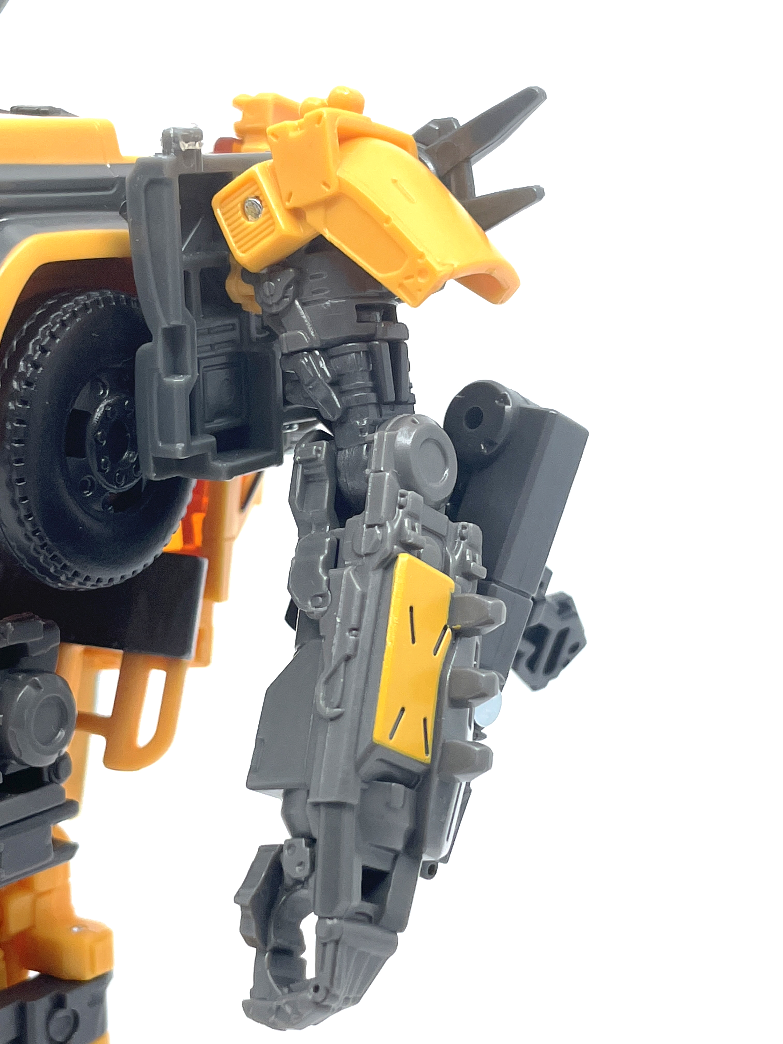 변신 완구의 한계로 인해 로봇 발이 차량 측면부에서 보입니다.