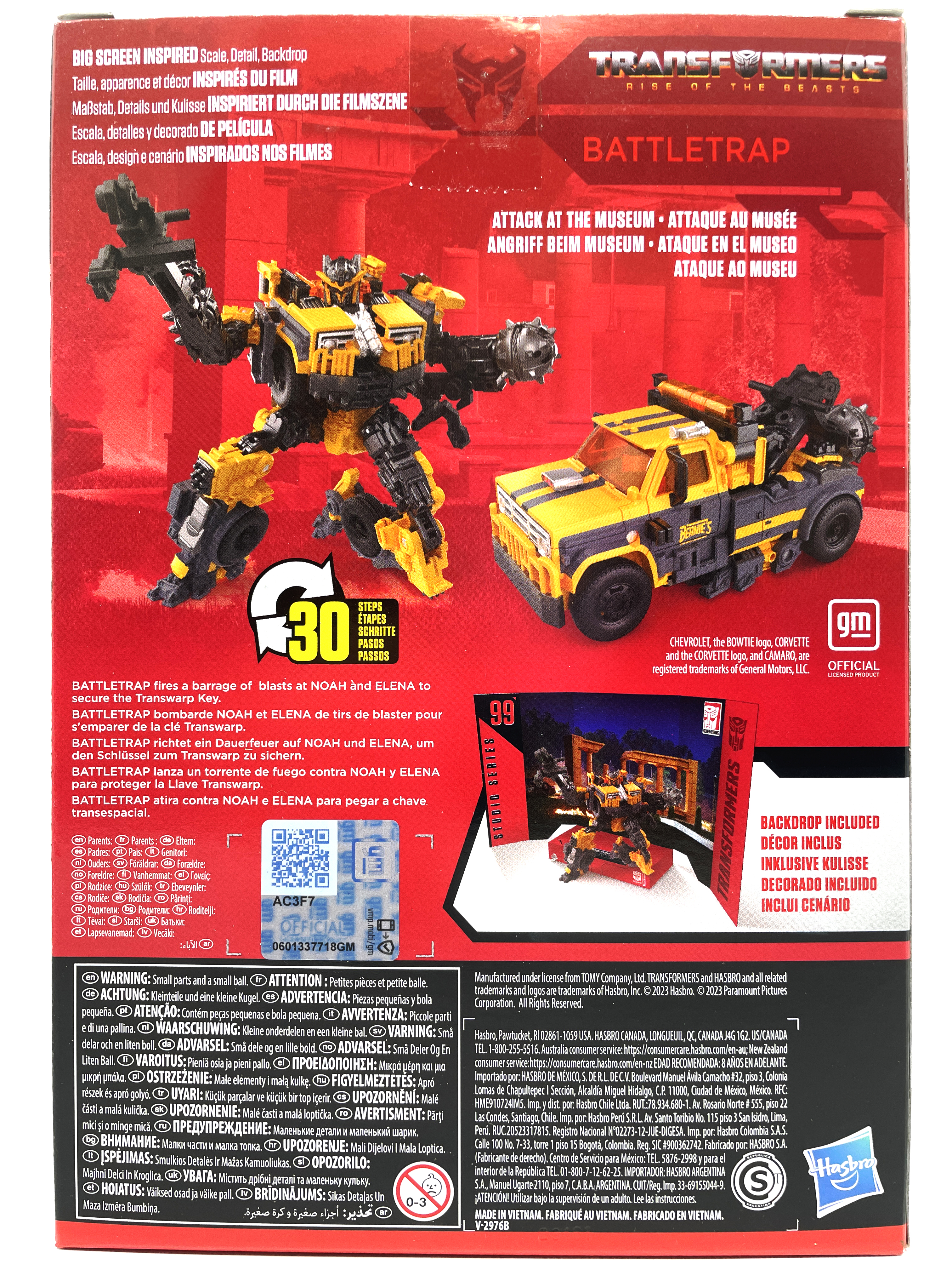 배틀트랩은 GMC C7000을 기반으로 한 견인차로 변신합니다. 스튜디오 시리즈 완구의 경우 GMC 라이선스를 받았기에 실제 차량의 모습을 그대로 재현했습니다.