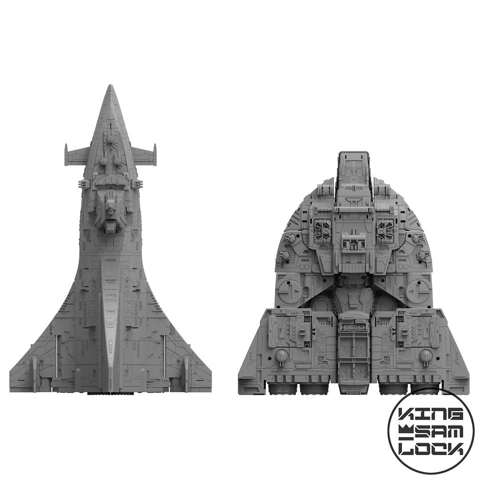 본체에는 여러 개의 포탑이 장착되어 있으며 다양한 마이크로 시커와 콘헤드를 위한 착륙 플랫폼을 수용하는 두 개의 개폐식 다리와 함께 연결되어 거대한 함선의 규모를 자랑합니다.