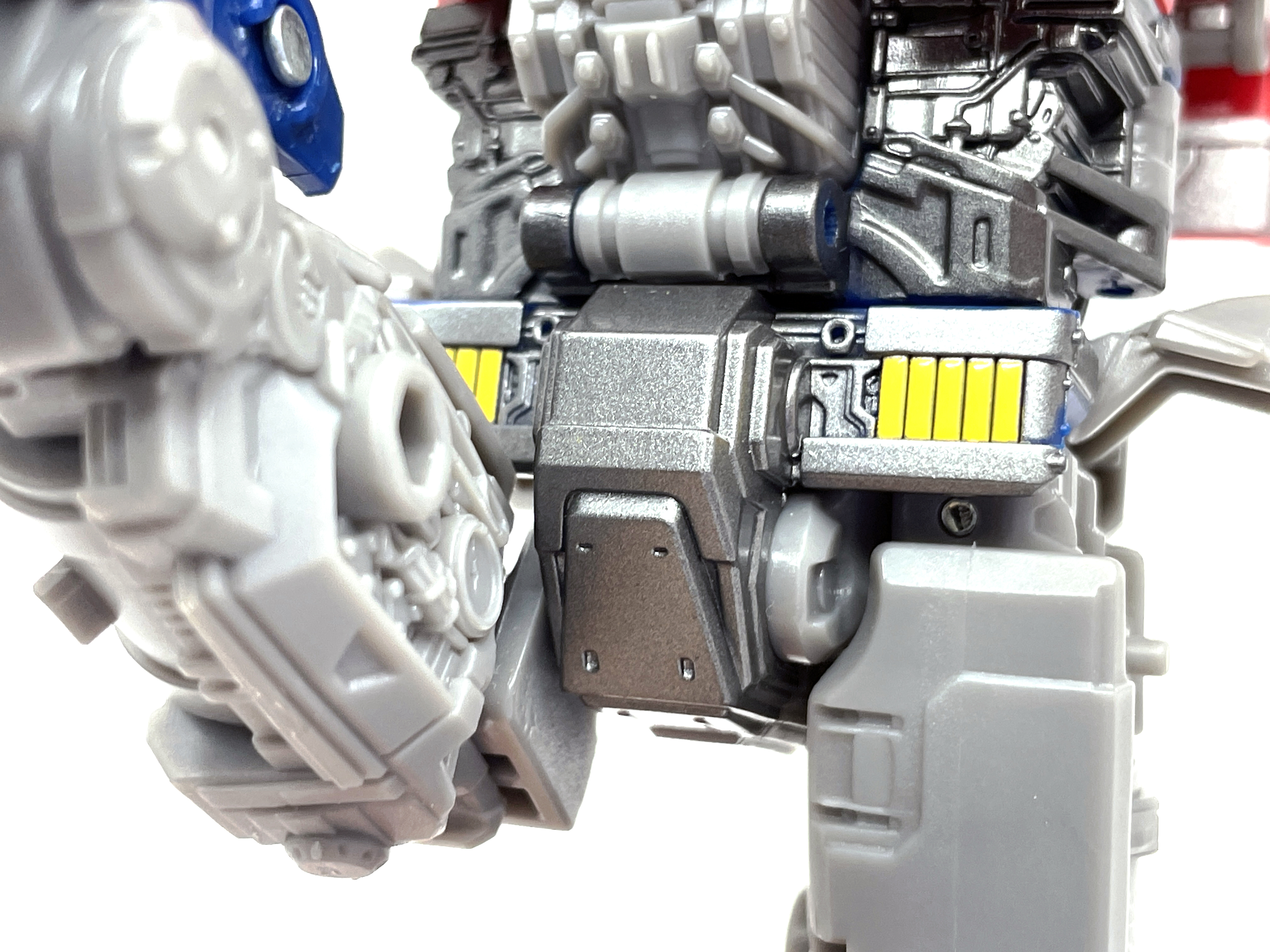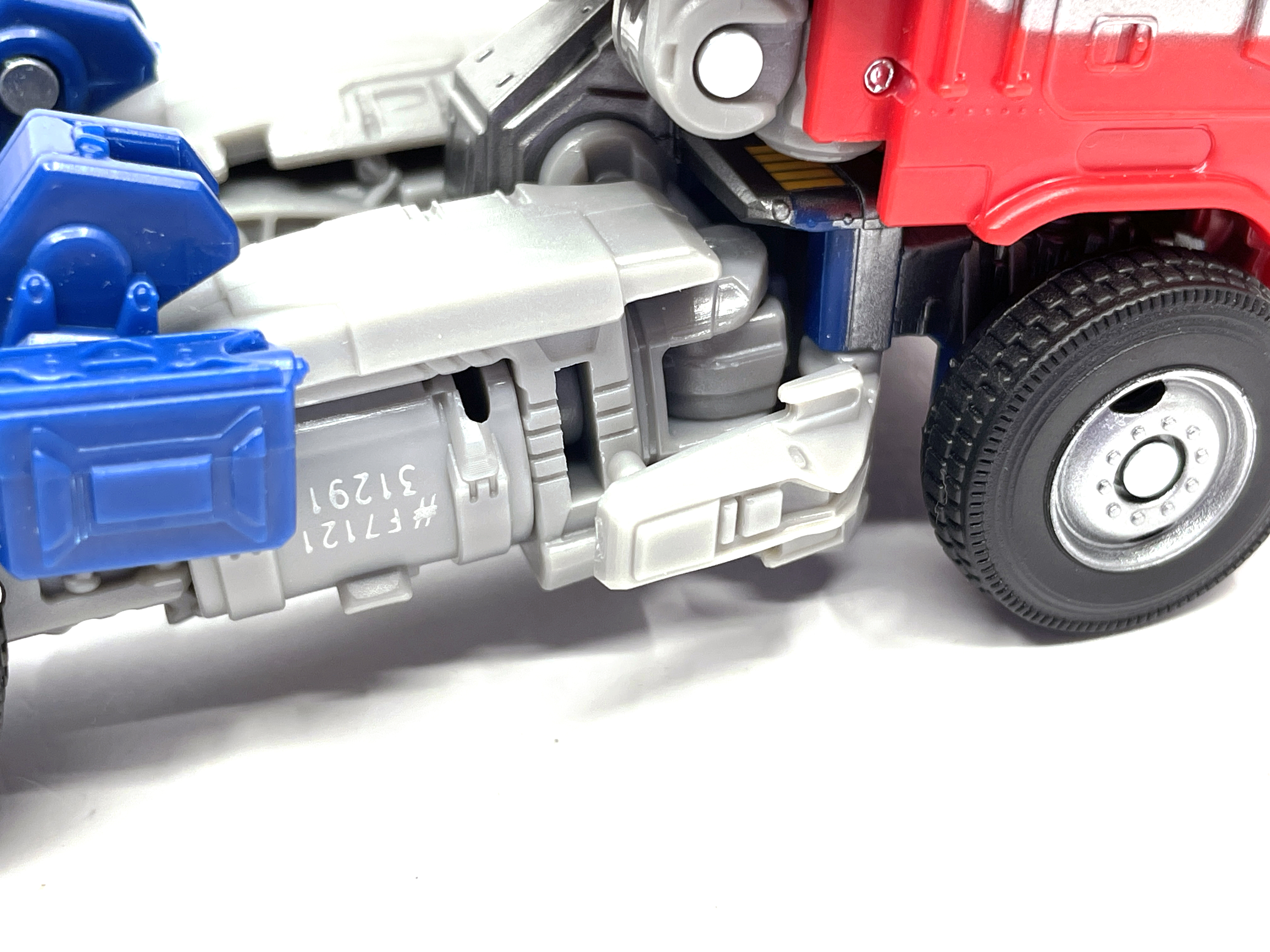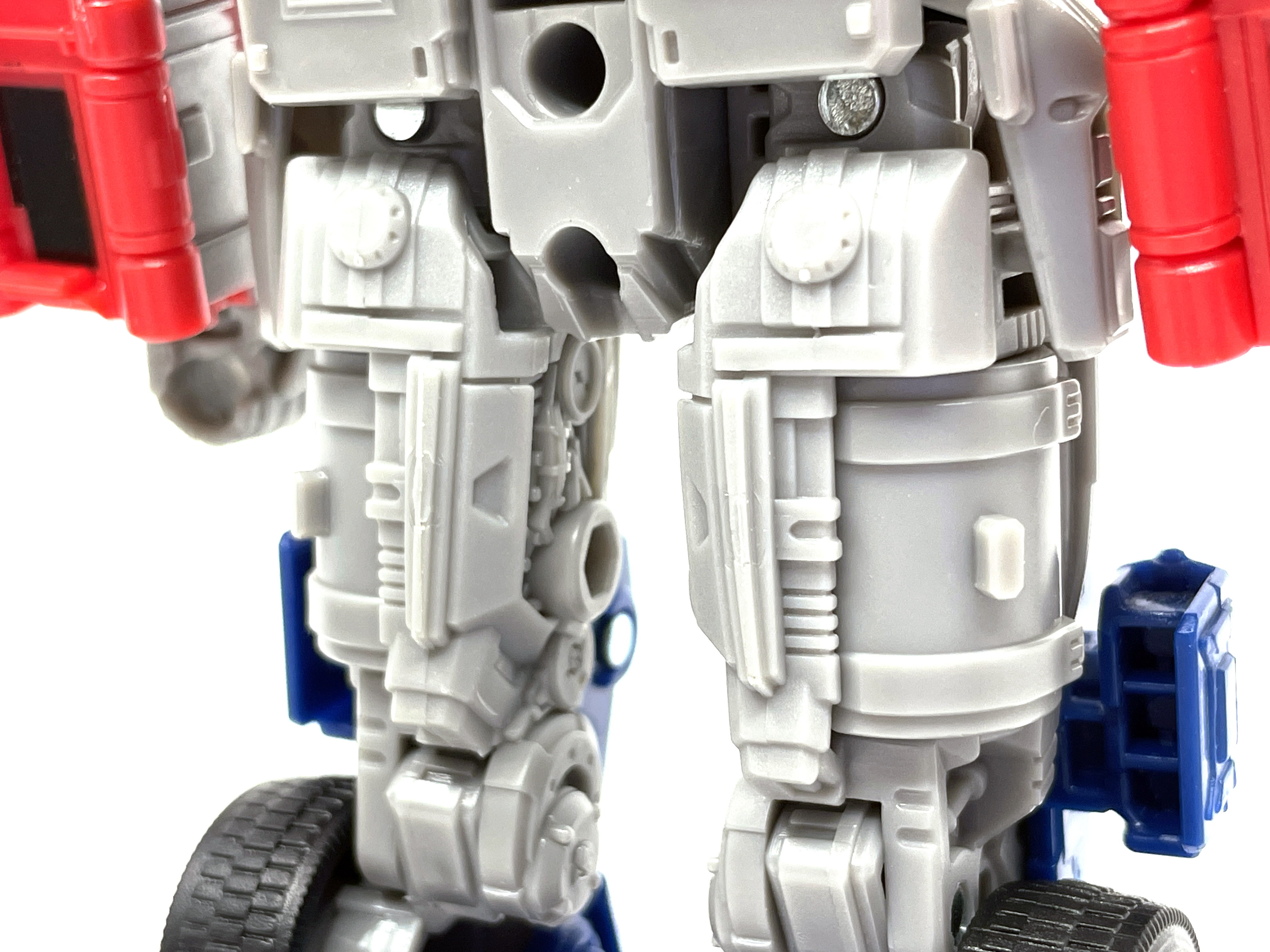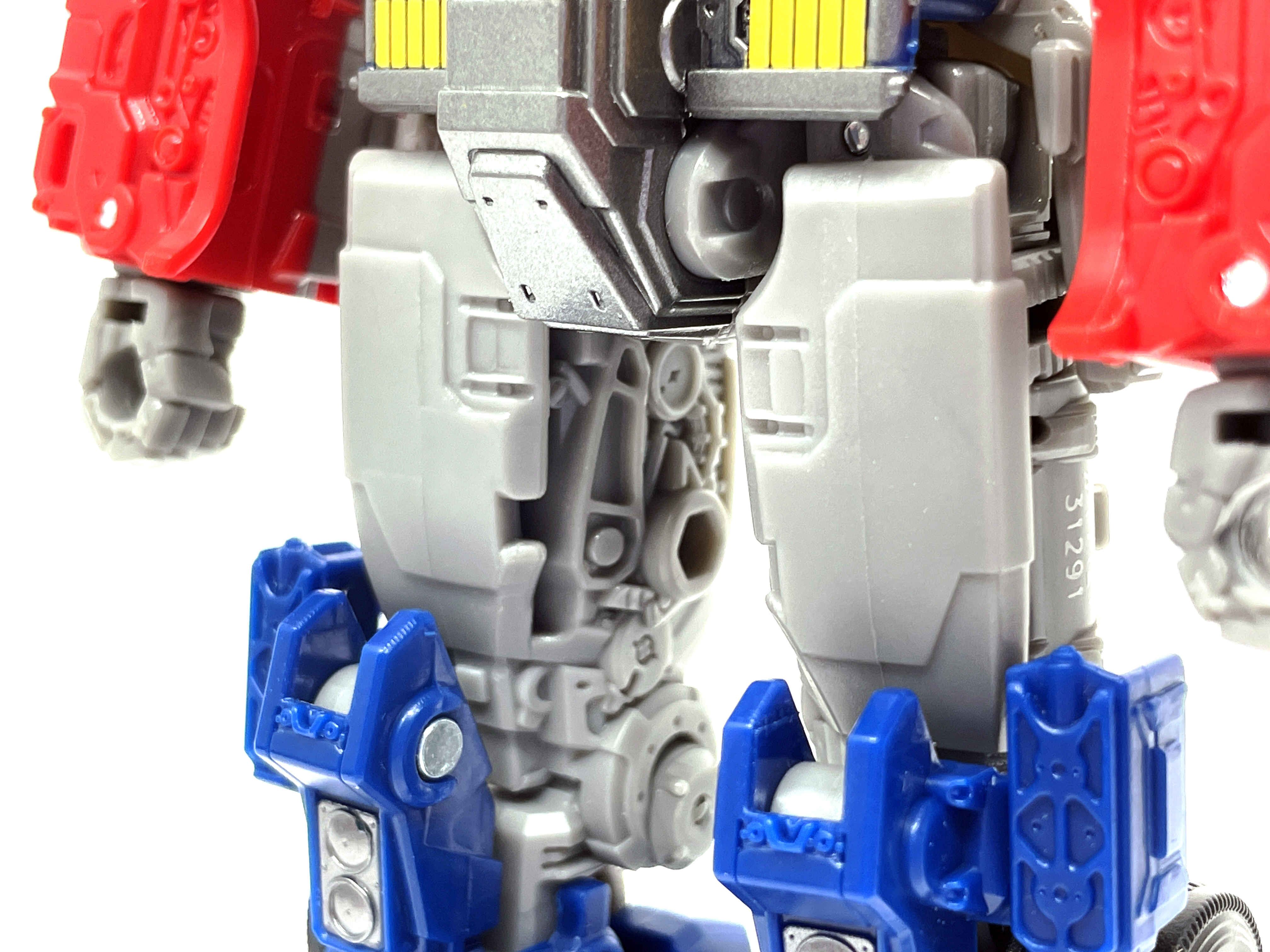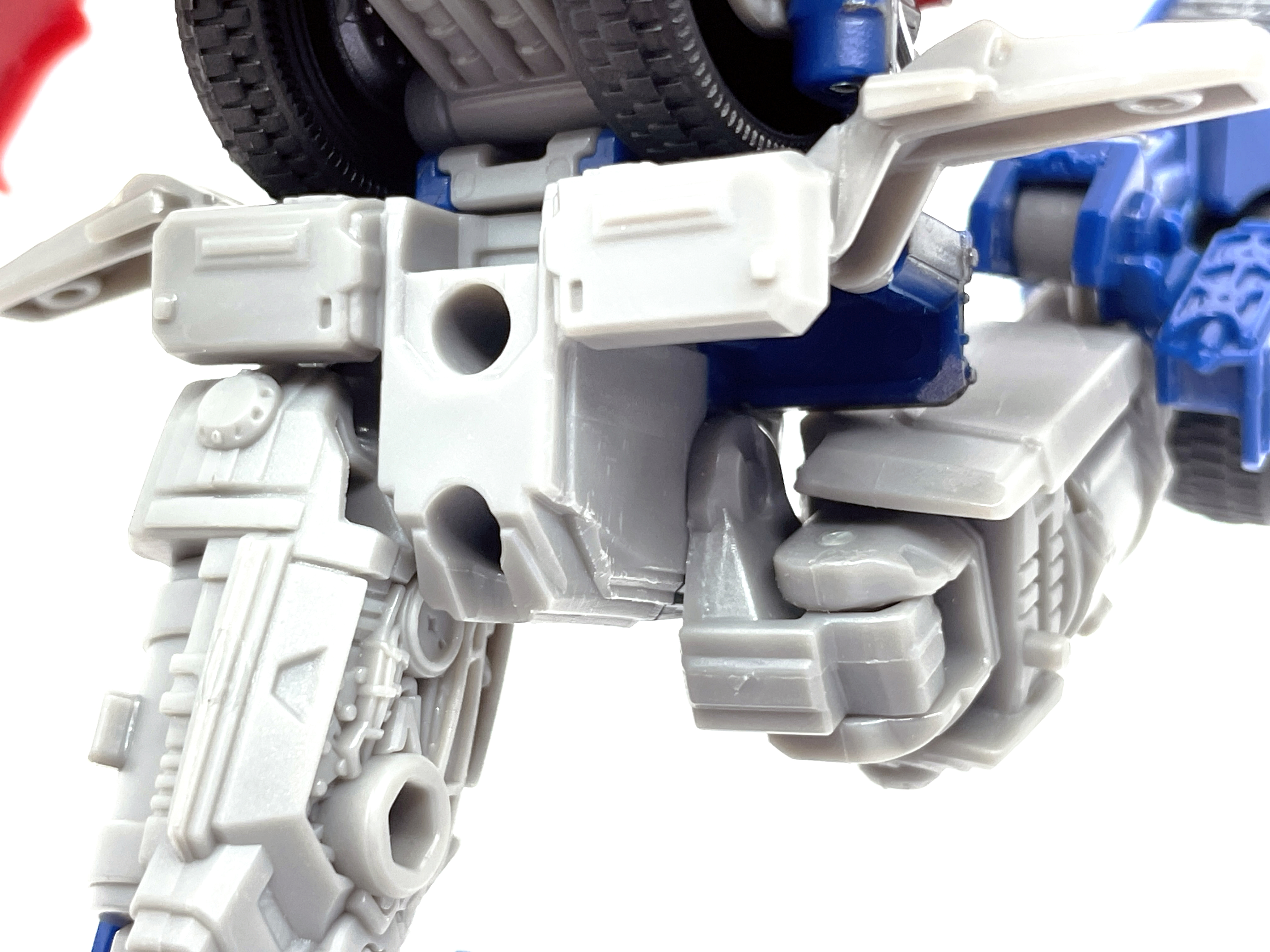 이번 옵티머스 조형은 고정식 스커트를 사용하고 있습니다. 대신 기존 제품들과 다른 방식으로 가동축을 만들어 다리가 걸리지 않고 가동이 가능합니다. 듣자하니 건담 쪽에서 이런 고관절 구조를 많이 사용한다고 하더라고요.