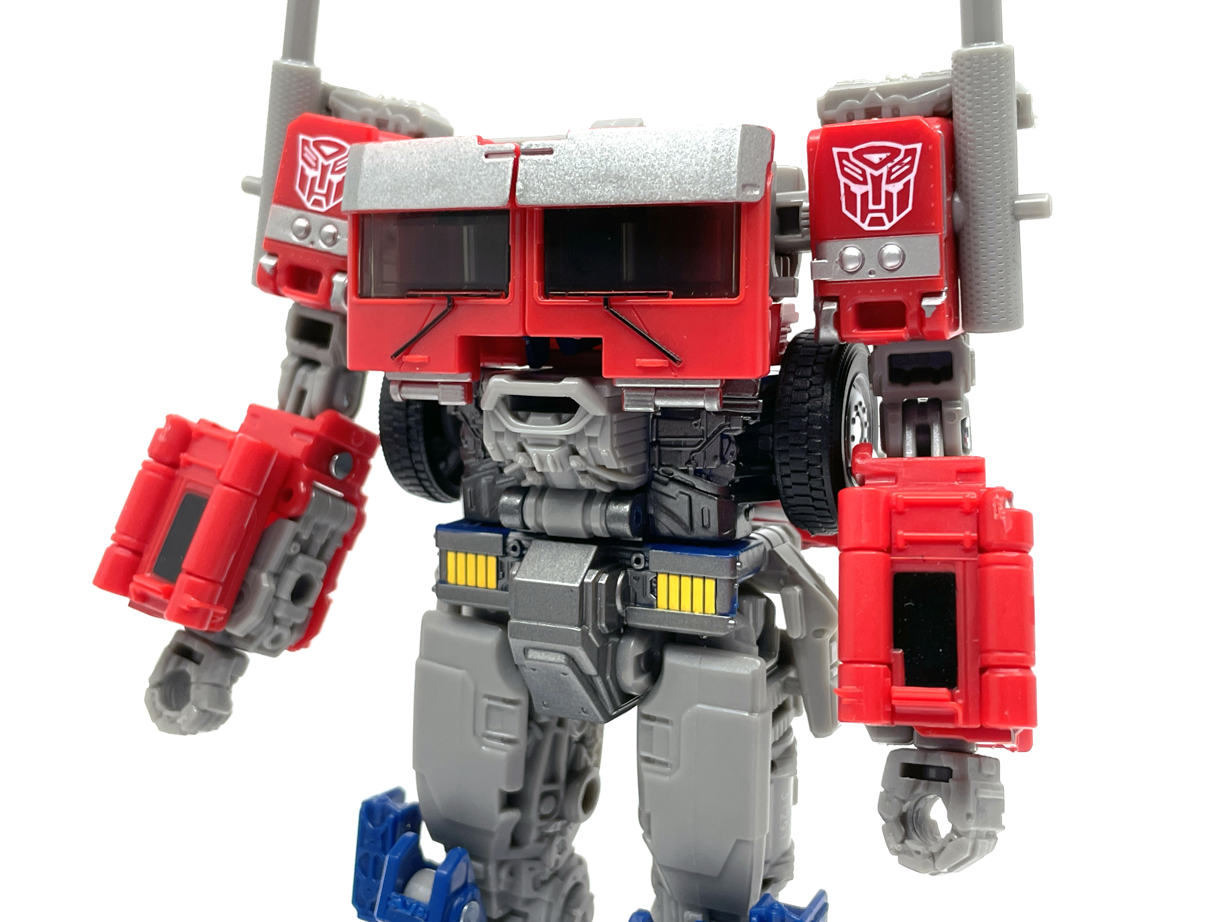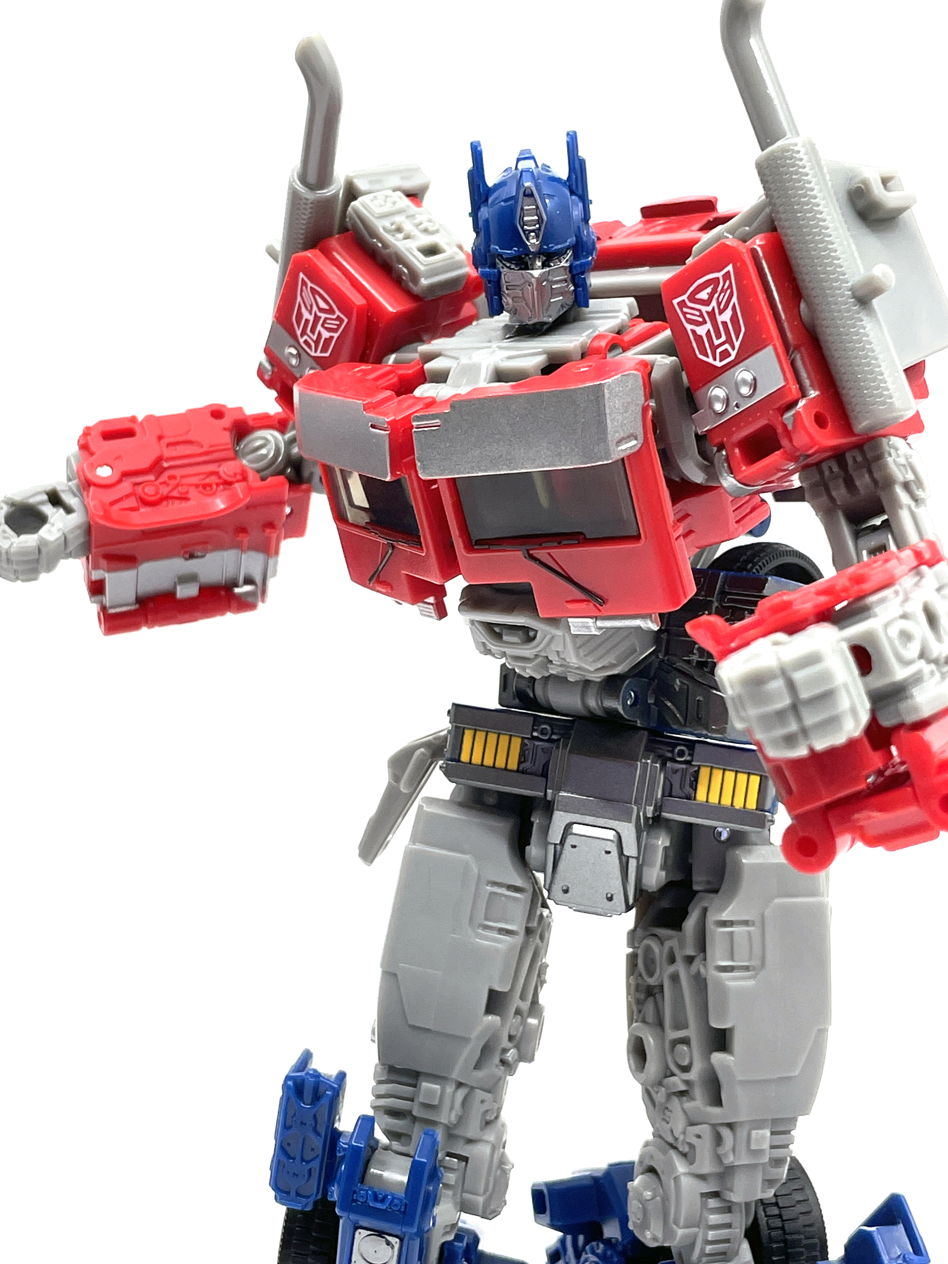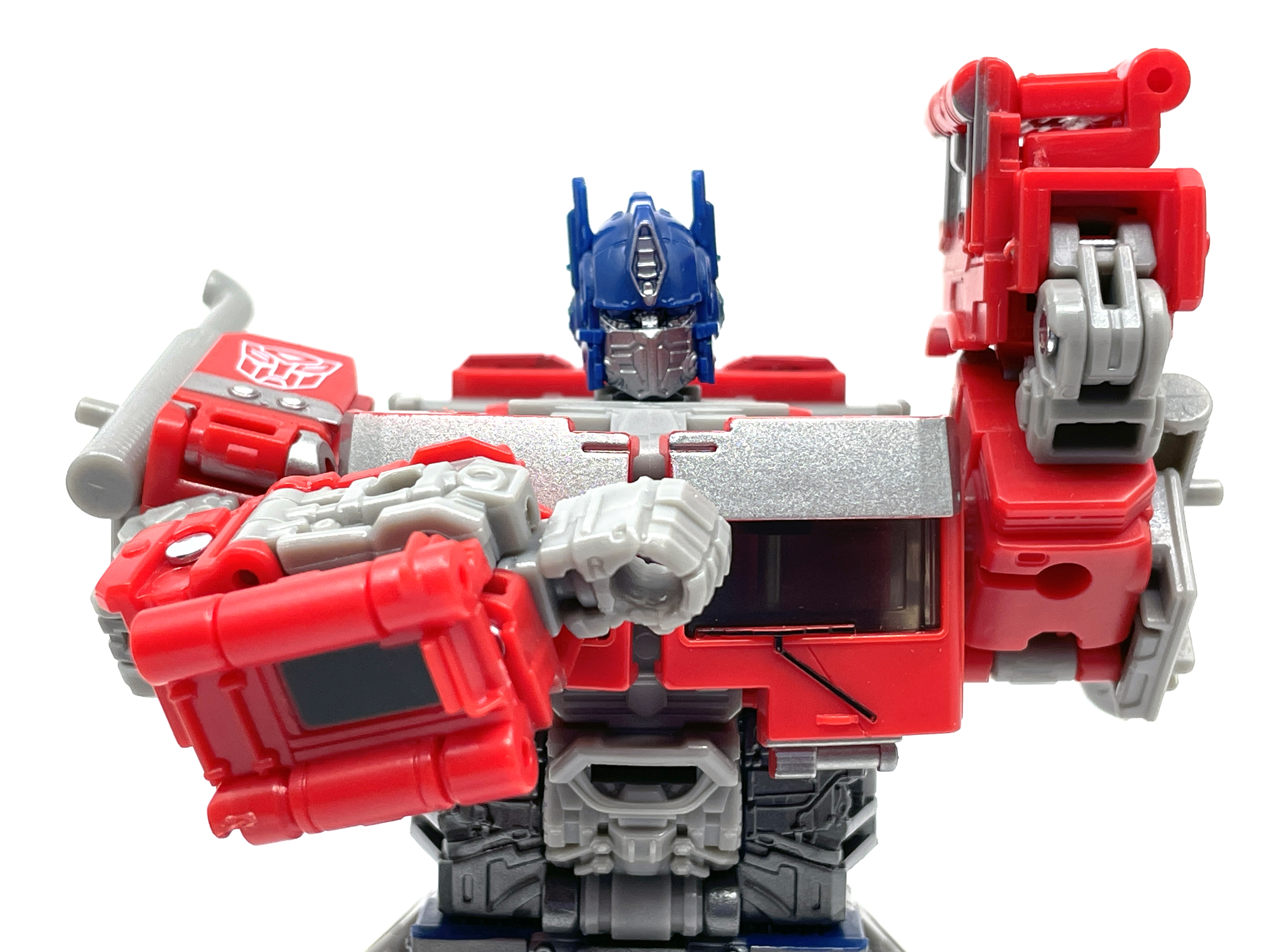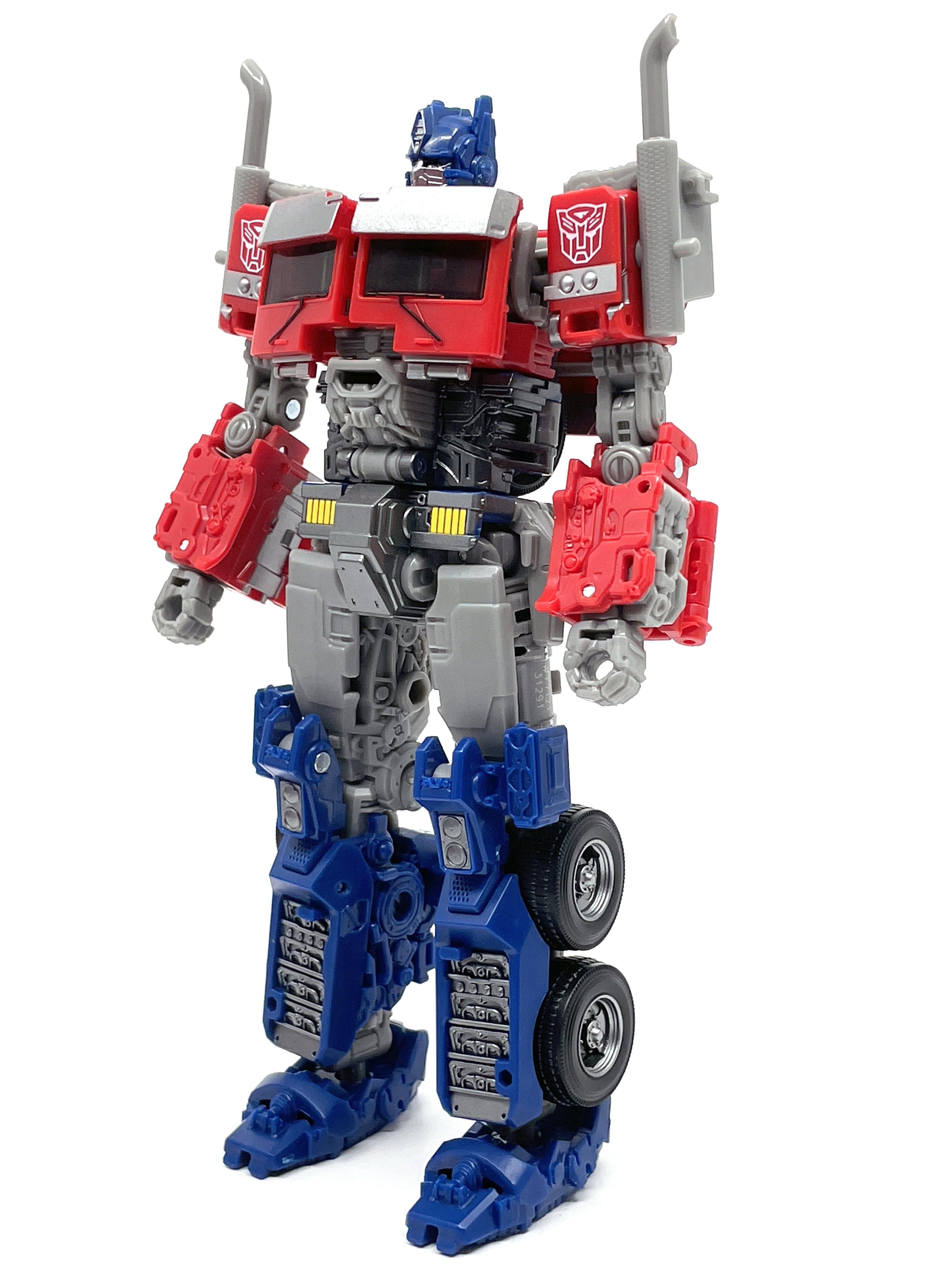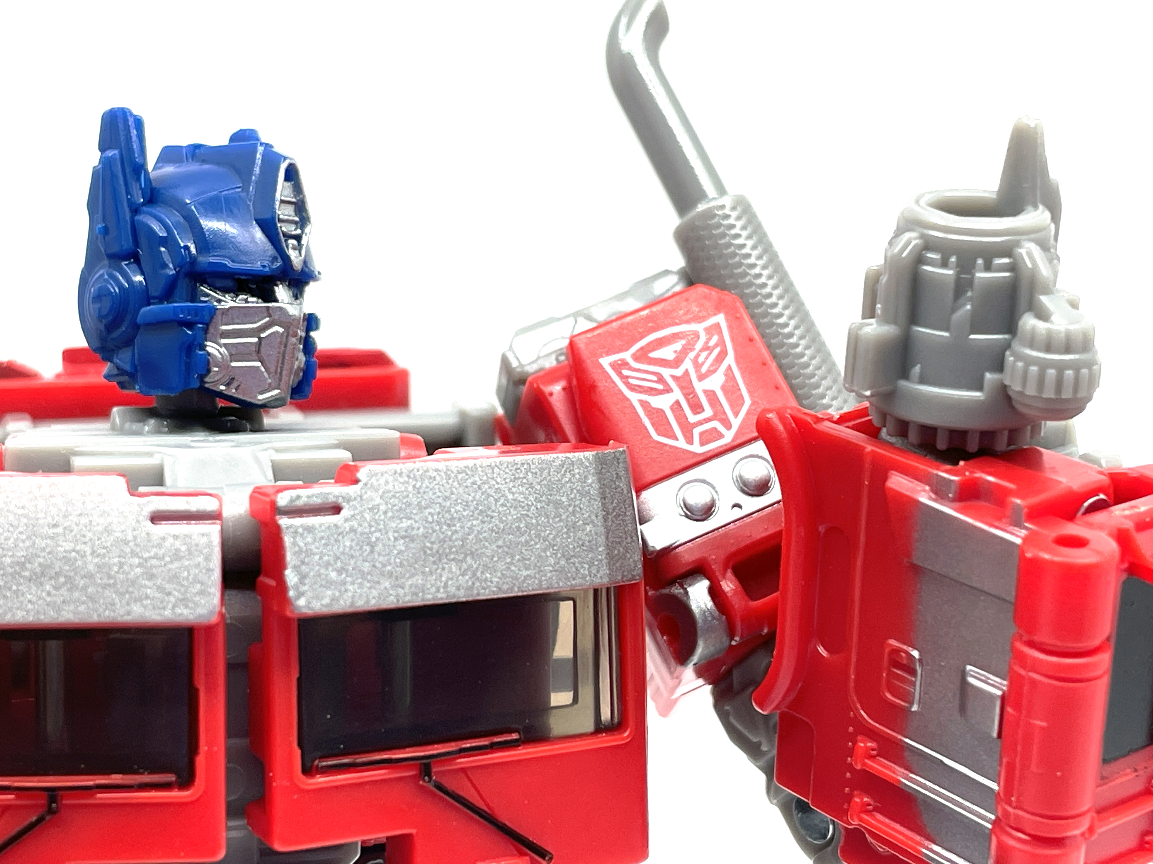 완구 디자이너 샘 스미스에 따르면, 본래 신규 금형이 아닌 <범블비> 옵티머스 조형의 리툴로 기획되어 예산을 적게 받았으나 타카라토미의 완구 디자이너 오오니시 유야의 노력 덕분에 적은 예산으로도 신규 금형이 만들어질 수 있었다고 합니다. 다만 워낙 예산이 적은 탓에 비클 모드는 깔끔하지 못하고, 발매 역시 스튜디오 메인 제품군 슬롯이 꽉 차버려서 버즈워시 범블비 쪽으로 옮길 수 밖에 없었다고…