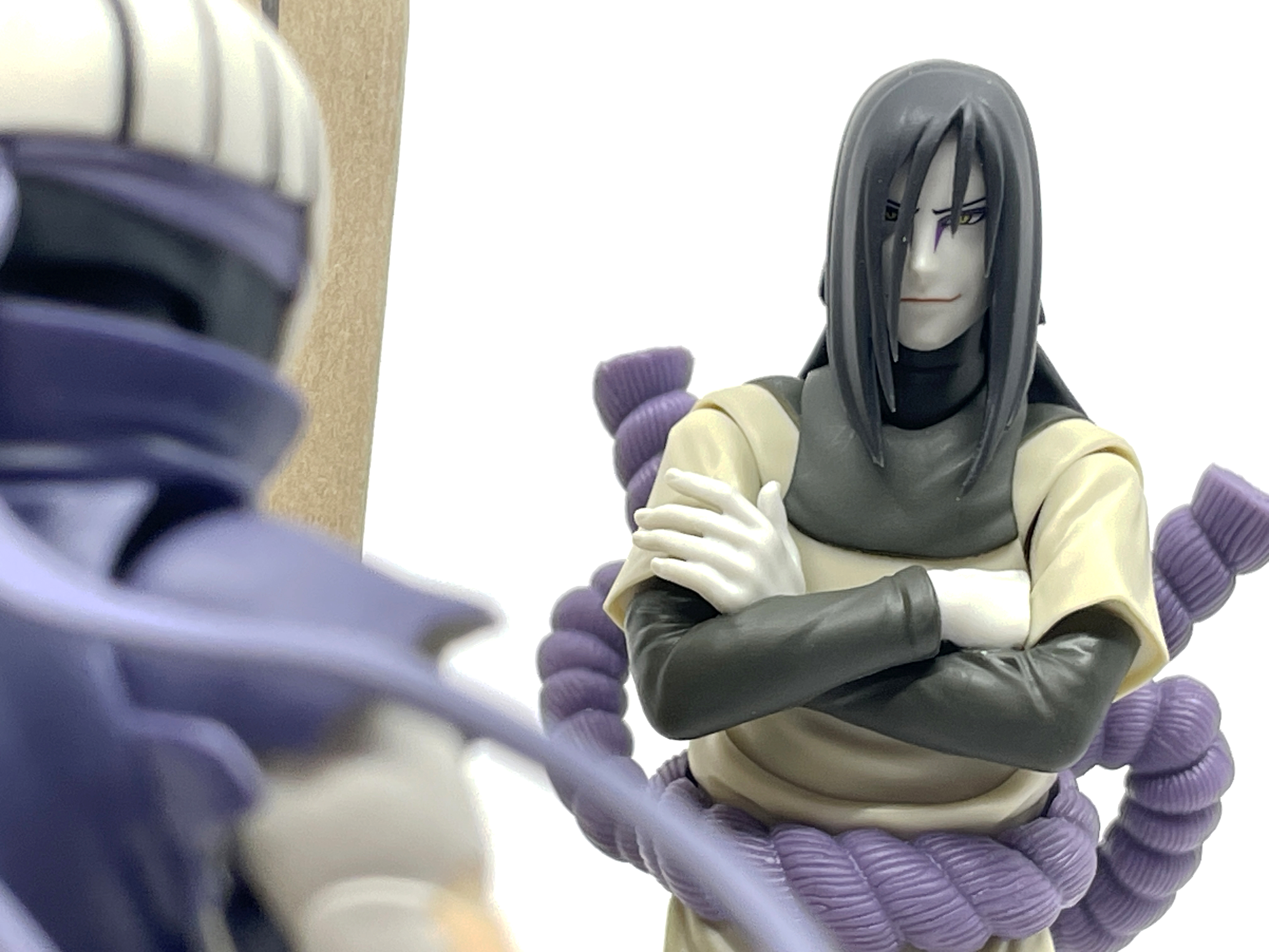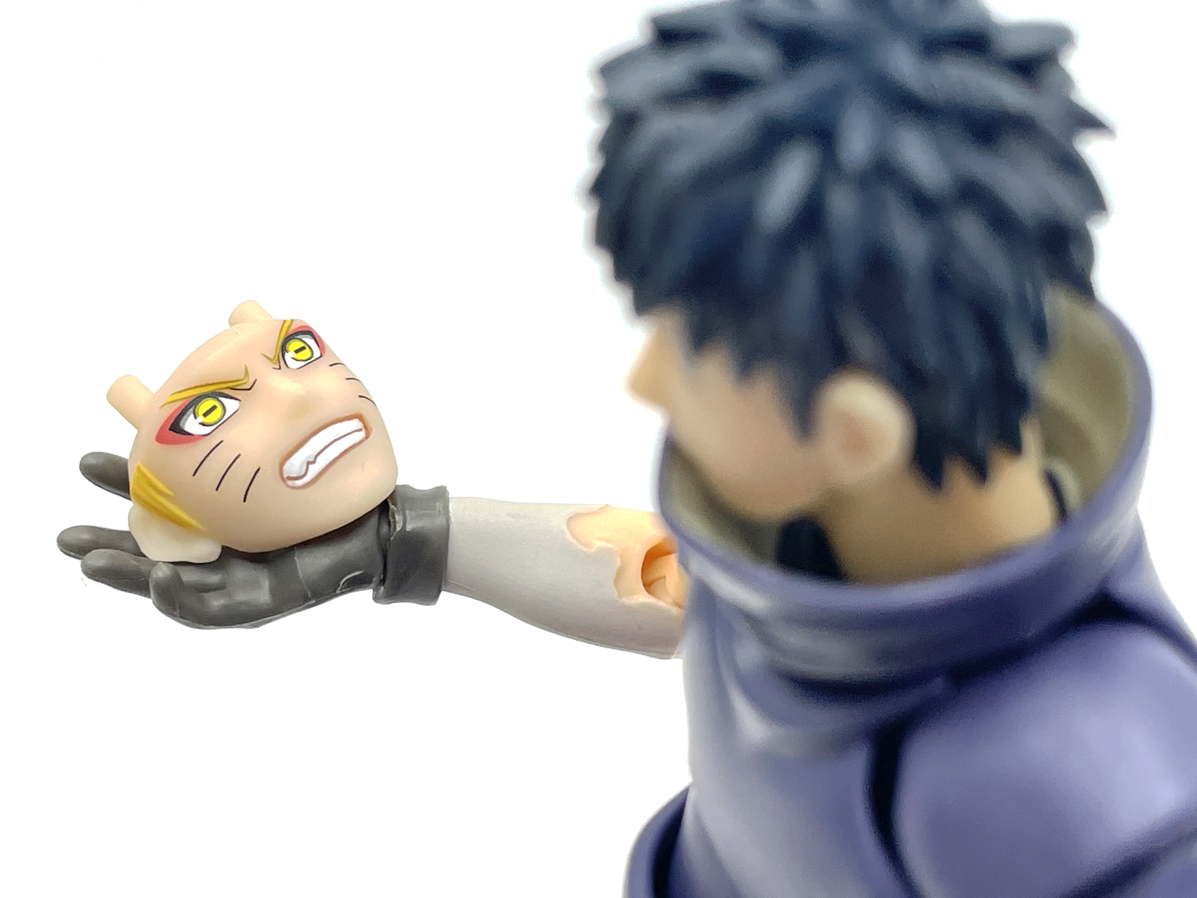 오로치마루 리뷰 때와 같은 연출… 그나마 사스케는 머리 전체가 있었는데 반해, 여기에 동봉된 나루토는 얼굴만 달랑 있어 더욱 기묘해 보입니다. 풍둔 주둥아리술의 중간 과정