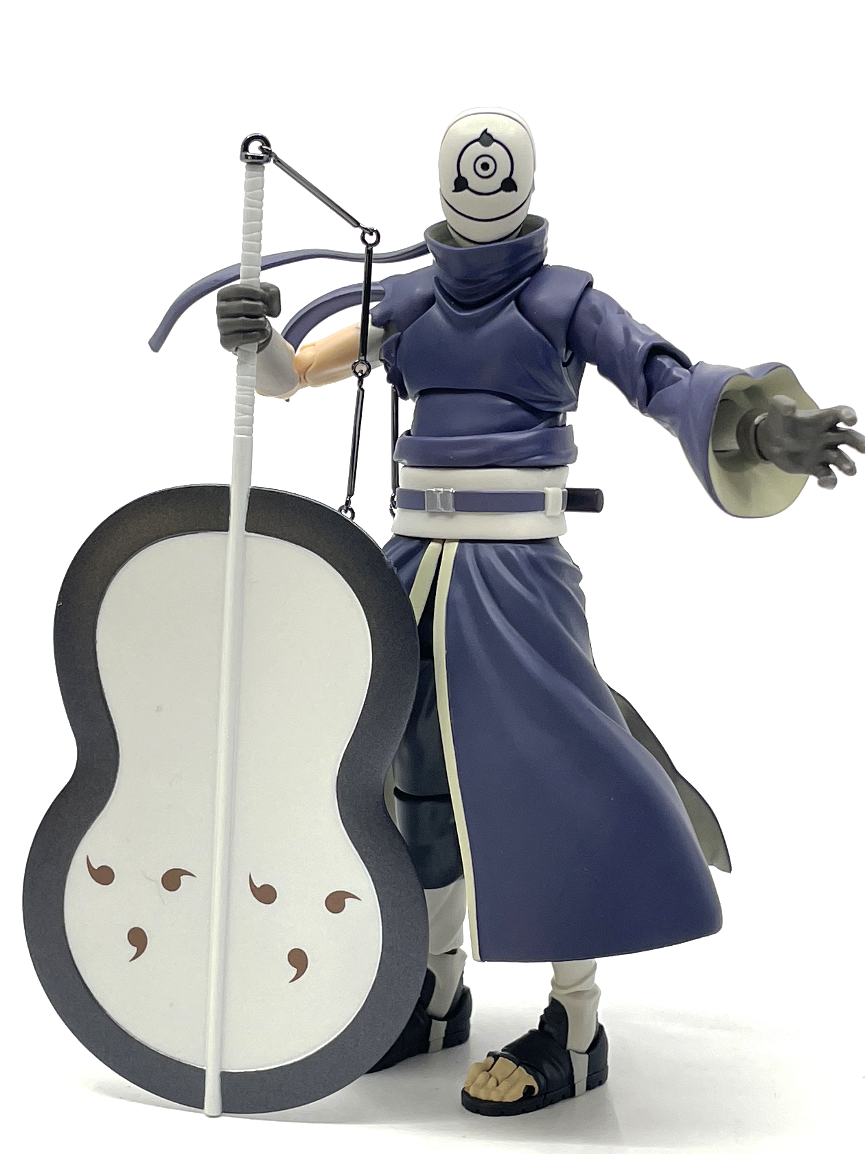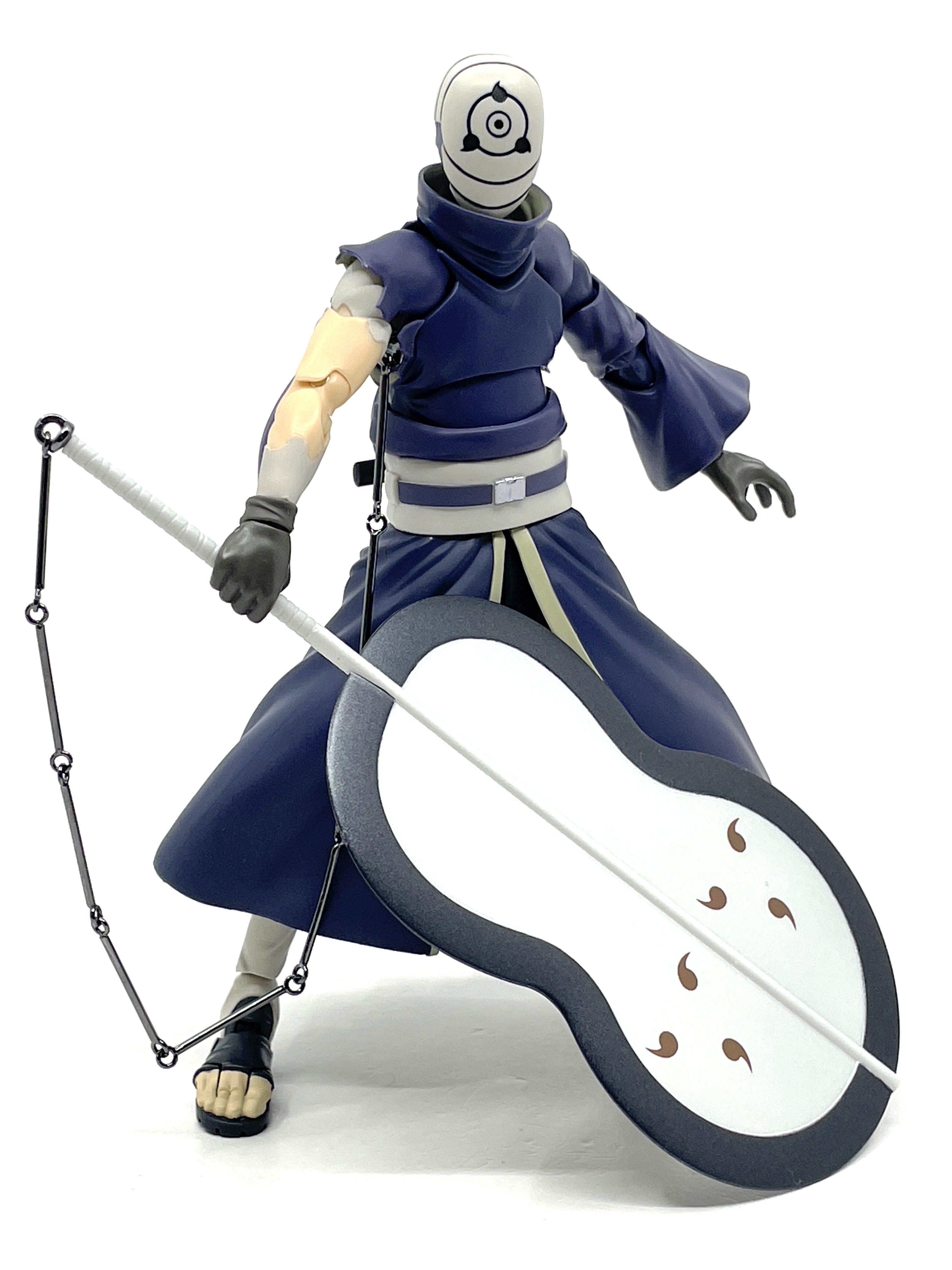 우치하 오비토가 성인으로 묘사된 제품인 만큼, 4차 닌자대점 시점의 정체가 드러난 모습을 기반으로 제품화됐습니다. 아카츠키 멤버 토비로 활동할 당시와 달리 우치하 복장을 입었던 만큼 자신의 개성이 더욱 드러난 모습이지요.
