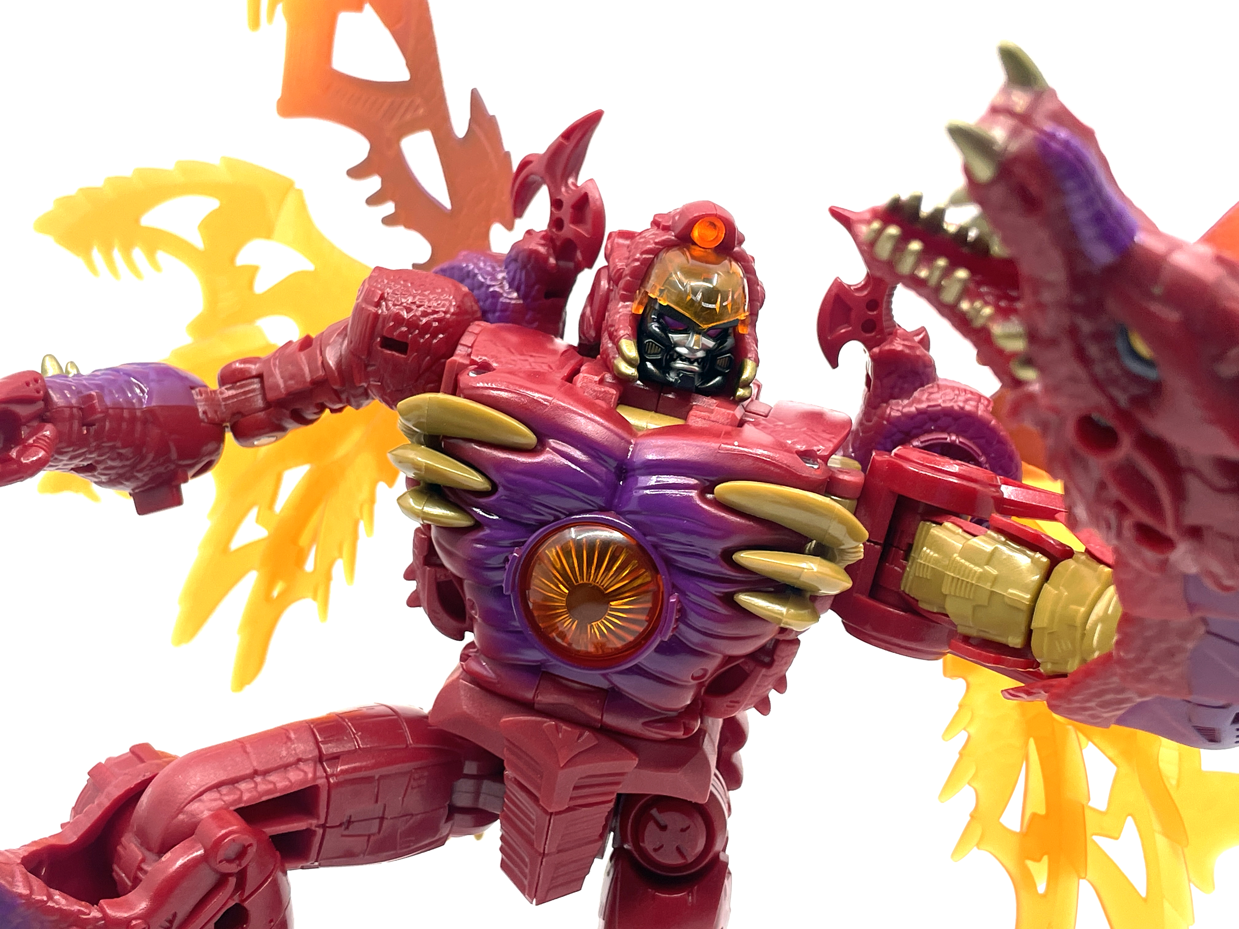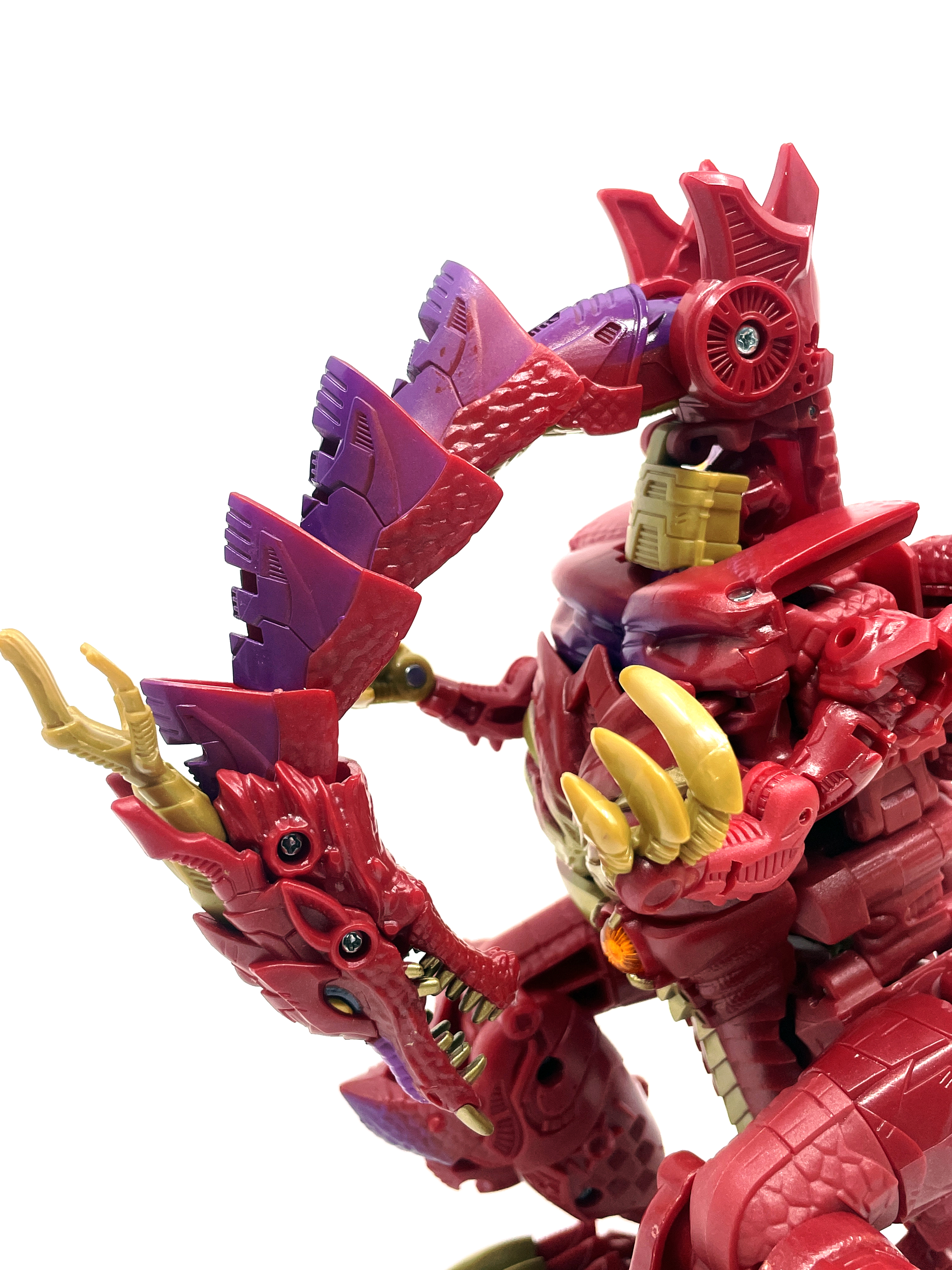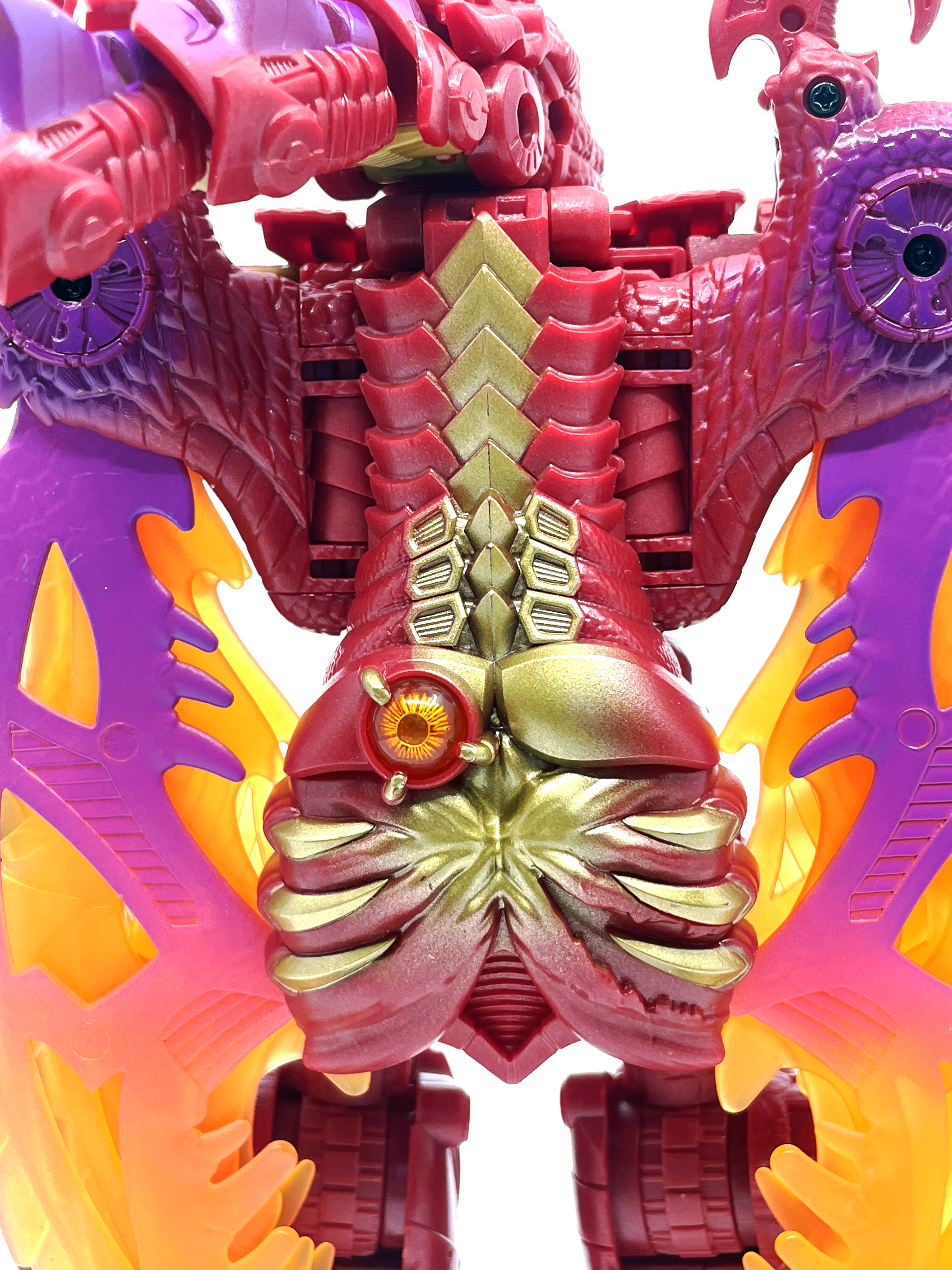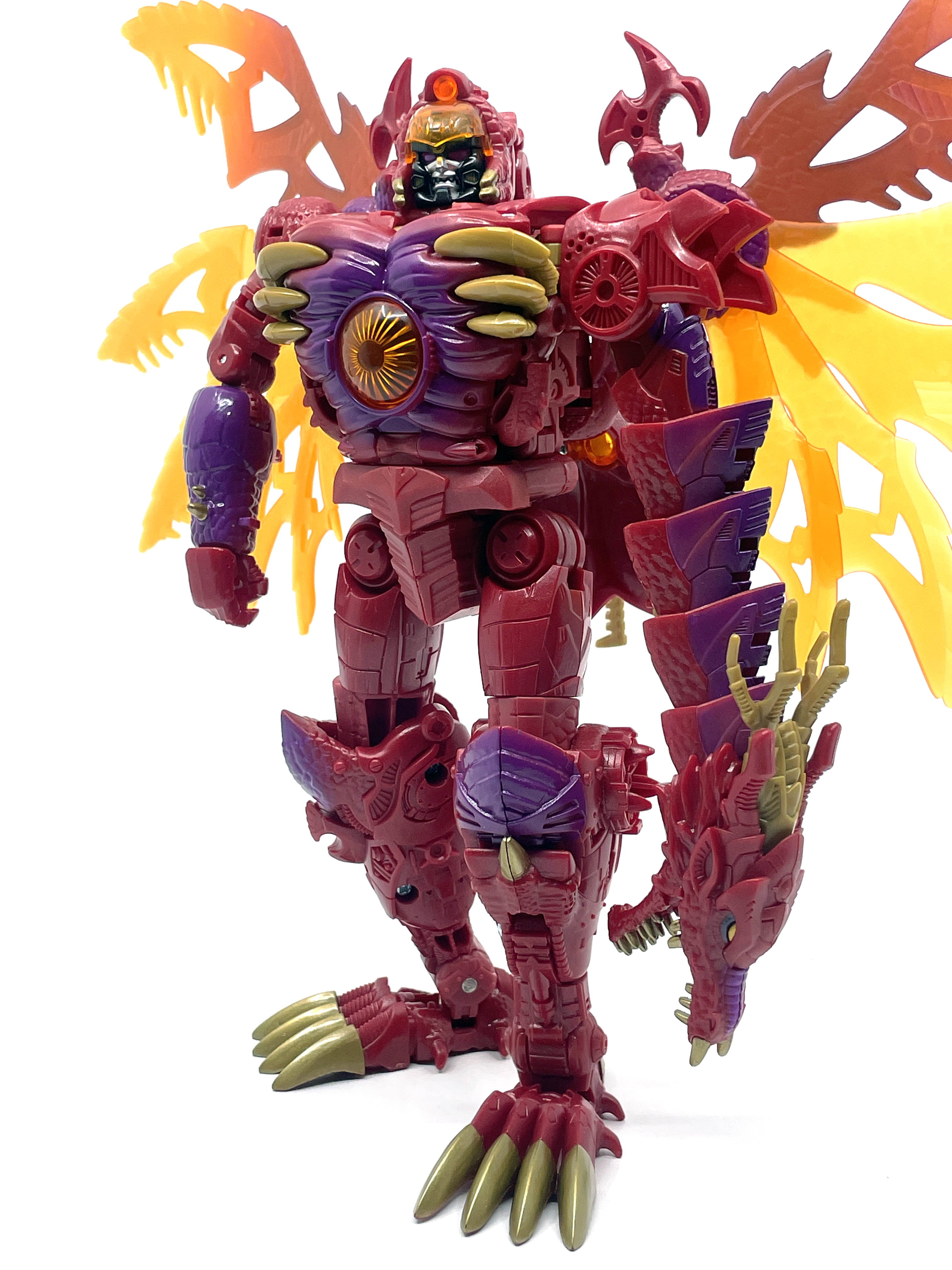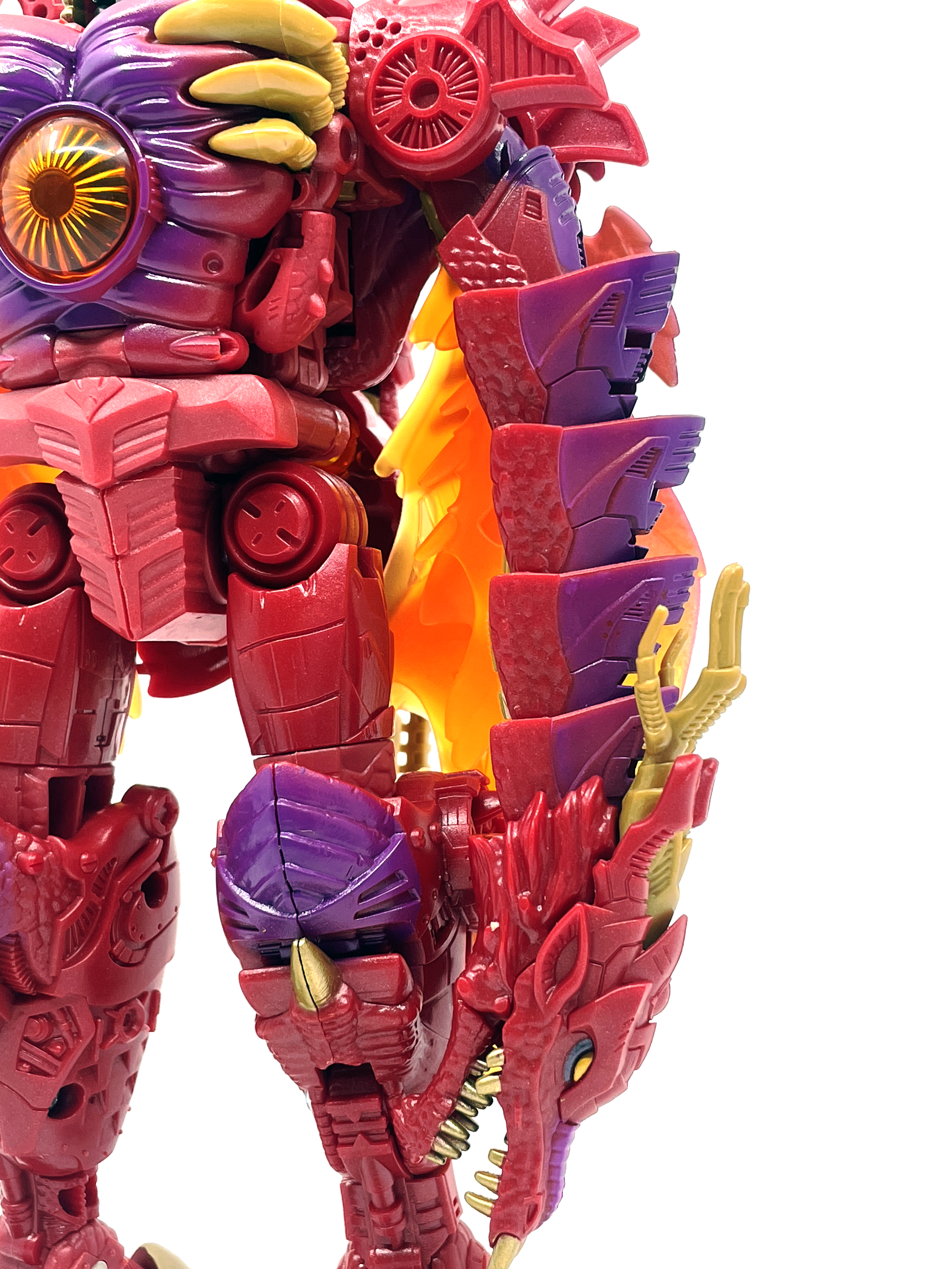 재미난 사실이 있다면, 본래 드래곤 메가트론의 몸체에 달린 발톱 같은 것은 비스트 모드의 앞발과는 아무런 상관 없는 장식 같은 것이었습니다. 레거시 리메이크에선 앞발 디자인을 바꾸면서 이런 식으로 만들었지요. 개인적으론 발톱이 잘 빠지는 탓에 별로라고 생각합니다. 드래곤 팔이 완전히 수납되는 것도 아니라서 상체를 너무 넓게 보이게 하는 것도 있고.