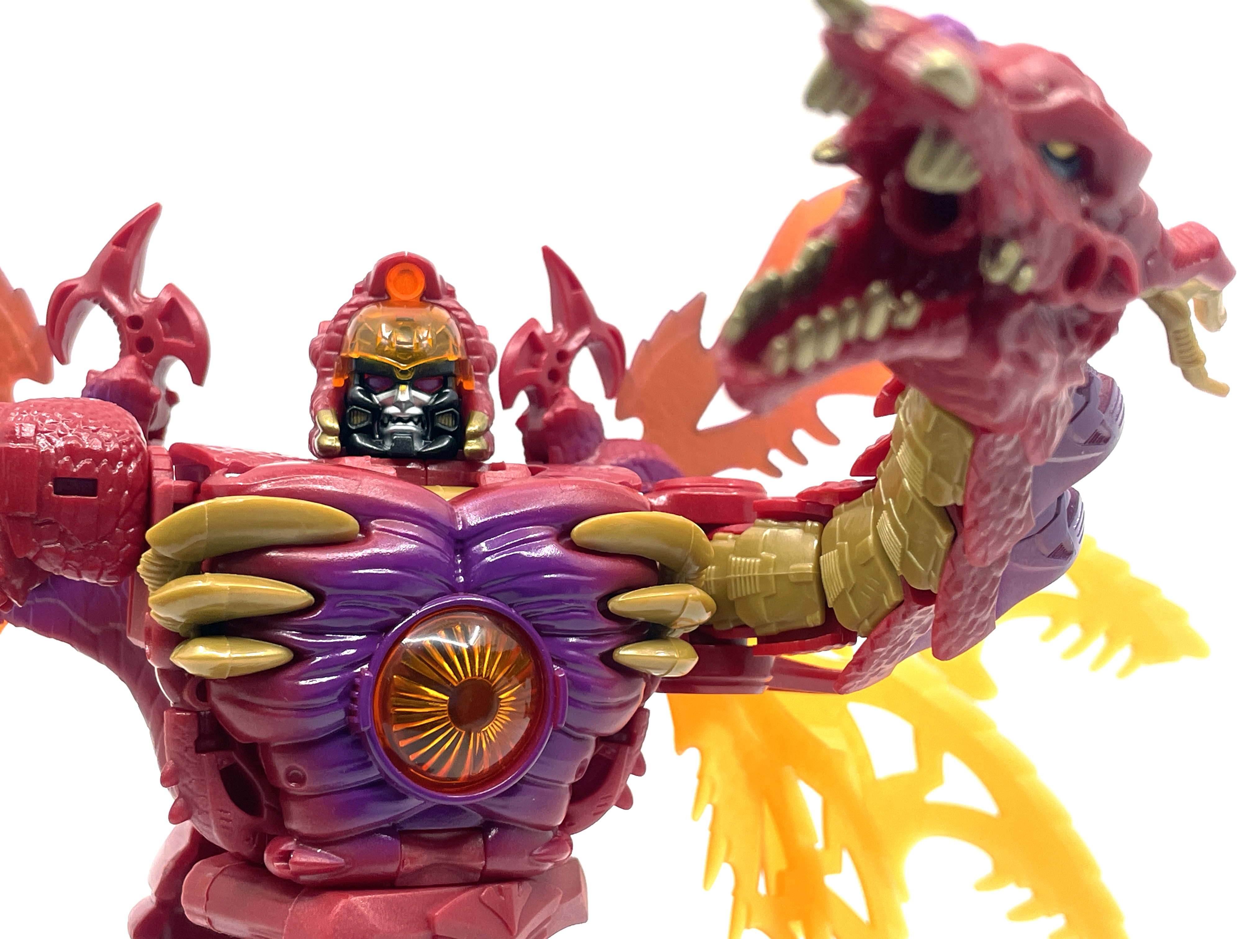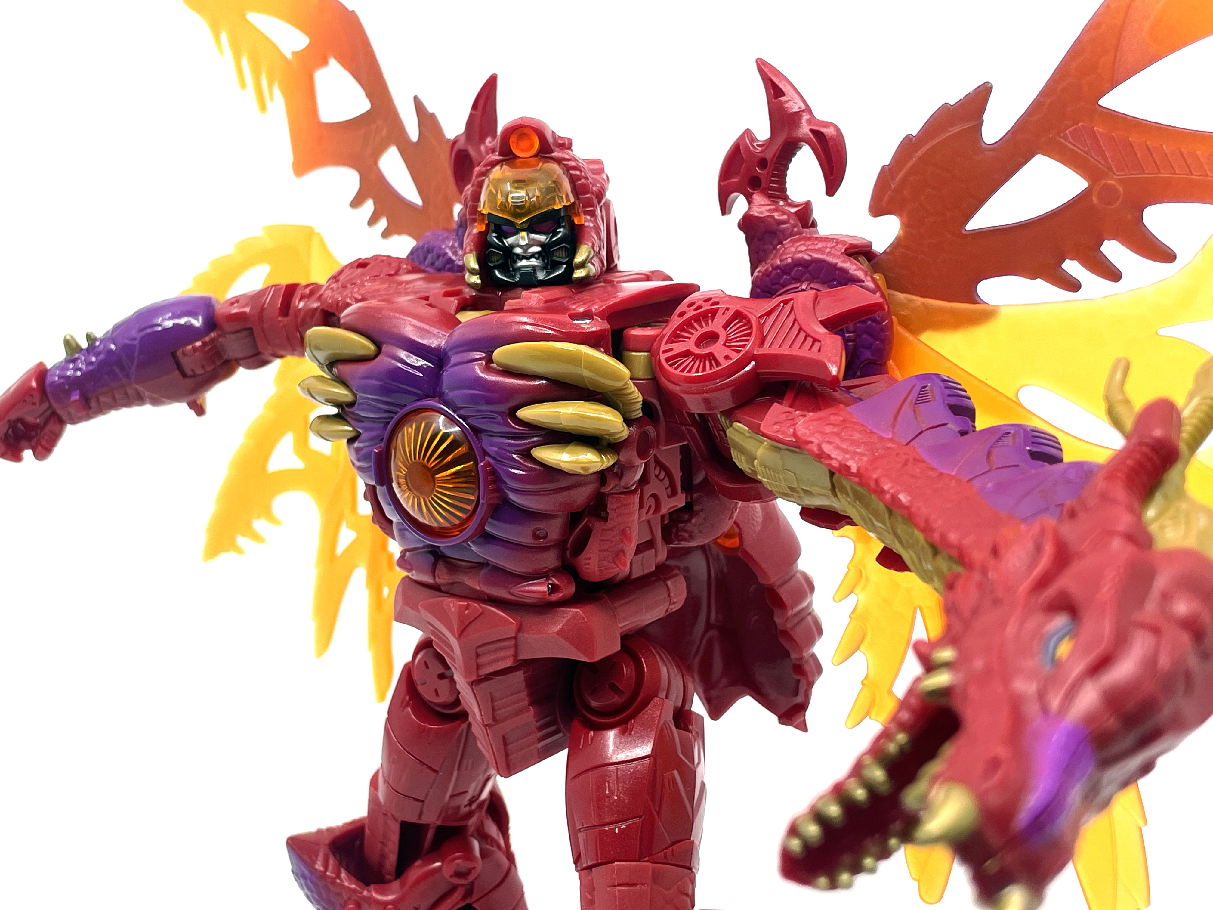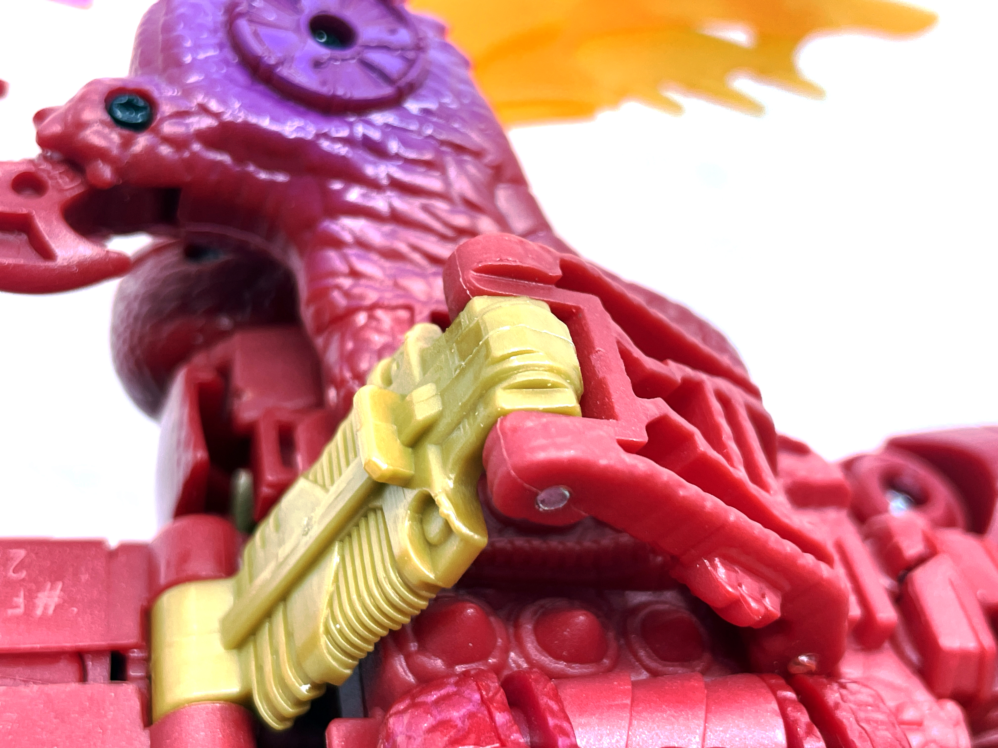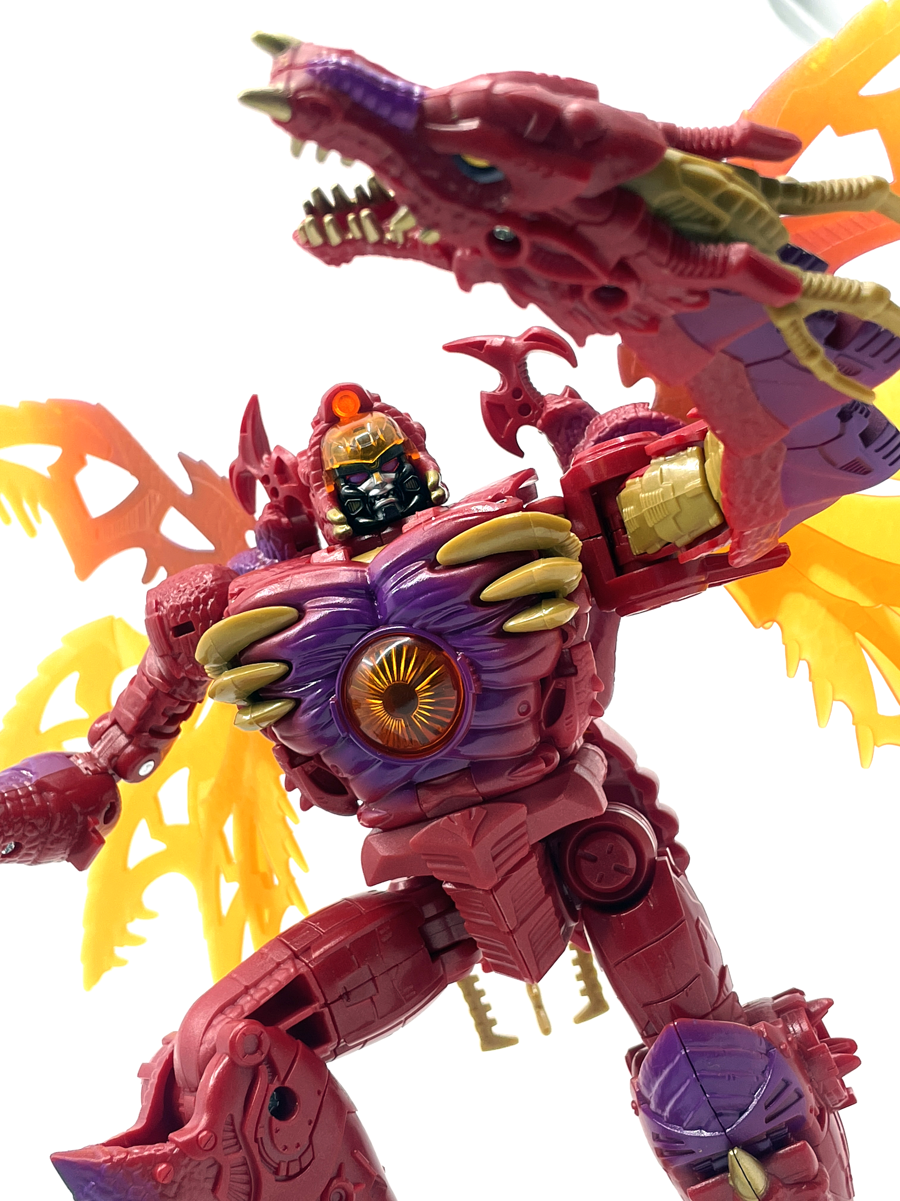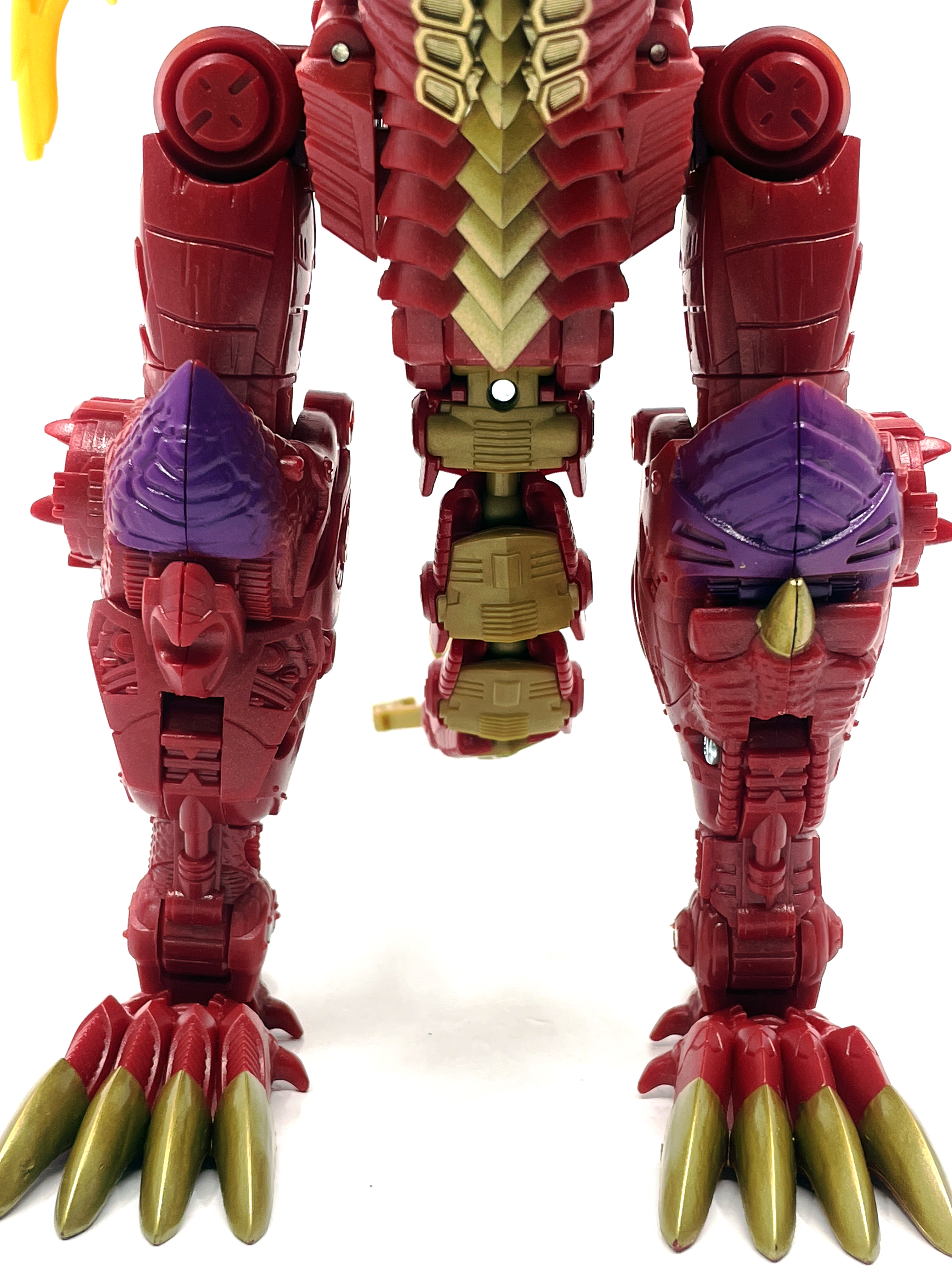 재미난 사실이 있다면, 본래 드래곤 메가트론의 몸체에 달린 발톱 같은 것은 비스트 모드의 앞발과는 아무런 상관 없는 장식 같은 것이었습니다. 레거시 리메이크에선 앞발 디자인을 바꾸면서 이런 식으로 만들었지요. 개인적으론 발톱이 잘 빠지는 탓에 별로라고 생각합니다. 드래곤 팔이 완전히 수납되는 것도 아니라서 상체를 너무 넓게 보이게 하는 것도 있고.