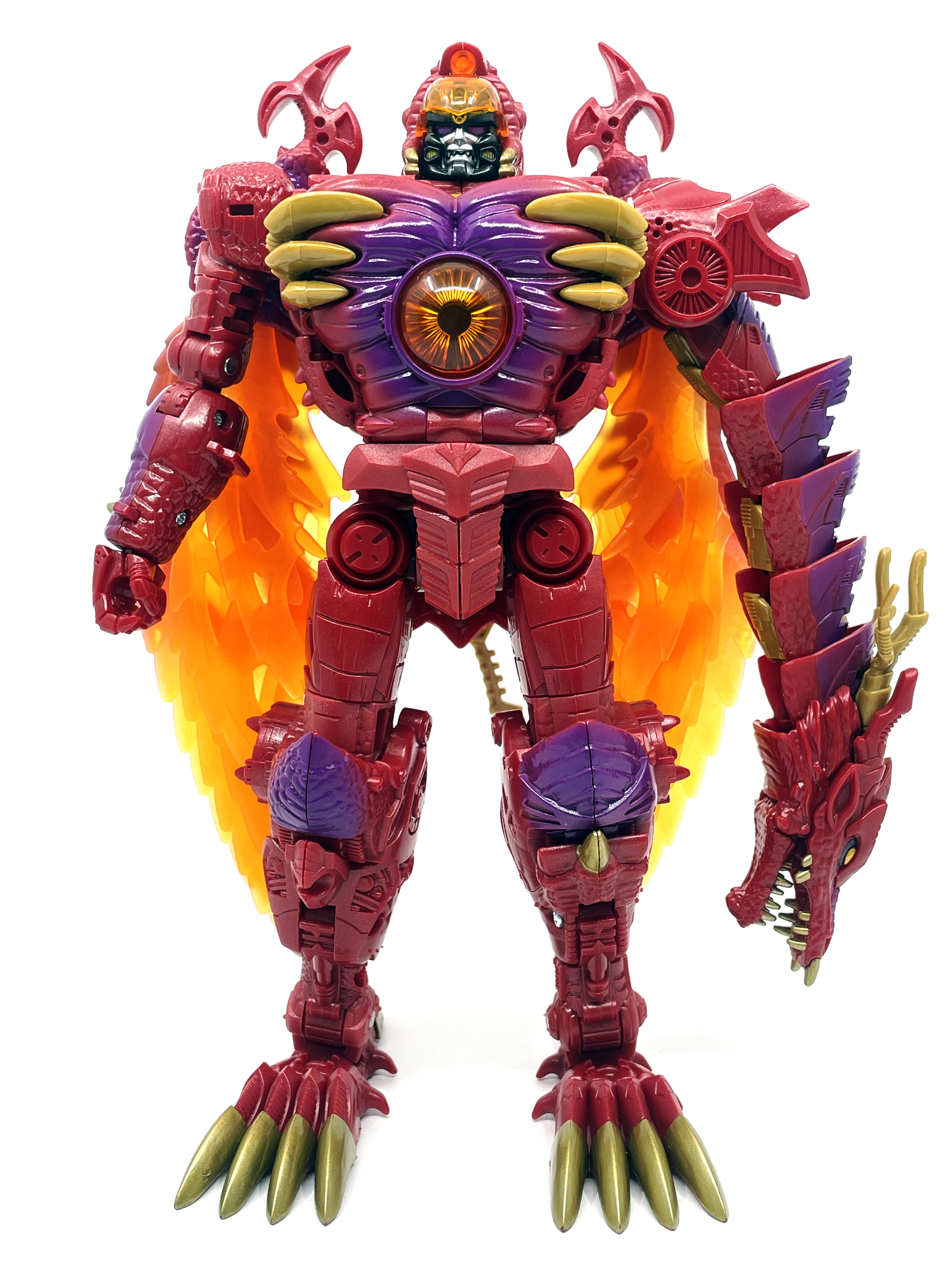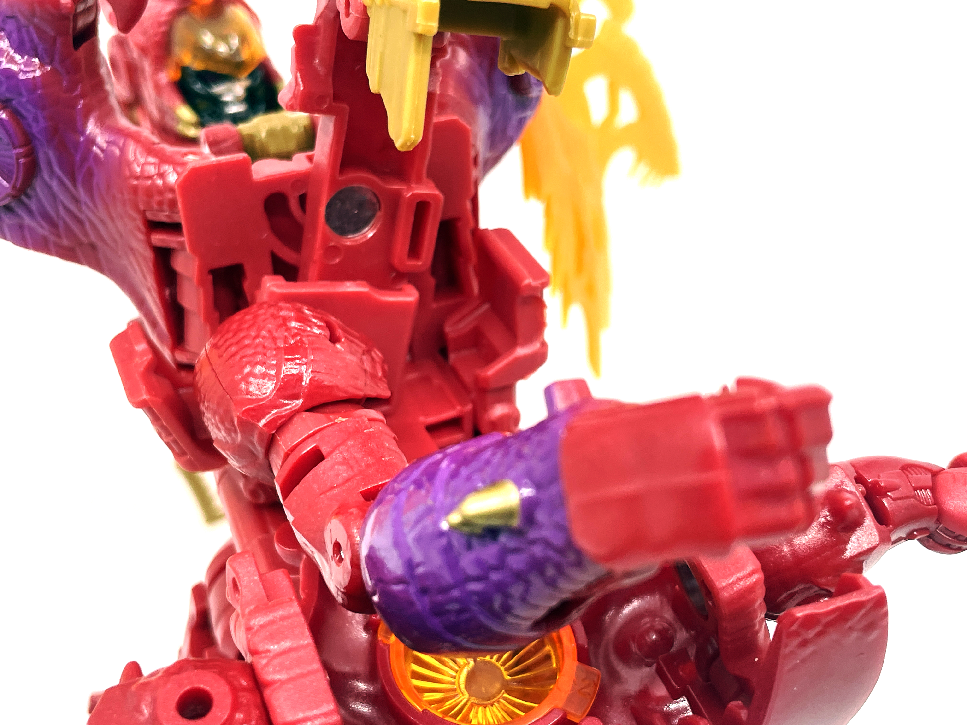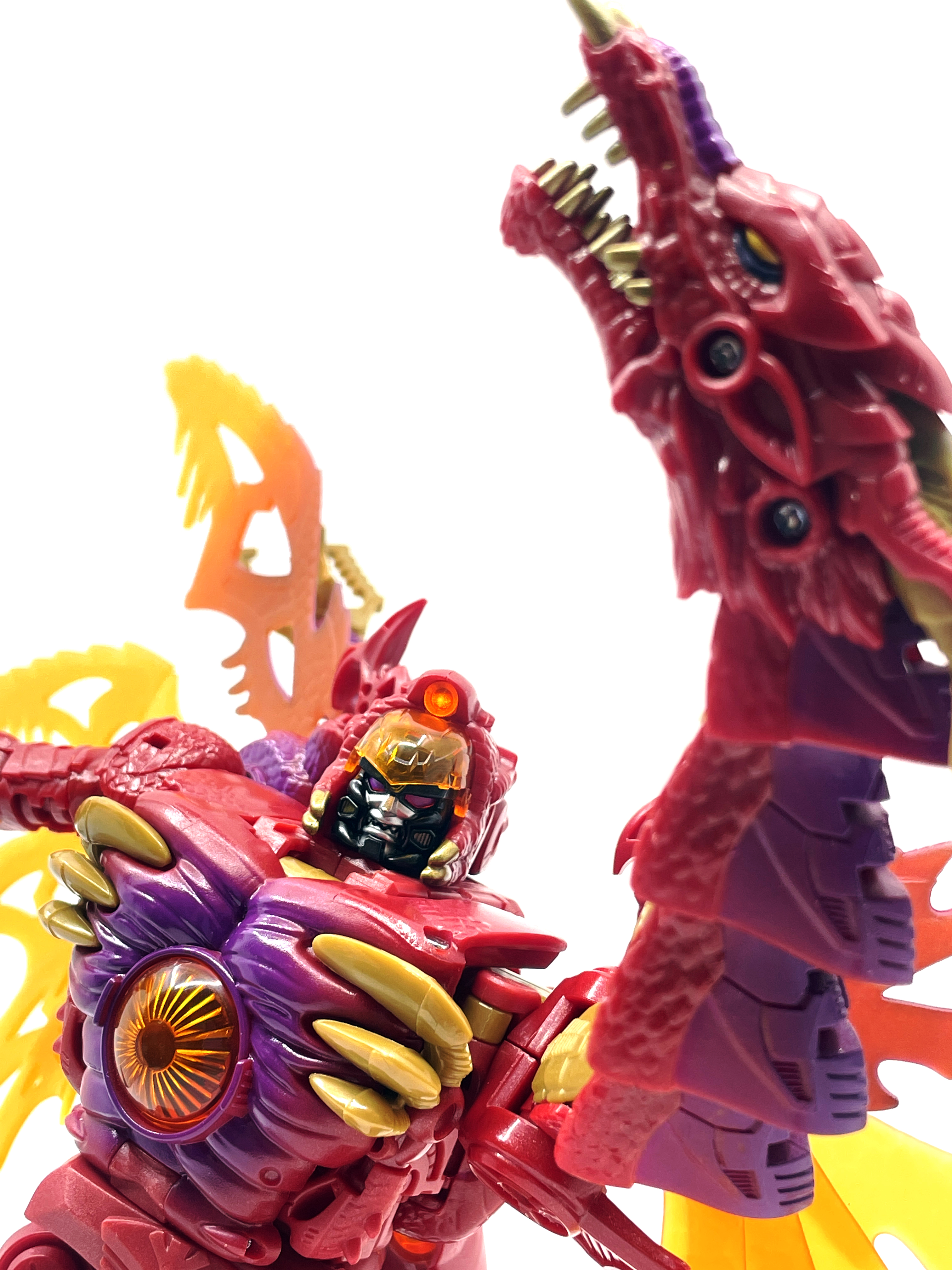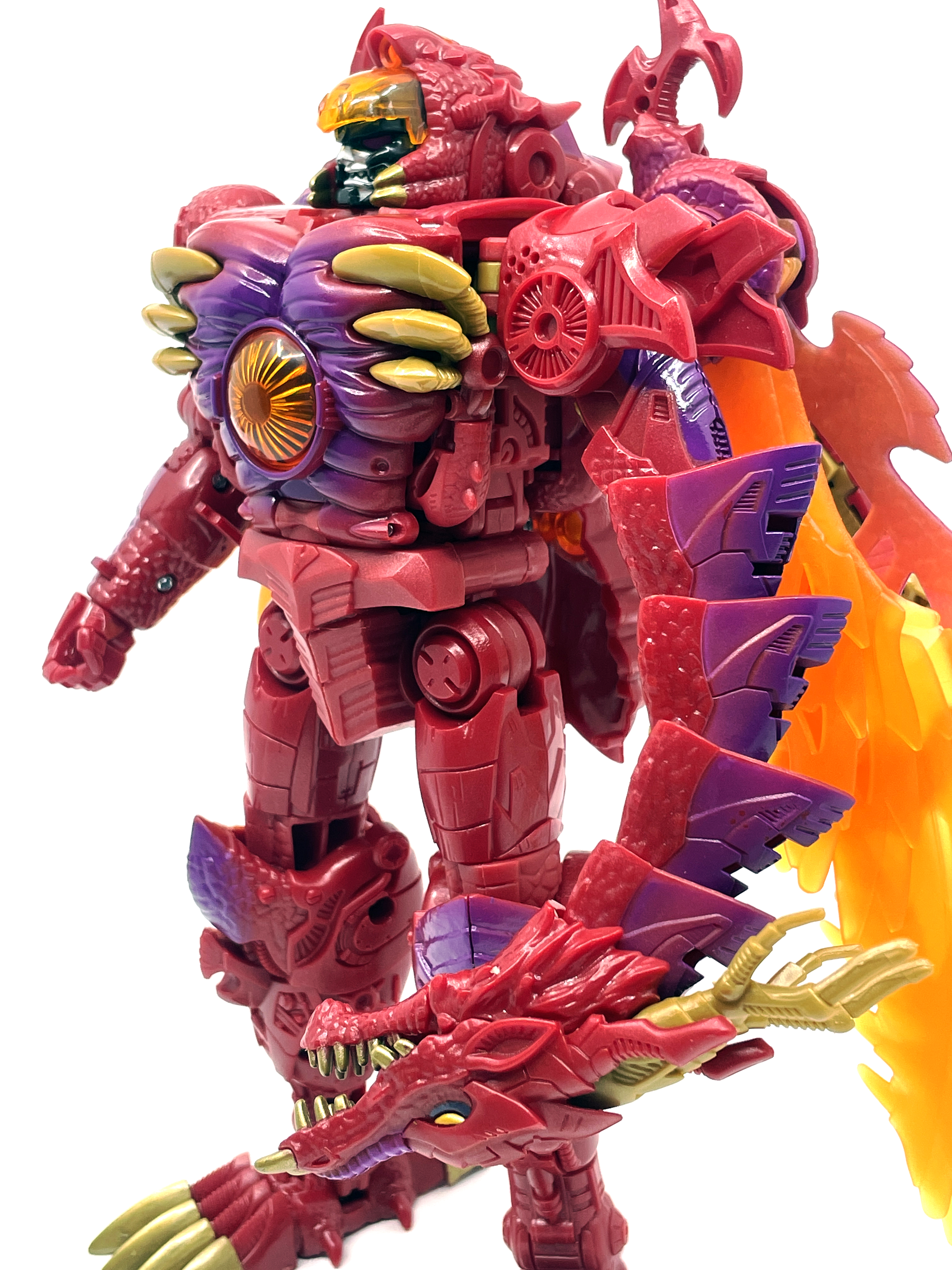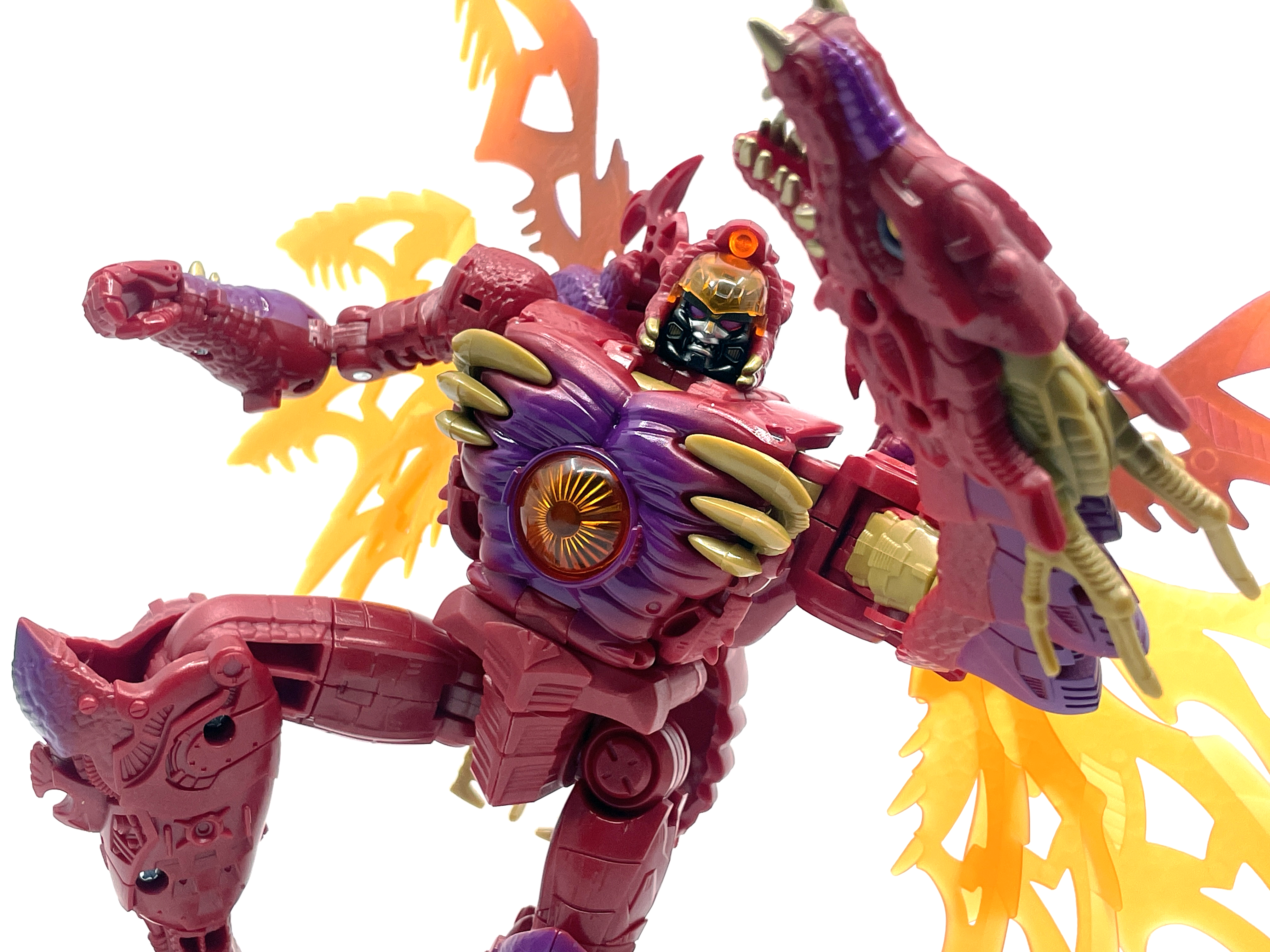 재미난 사실이 있다면, 본래 드래곤 메가트론의 몸체에 달린 발톱 같은 것은 비스트 모드의 앞발과는 아무런 상관 없는 장식 같은 것이었습니다. 레거시 리메이크에선 앞발 디자인을 바꾸면서 이런 식으로 만들었지요. 개인적으론 발톱이 잘 빠지는 탓에 별로라고 생각합니다. 드래곤 팔이 완전히 수납되는 것도 아니라서 상체를 너무 넓게 보이게 하는 것도 있고.