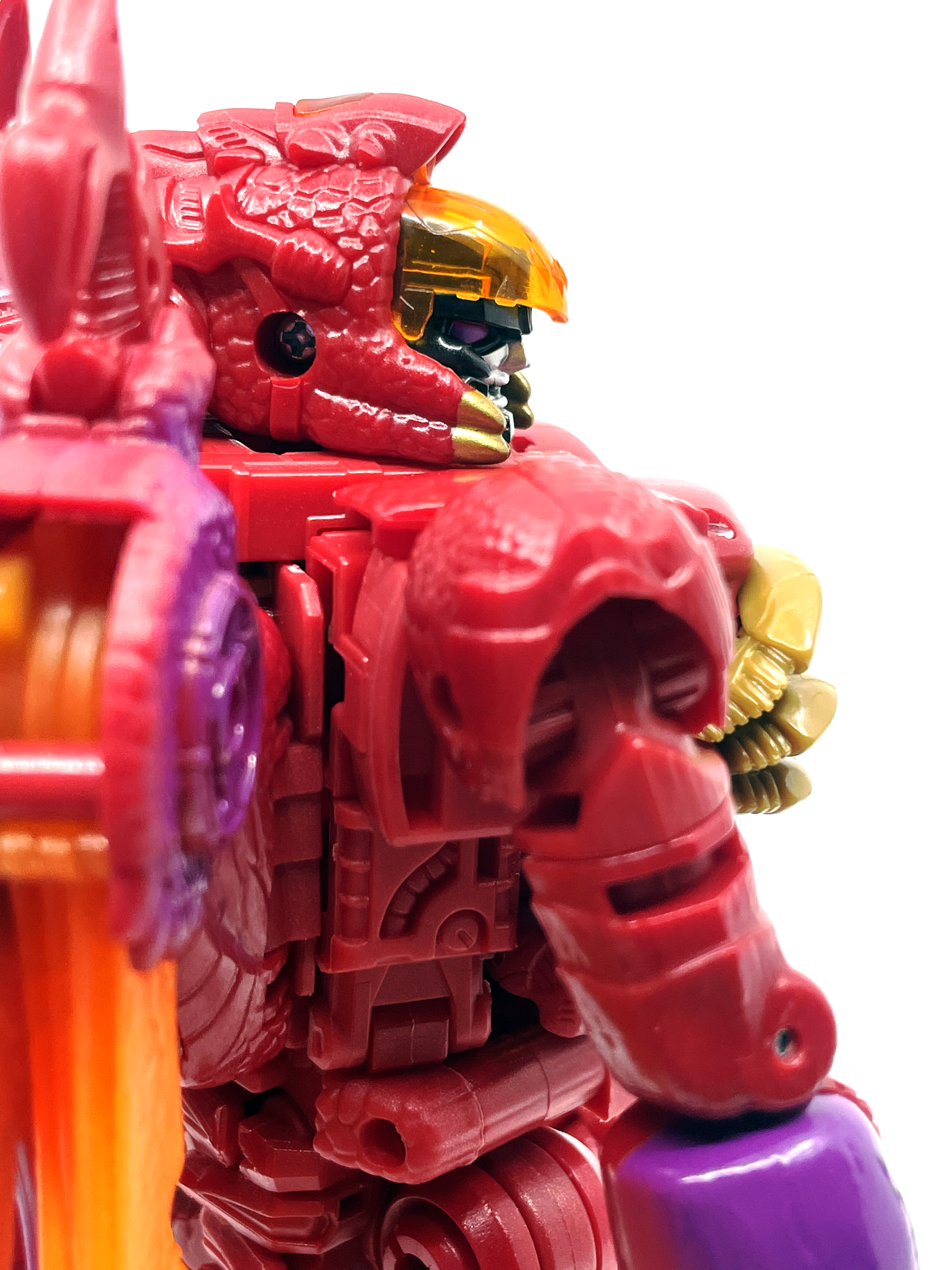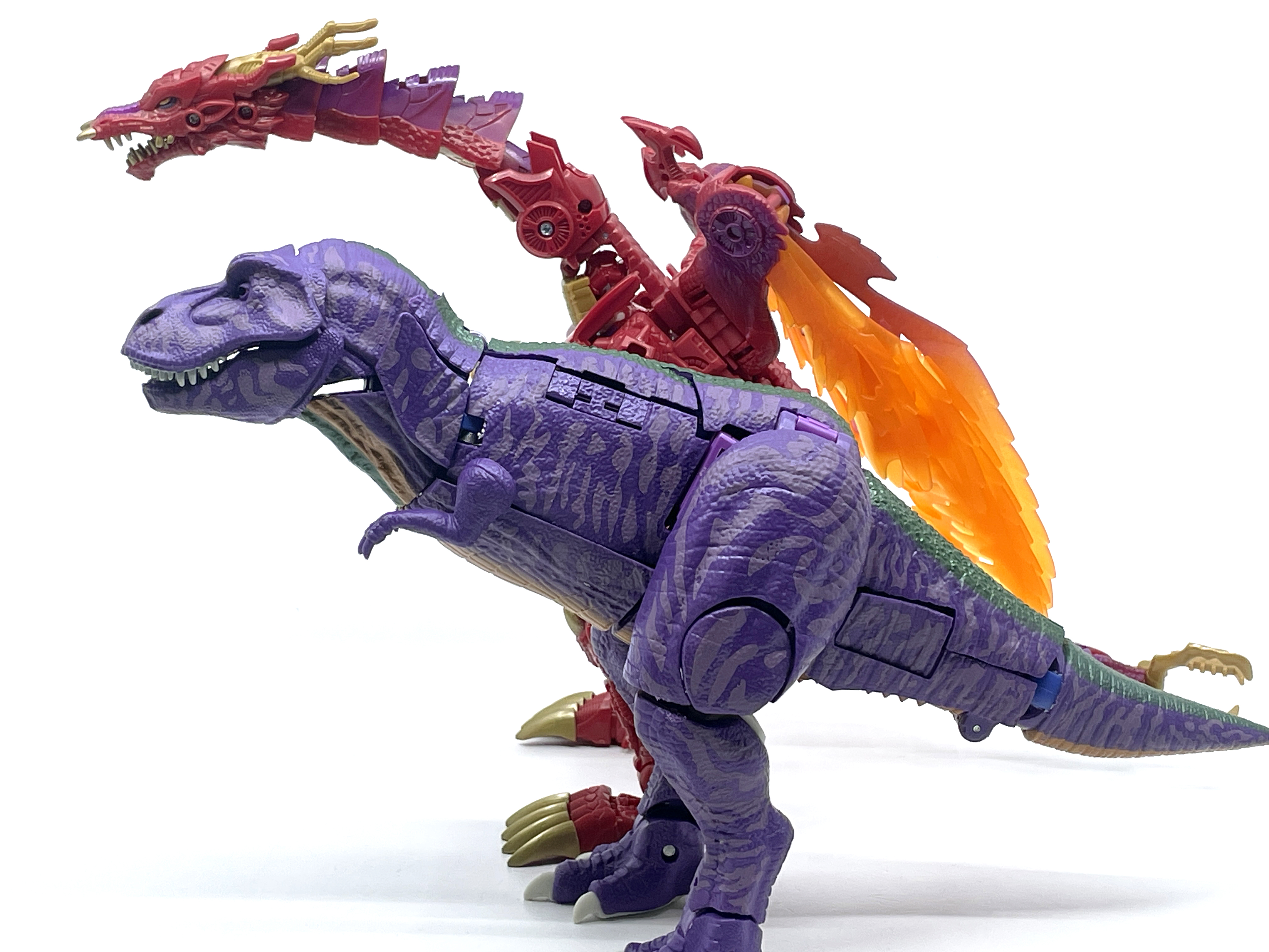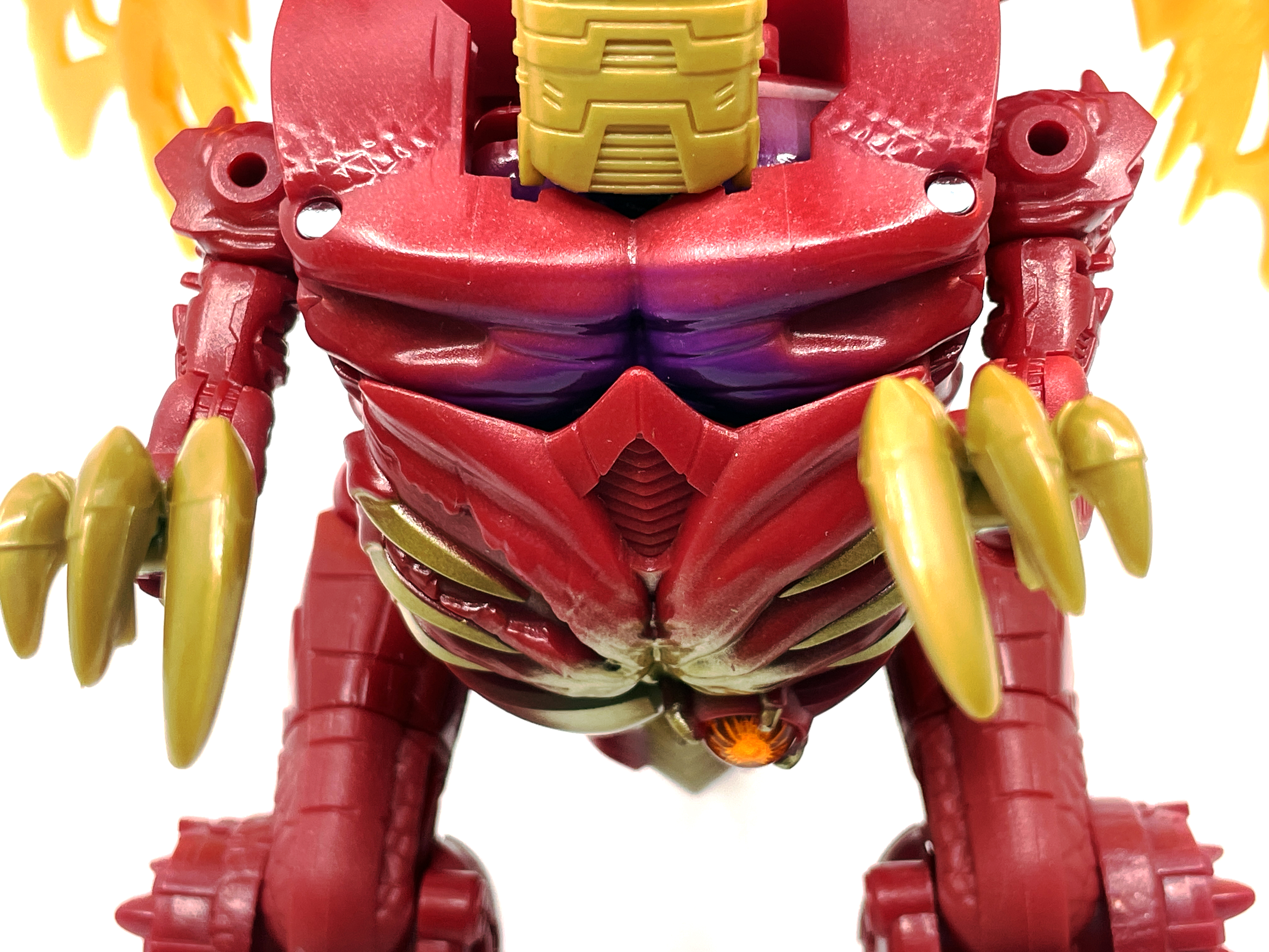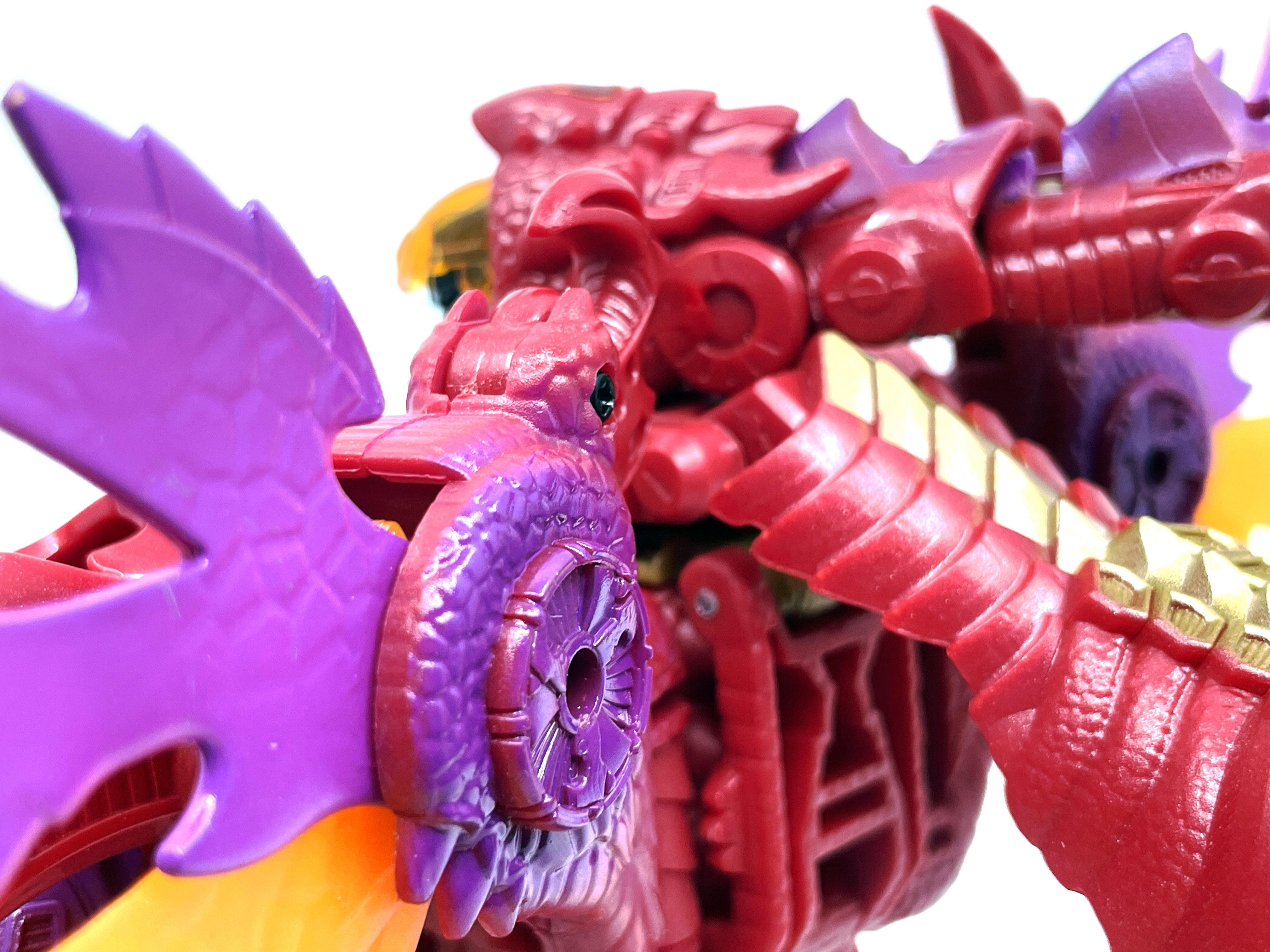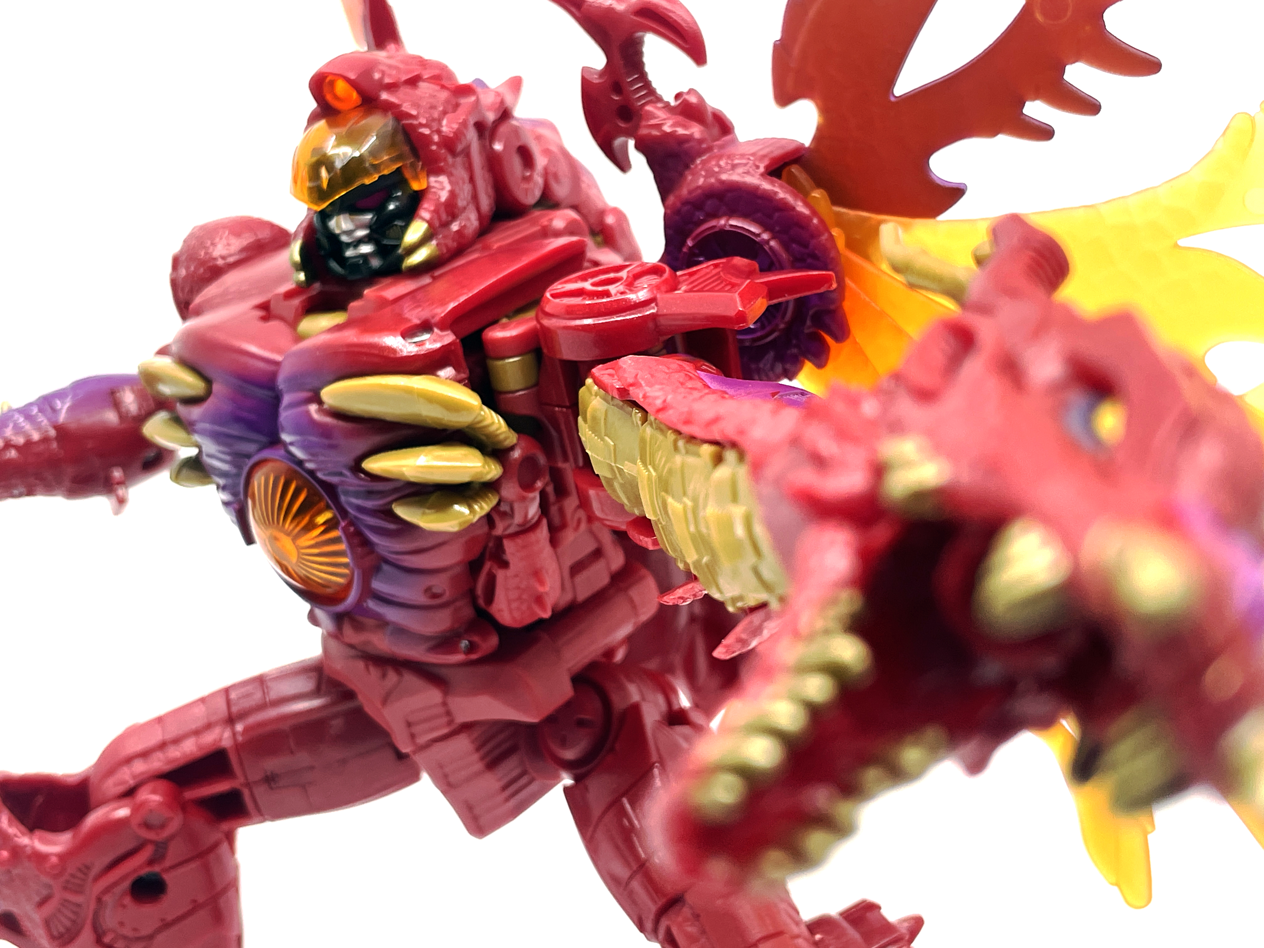 재미난 사실이 있다면, 본래 드래곤 메가트론의 몸체에 달린 발톱 같은 것은 비스트 모드의 앞발과는 아무런 상관 없는 장식 같은 것이었습니다. 레거시 리메이크에선 앞발 디자인을 바꾸면서 이런 식으로 만들었지요. 개인적으론 발톱이 잘 빠지는 탓에 별로라고 생각합니다. 드래곤 팔이 완전히 수납되는 것도 아니라서 상체를 너무 넓게 보이게 하는 것도 있고.
