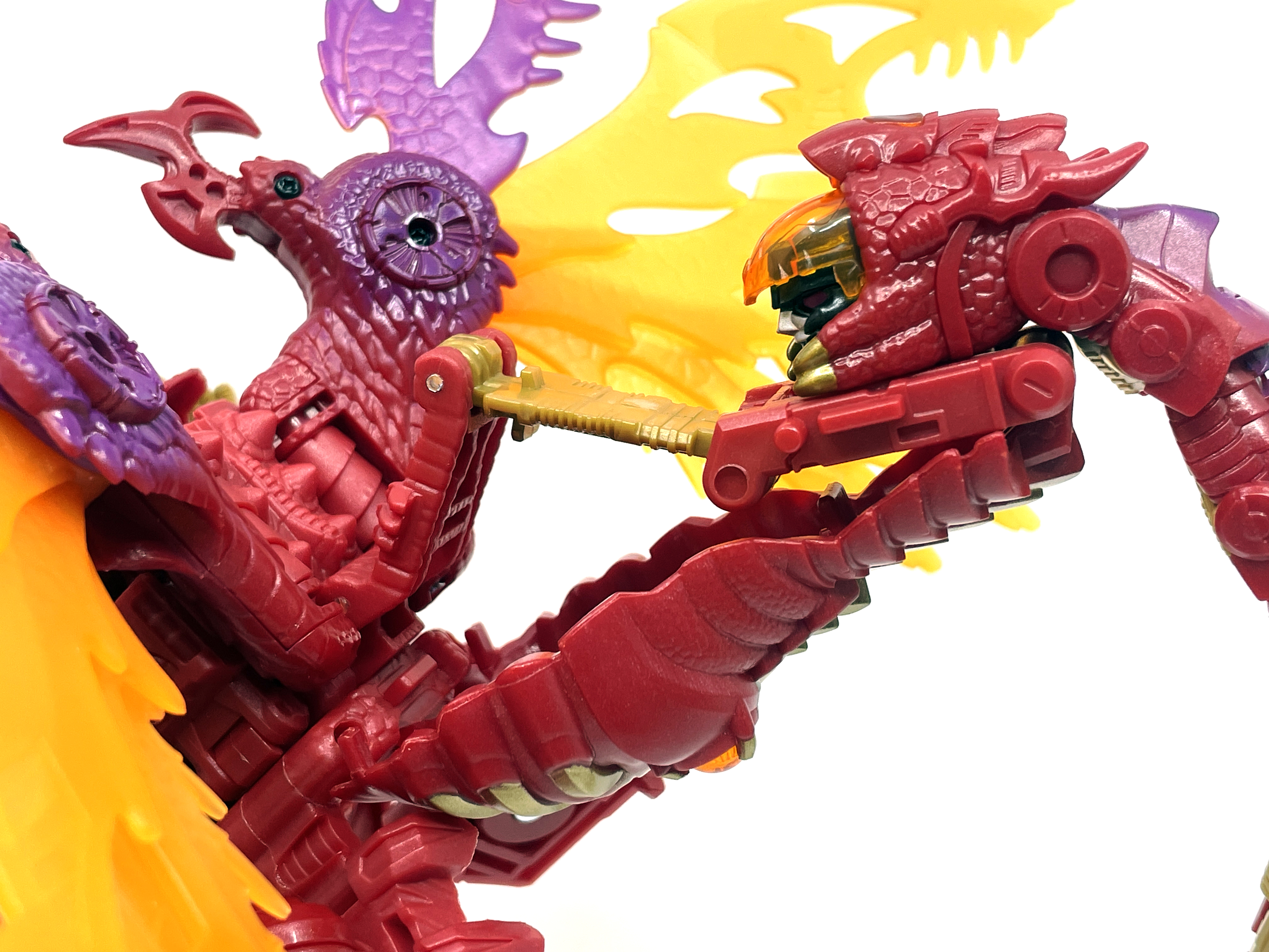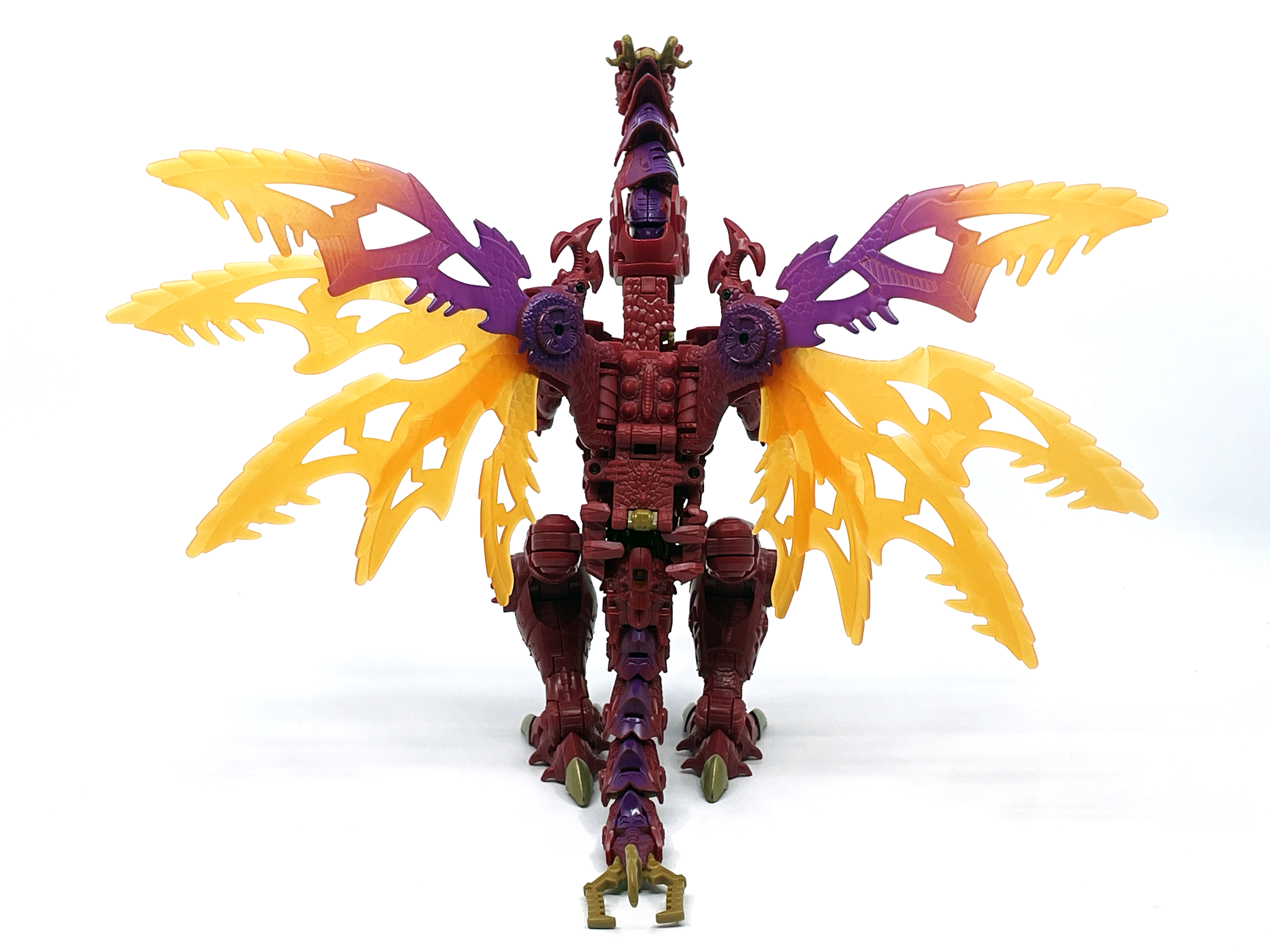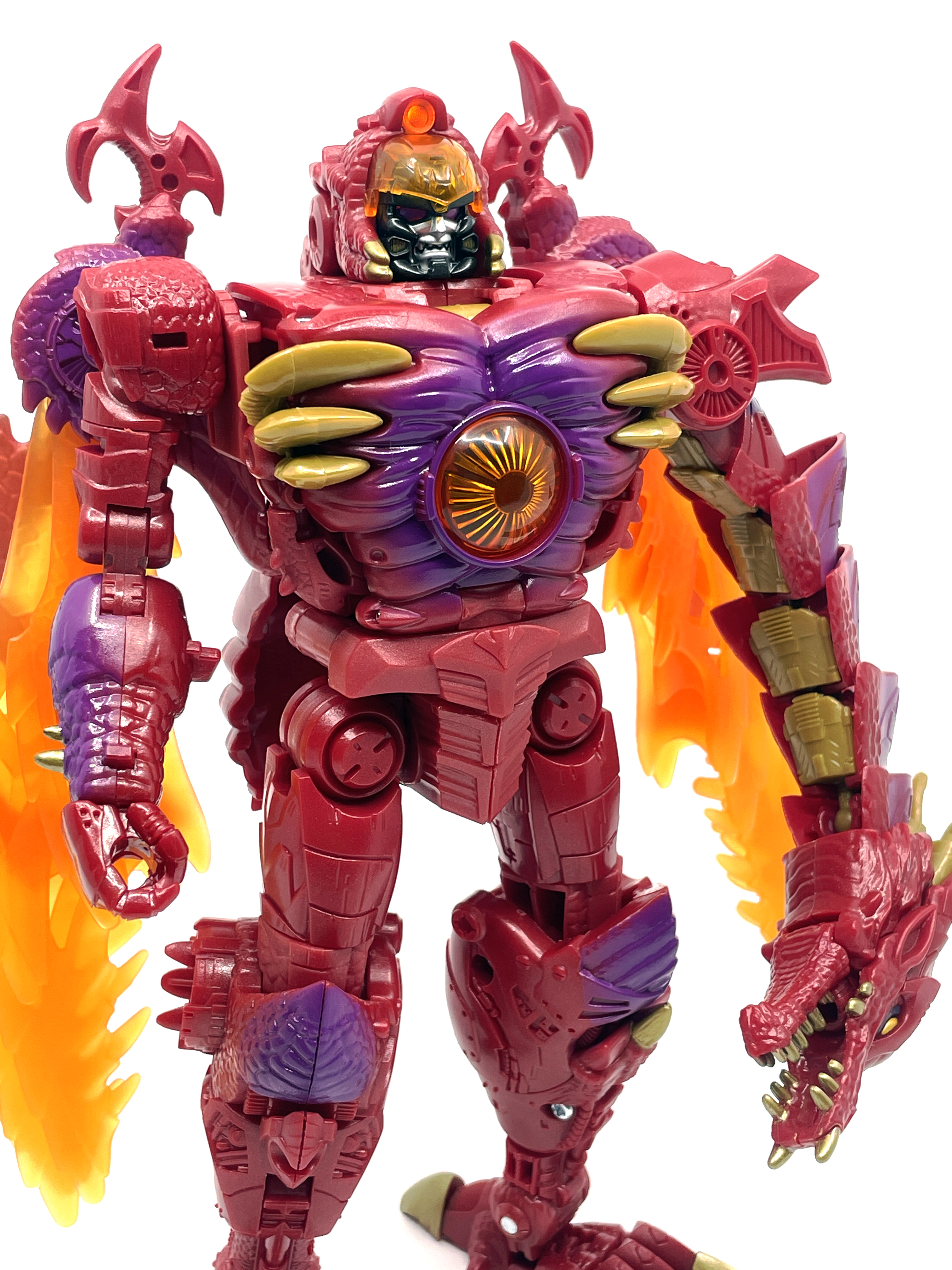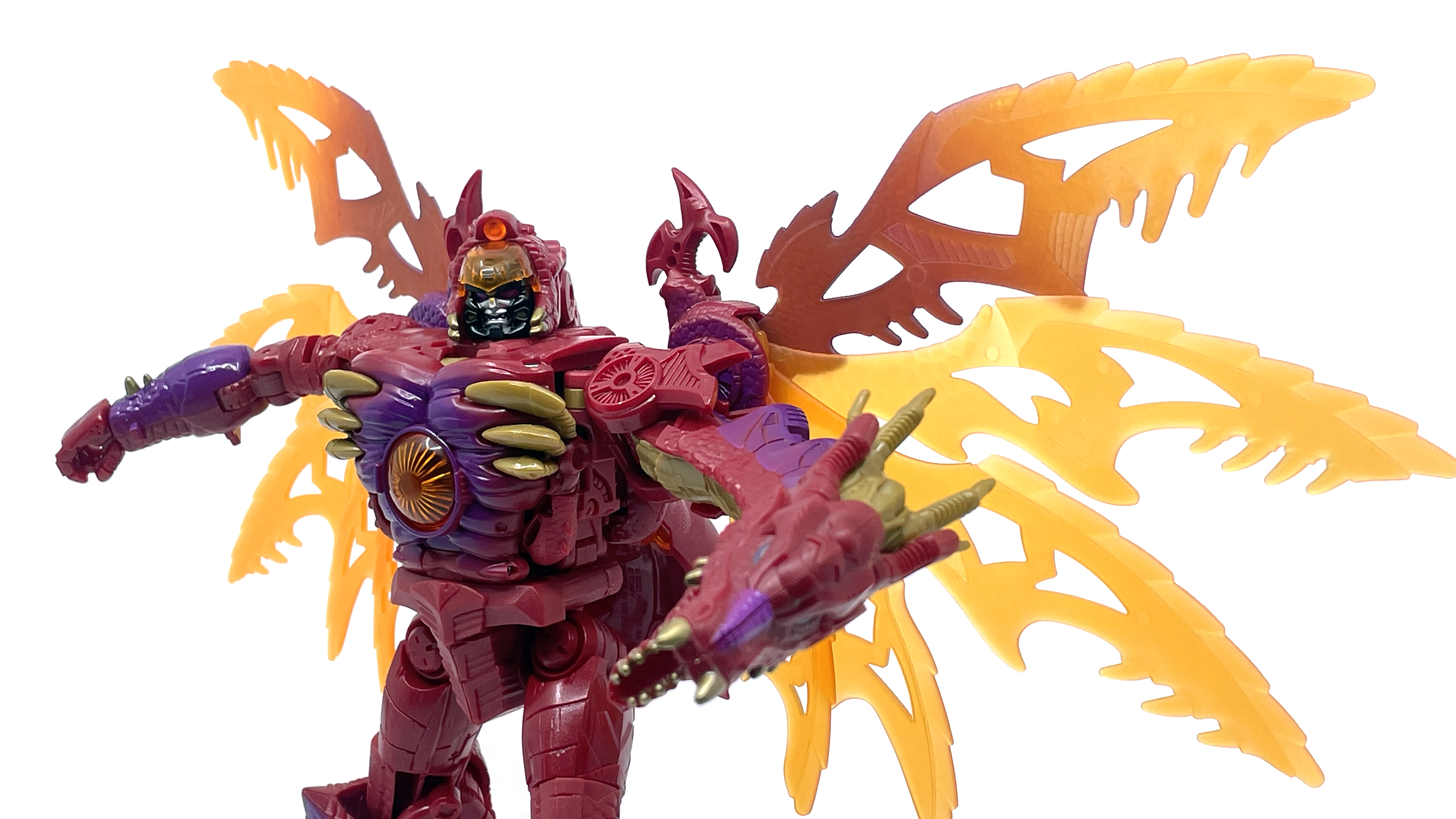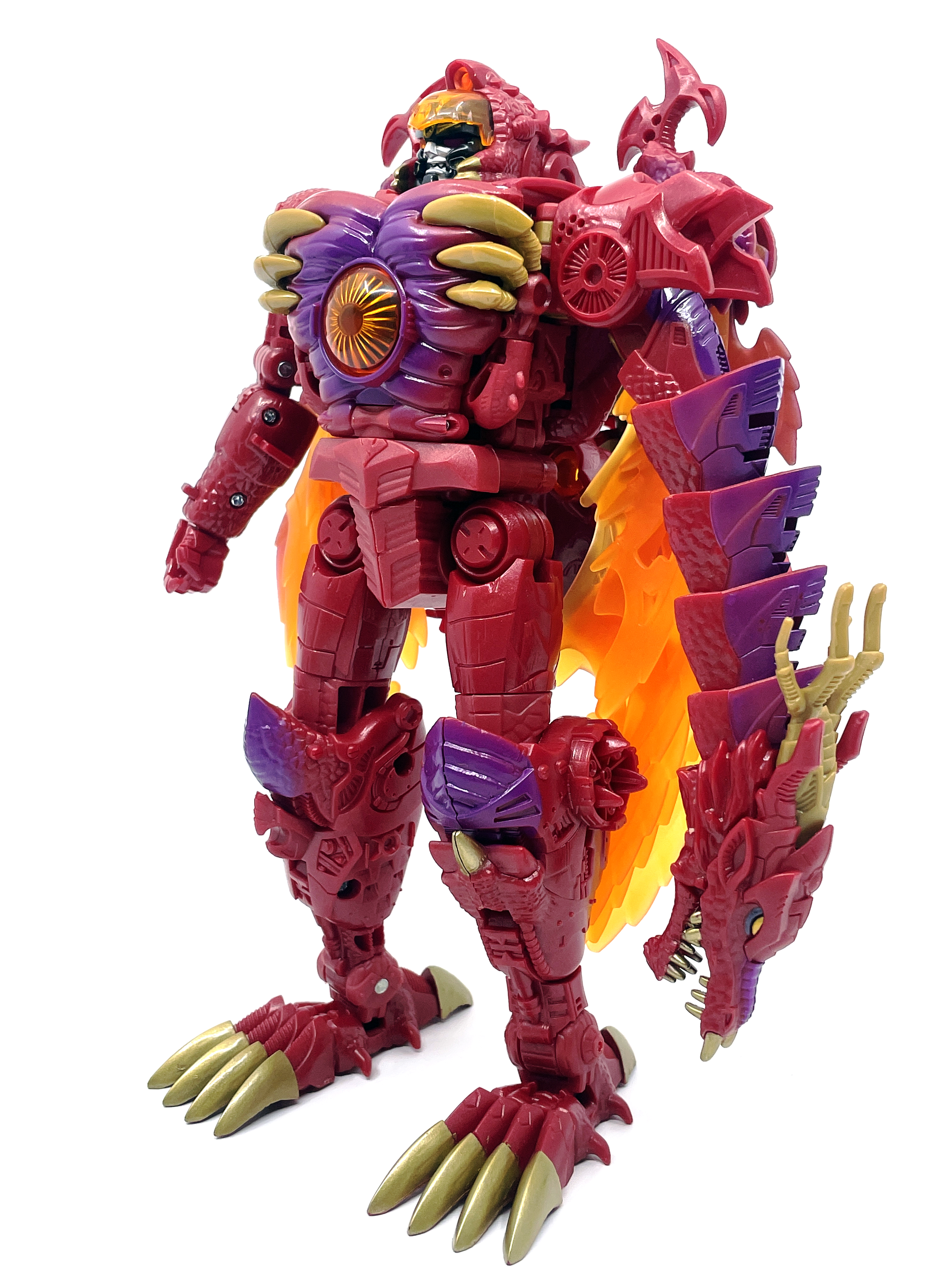 재미난 사실이 있다면, 본래 드래곤 메가트론의 몸체에 달린 발톱 같은 것은 비스트 모드의 앞발과는 아무런 상관 없는 장식 같은 것이었습니다. 레거시 리메이크에선 앞발 디자인을 바꾸면서 이런 식으로 만들었지요. 개인적으론 발톱이 잘 빠지는 탓에 별로라고 생각합니다. 드래곤 팔이 완전히 수납되는 것도 아니라서 상체를 너무 넓게 보이게 하는 것도 있고.