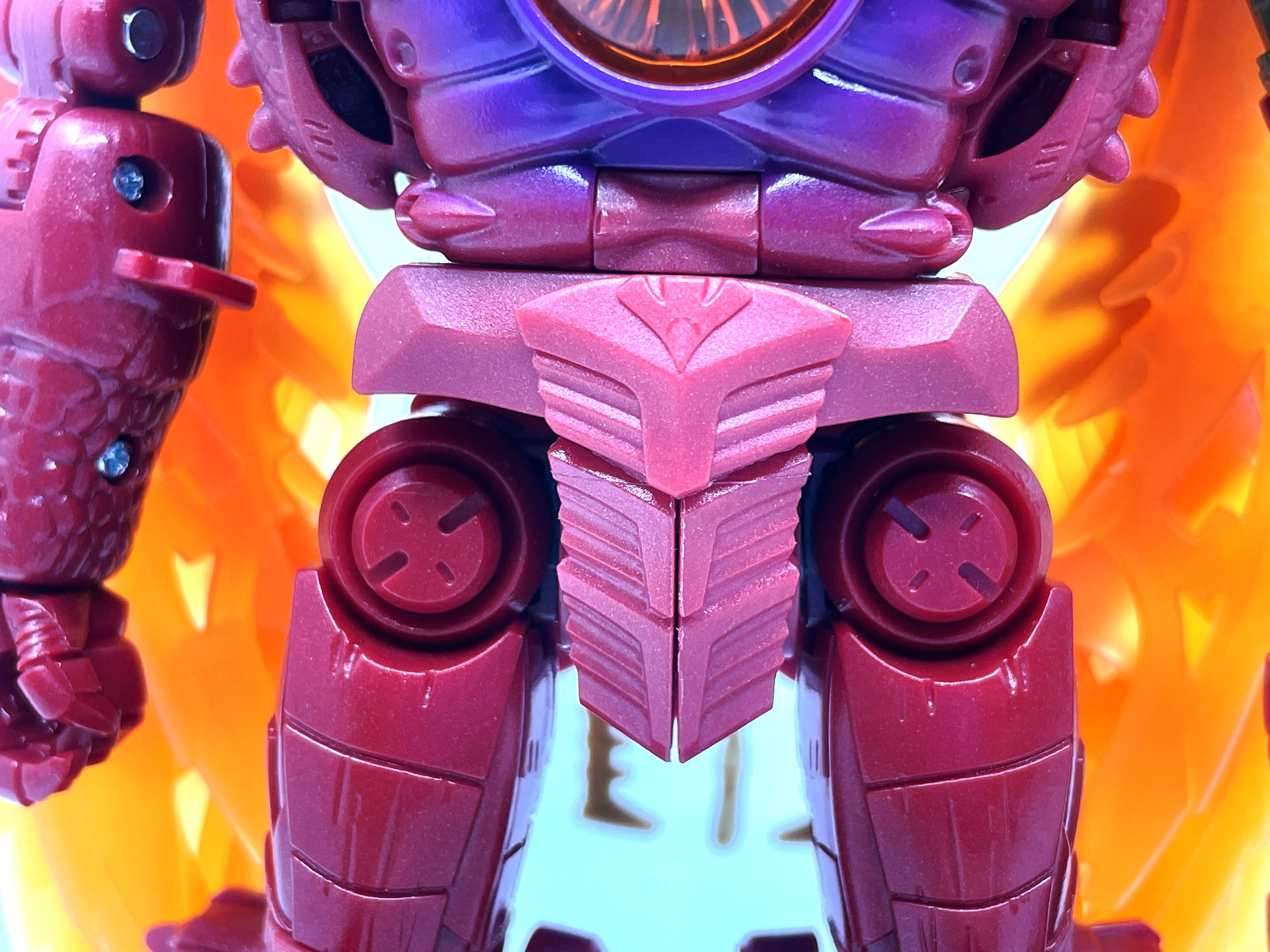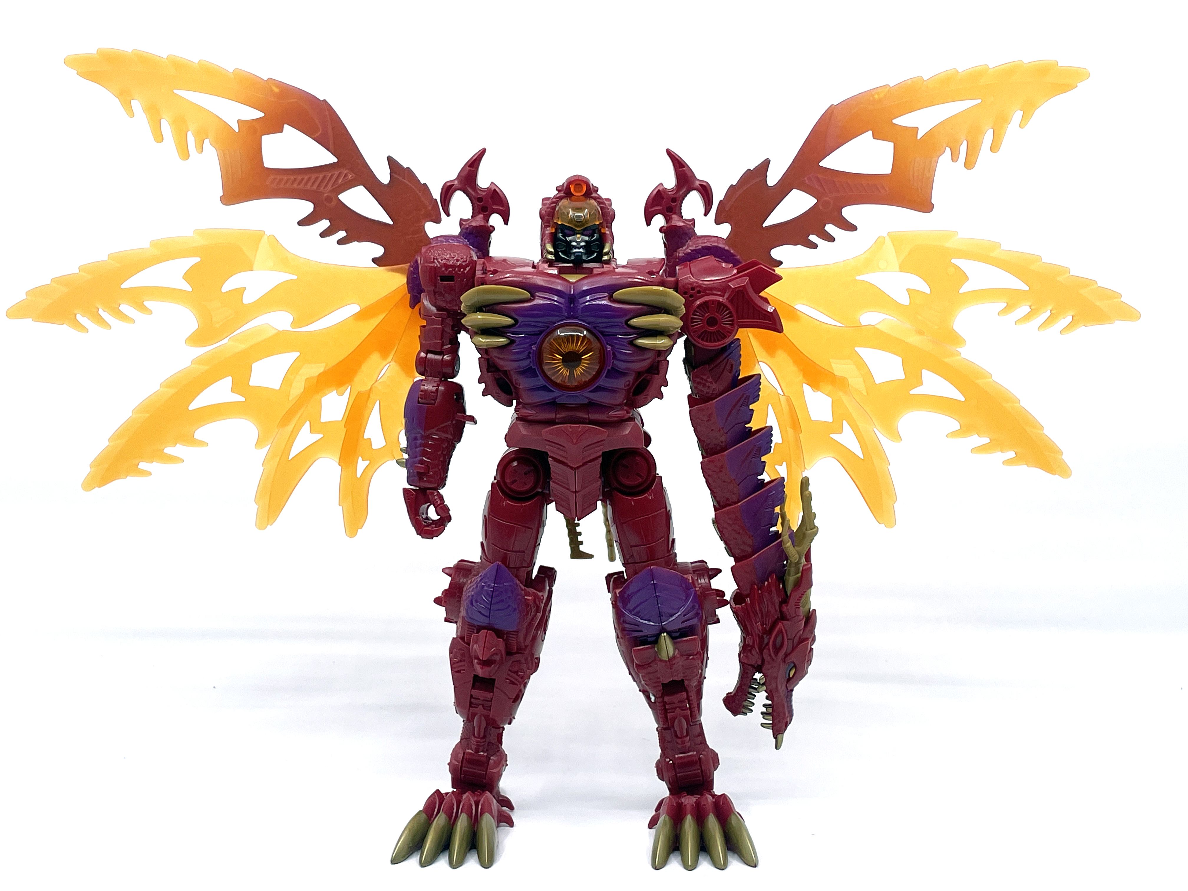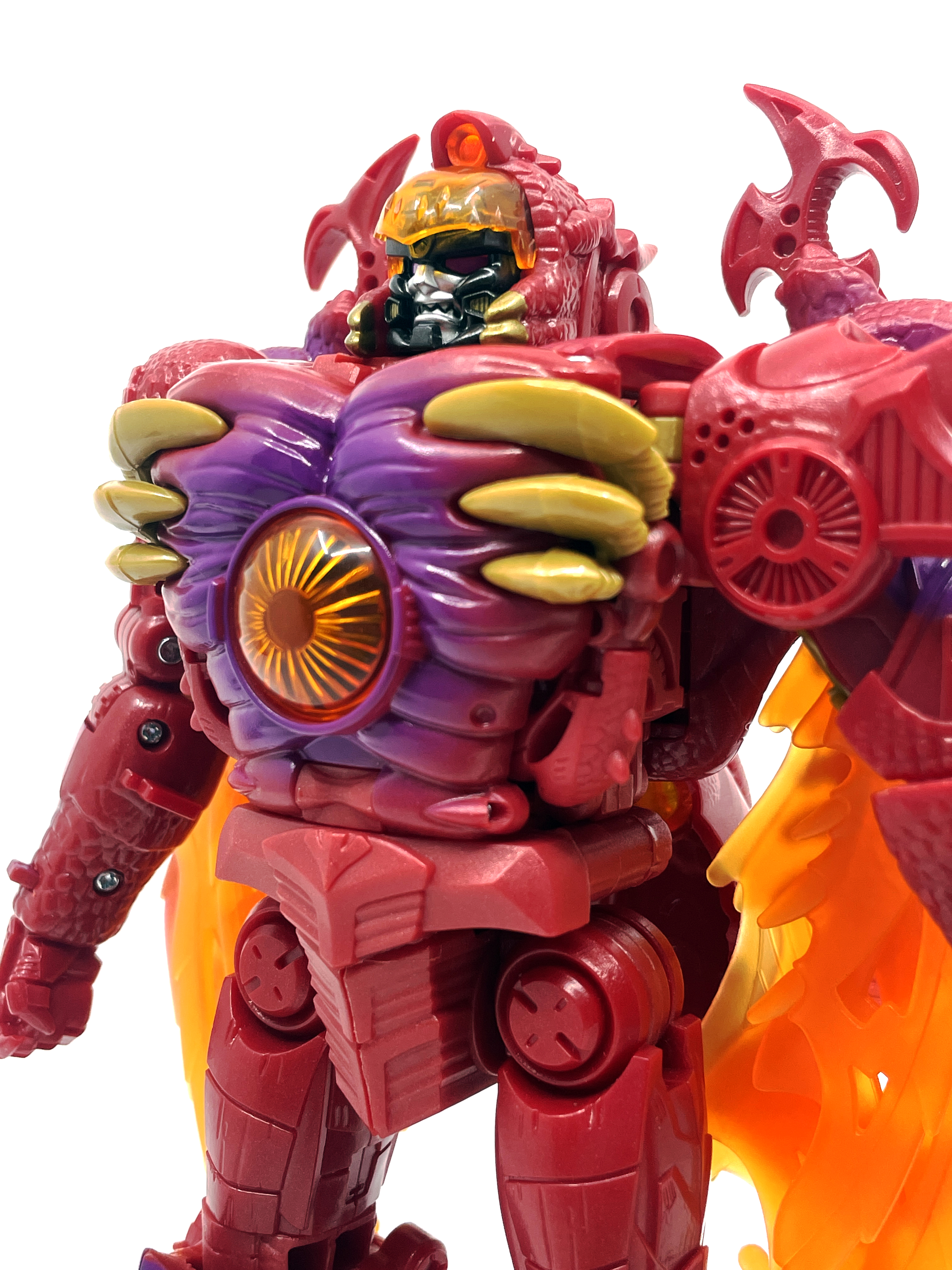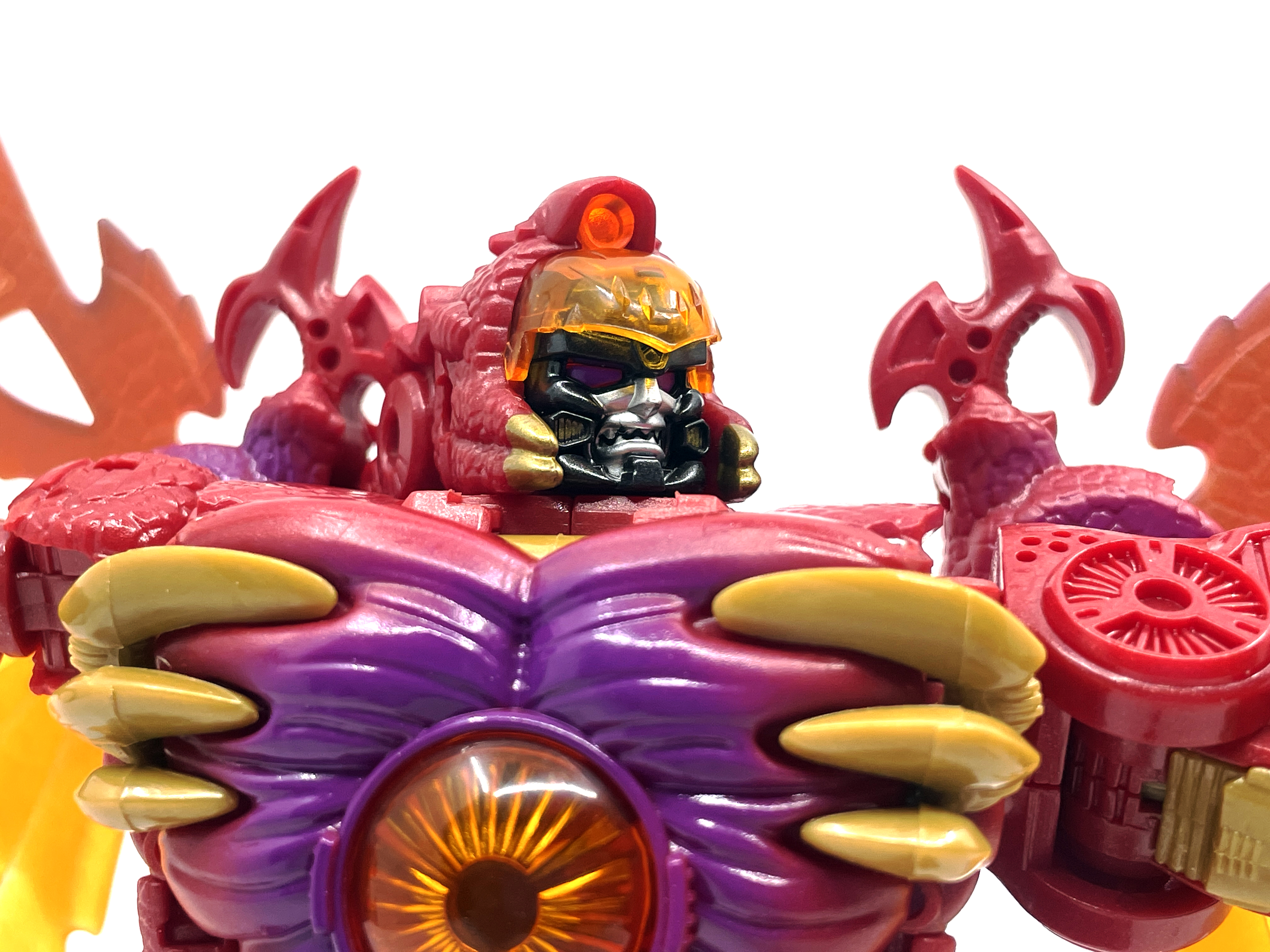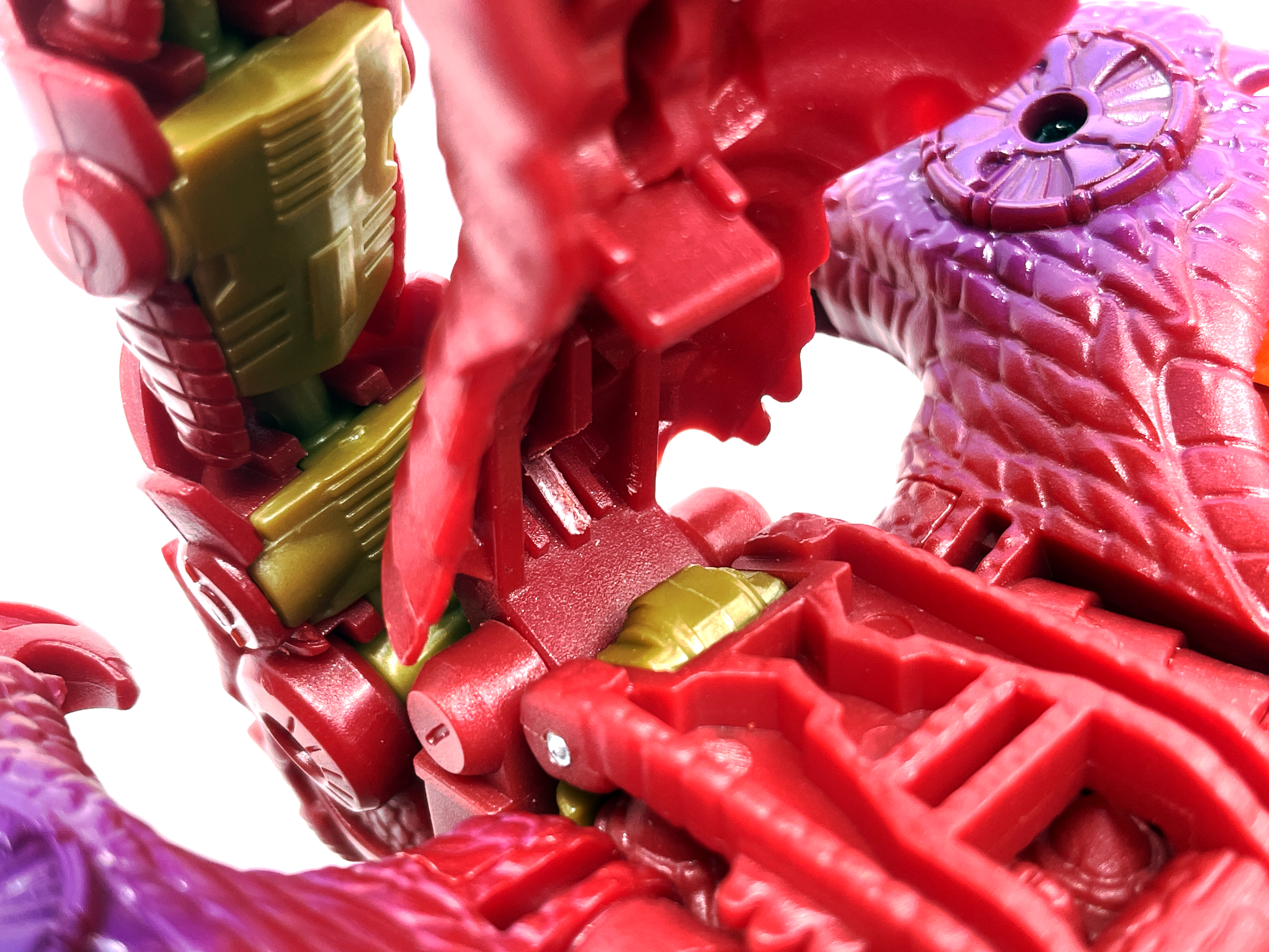 재미난 사실이 있다면, 본래 드래곤 메가트론의 몸체에 달린 발톱 같은 것은 비스트 모드의 앞발과는 아무런 상관 없는 장식 같은 것이었습니다. 레거시 리메이크에선 앞발 디자인을 바꾸면서 이런 식으로 만들었지요. 개인적으론 발톱이 잘 빠지는 탓에 별로라고 생각합니다. 드래곤 팔이 완전히 수납되는 것도 아니라서 상체를 너무 넓게 보이게 하는 것도 있고.