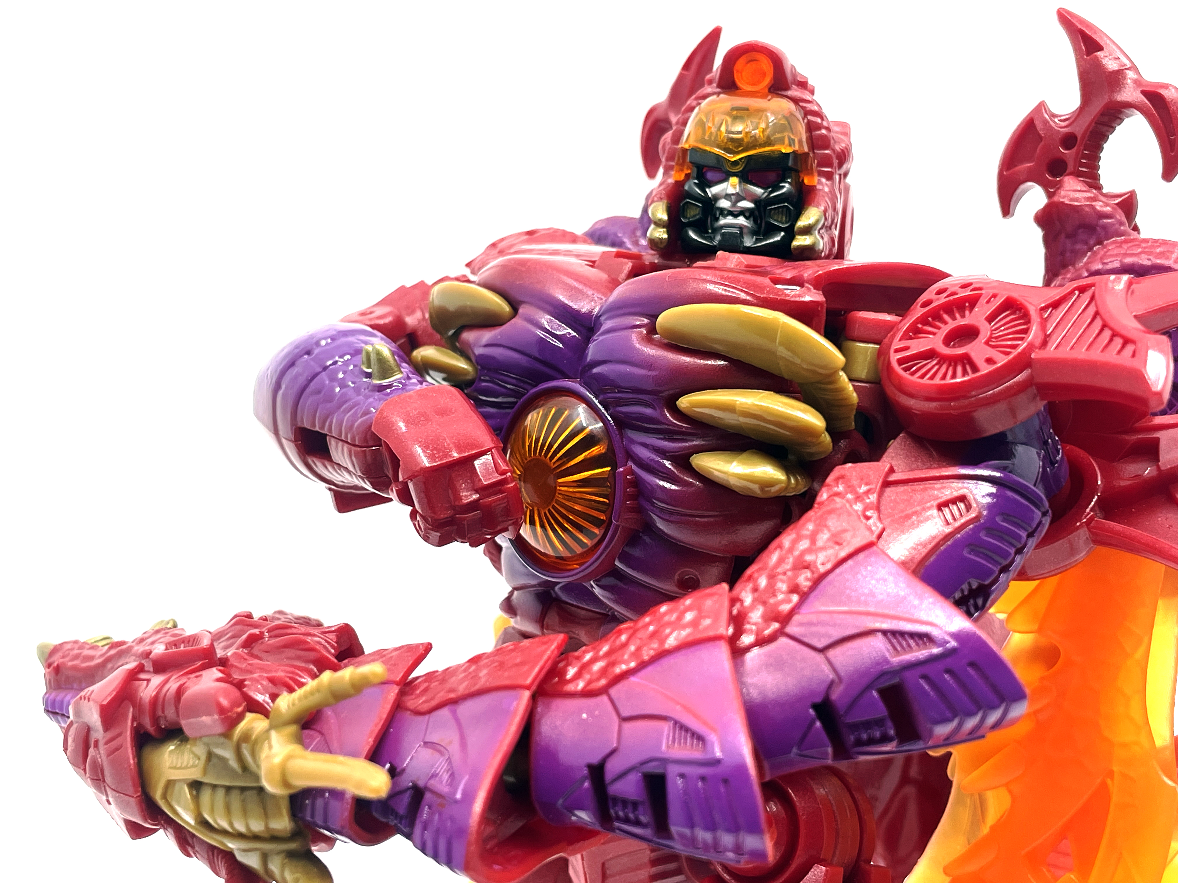 애니메이션 <비스트 워즈 시리즈>의 최종보스인 메가트론의 형태. 비스트 메가트론이 G1 메가트론의 스파크를 자신의 스파크와 융합하면서 (타란튤라스의 배신으로 용암에 빠지면서) 탄생한 메가트론의 궁극의 형태라 할 수 있습니다. 타이거호크 같은 규격외의 존재를 제외하면 사실상 비스트 워즈 시점 최강자.
