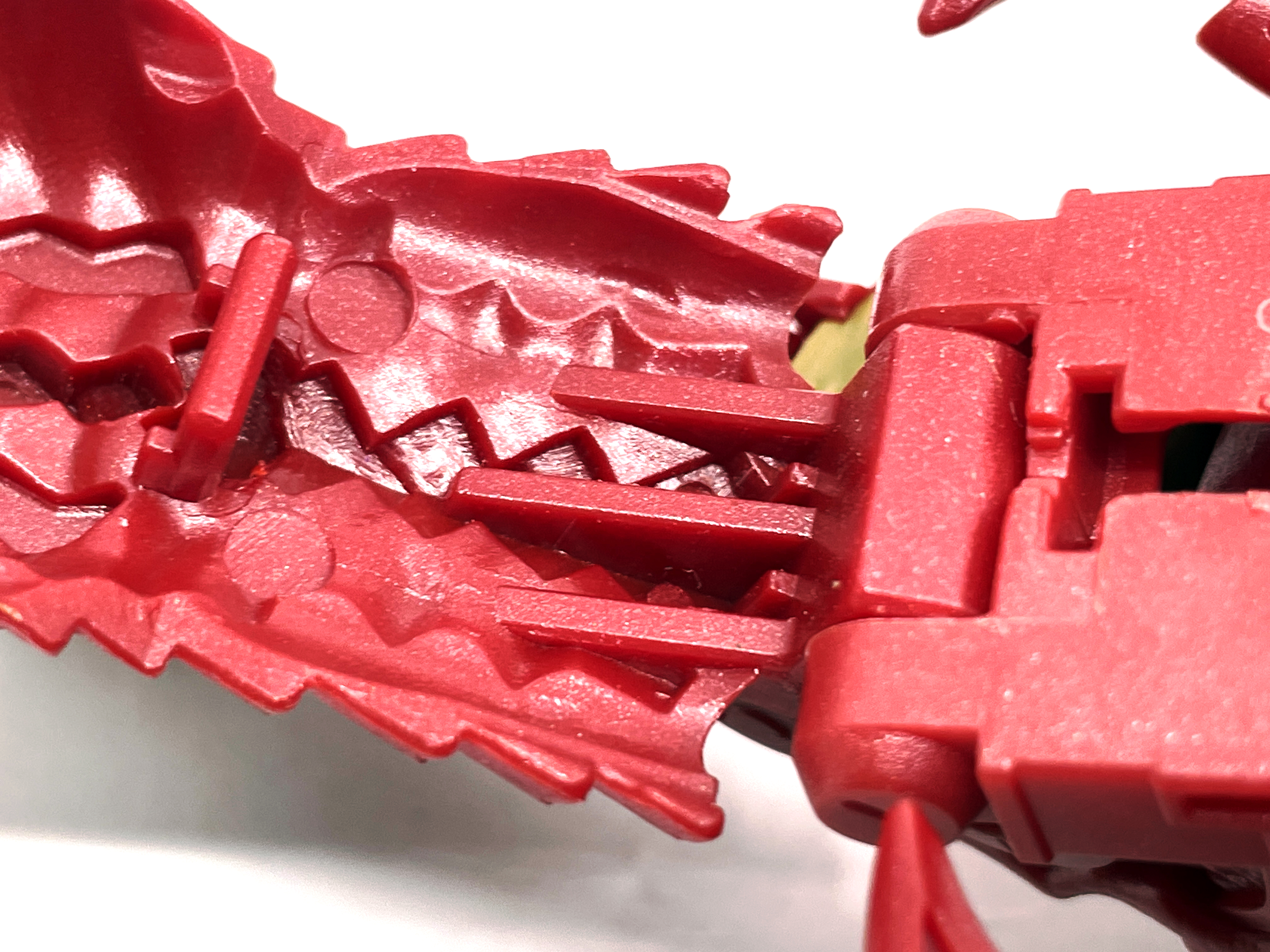 이에 대해서 재미난 사실이 있는데 본래 이 제품은 구판 완구처럼 이를 악물고 있는 표정으로 만들어졌습니다. 하지만 실버 도색이 그 디테일을 묻어버렸고 베트남 공장측에서 이를 해결하기 위해 자체적으로 날카로운 치아를 도색으로 처리했습니다. 이 때문에 도색을 벗기면 도색에 묻힌 치아 디테일이 존재하지요. 나쁘지는 않은 방식이라 생각합니다.