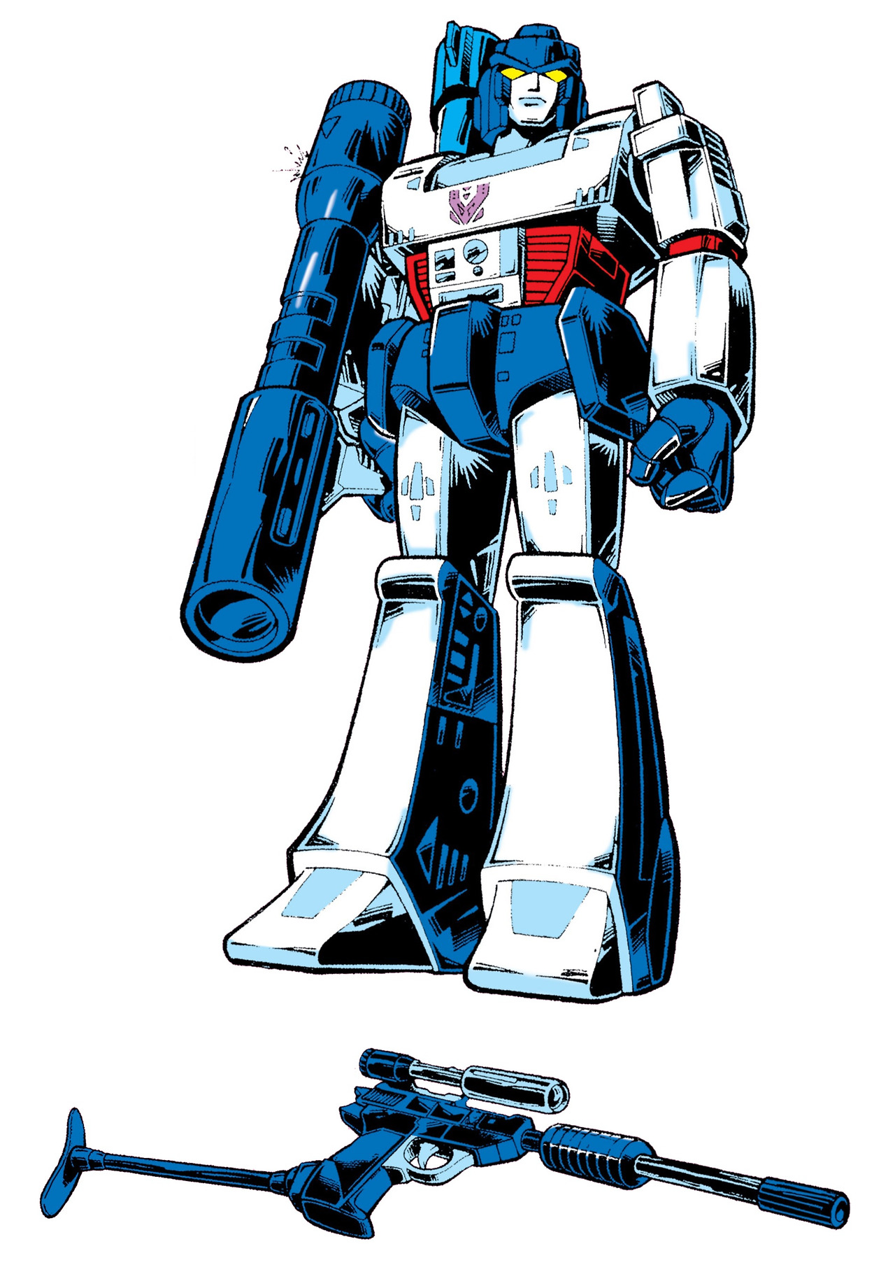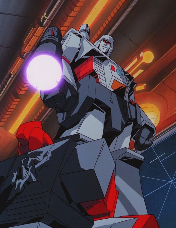여기서 메가트론의 어깨를 보시면, 디셉티콘 휘장의 초창기 디자인이 존재합니다.