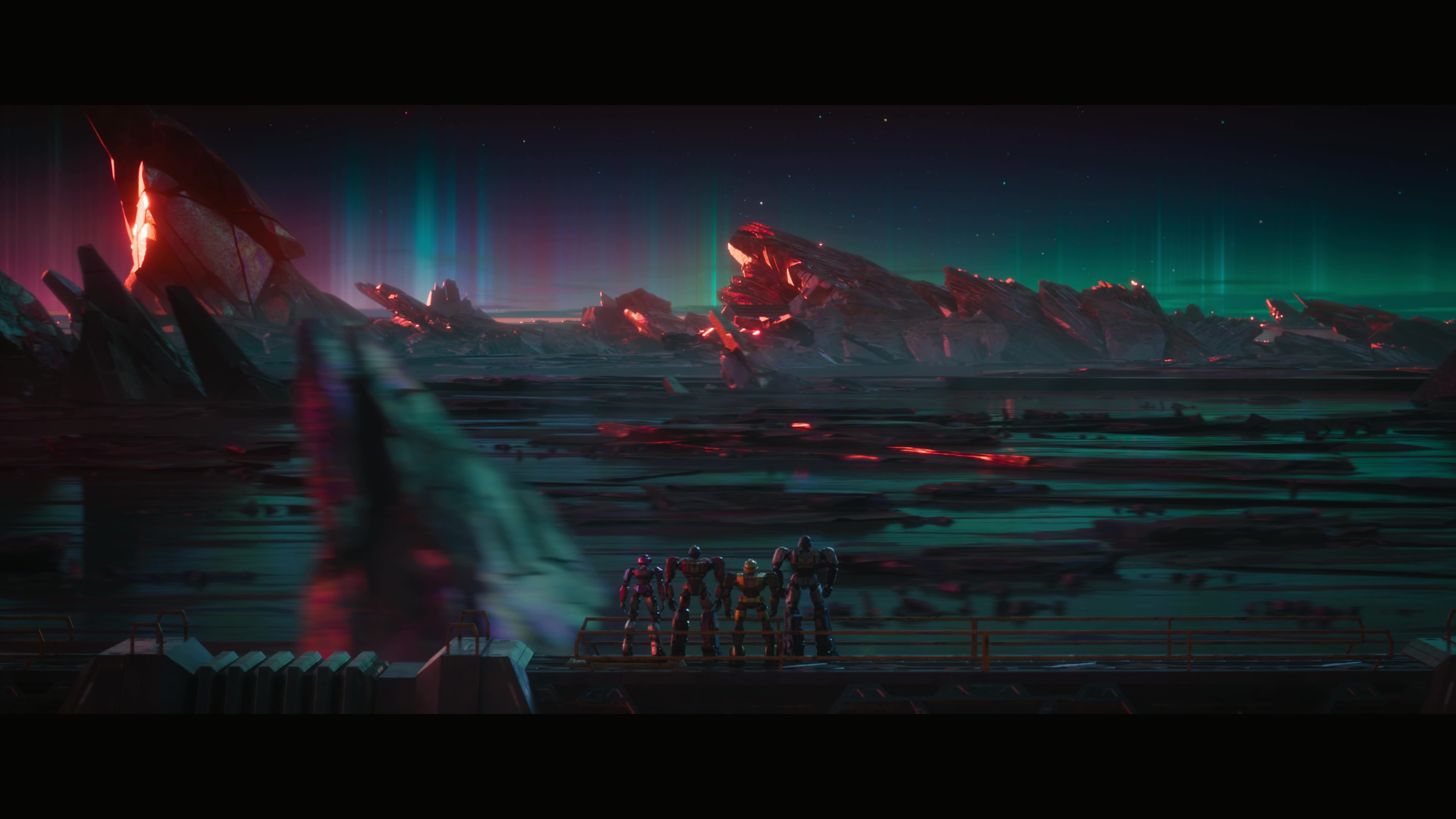 사이버트론 표면에 도착한 4인방.