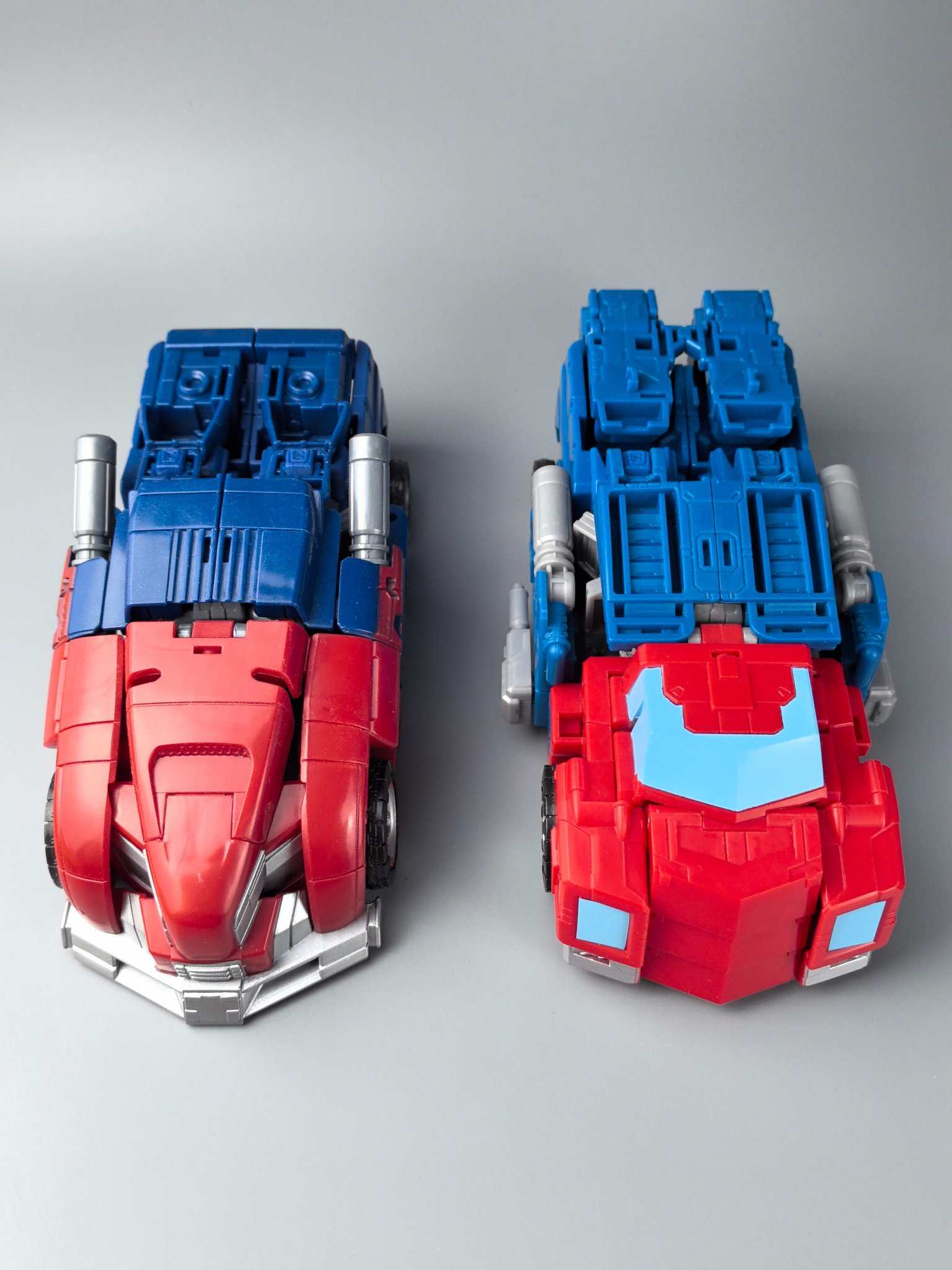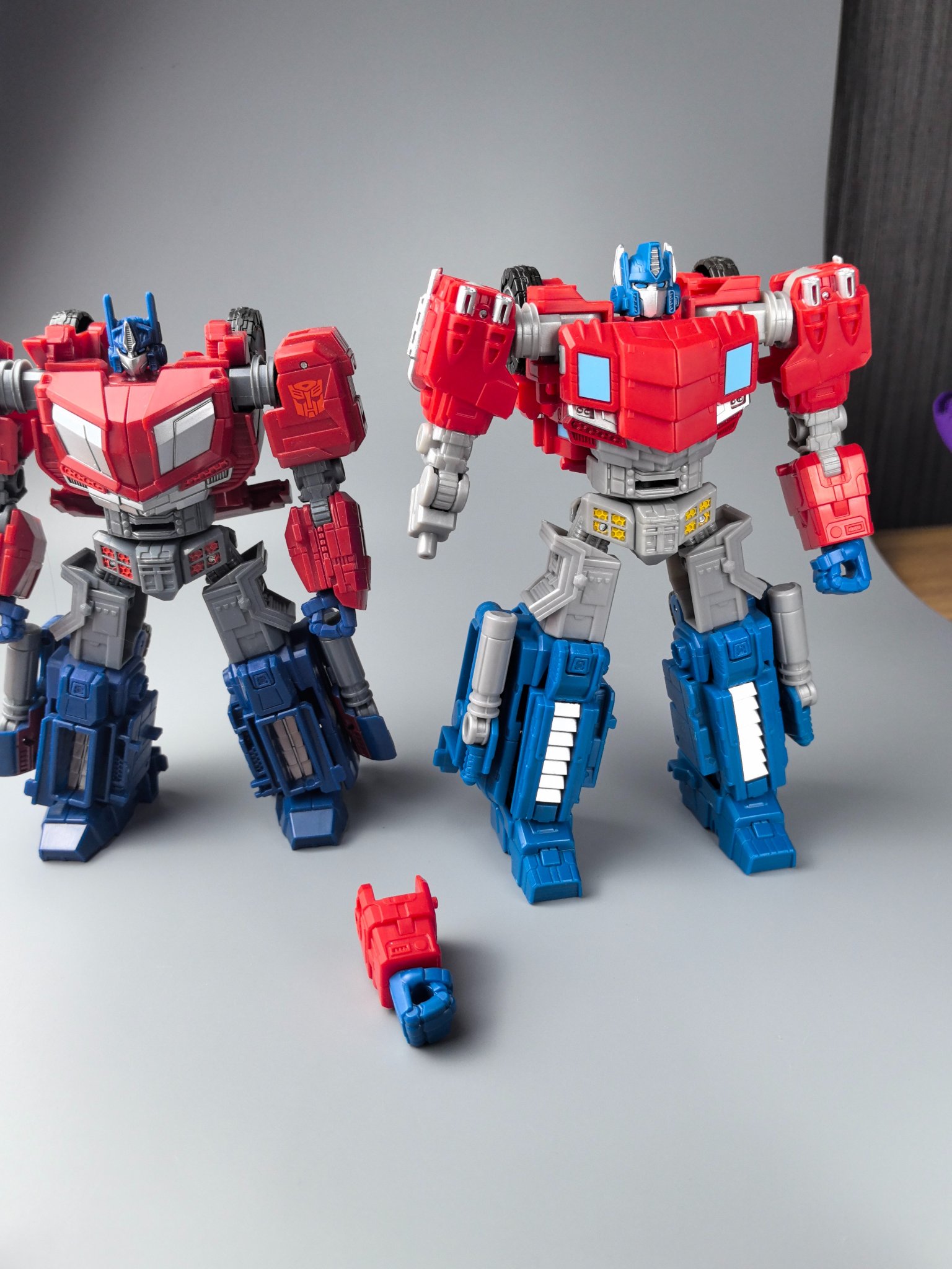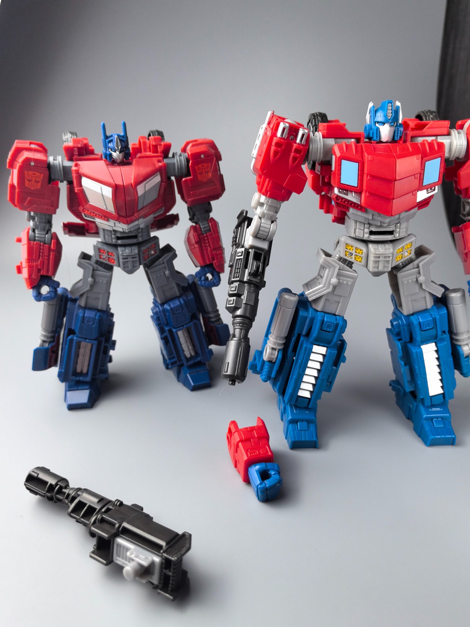 원본 금형인 스튜디오 시리즈 게이머 에디션 옵티머스 프라임과 비교.