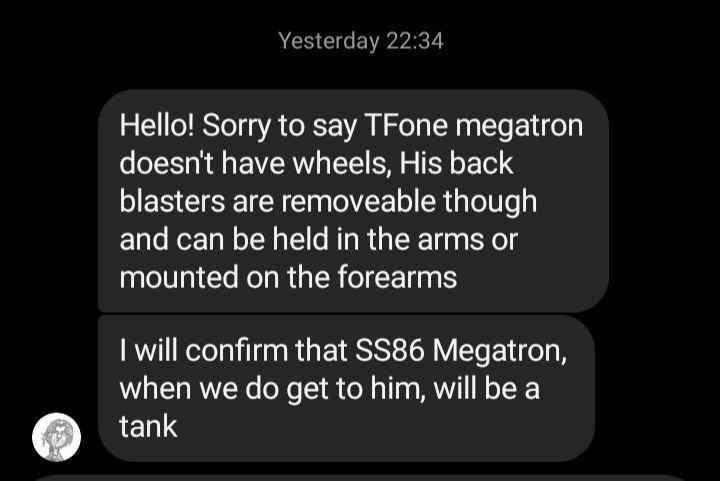 불과 한달 전, G1 애니메이션에서 사용될 뻔한 제트기 메가트론의 디자인이 발견되면서 86 메가트론 완구가 제트기 비클 모드로 나오는 거 아니냐는 설레발이 존재했지만, 해즈브로의 스튜디오 시리즈 완구 디자이너인 에반 브룩스가 개인 DM을 통해 탱크임을 확정시하는 답변을 남겨 사실상 탱크로 확정된 상황입니다.