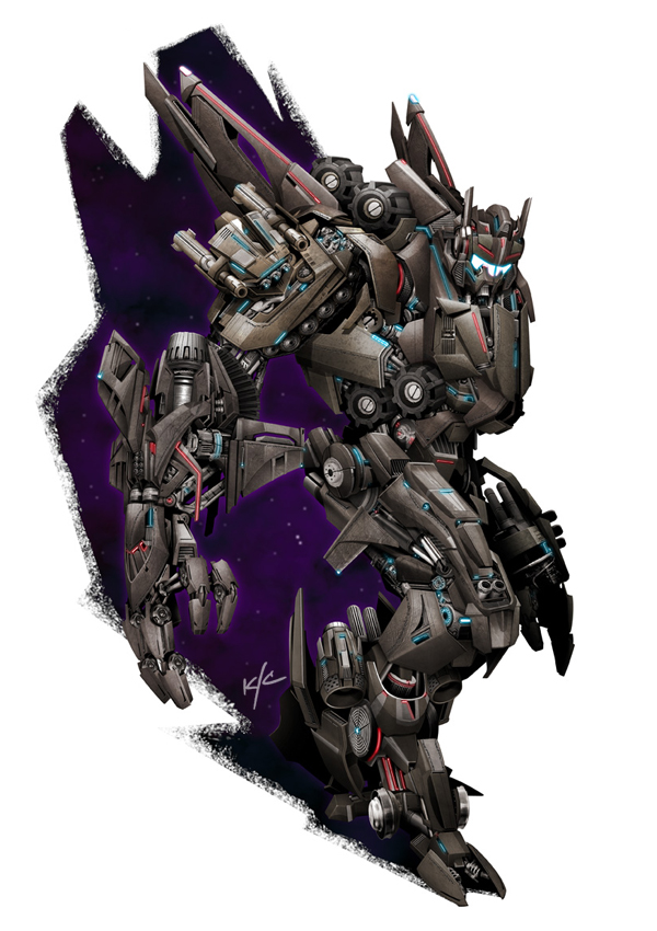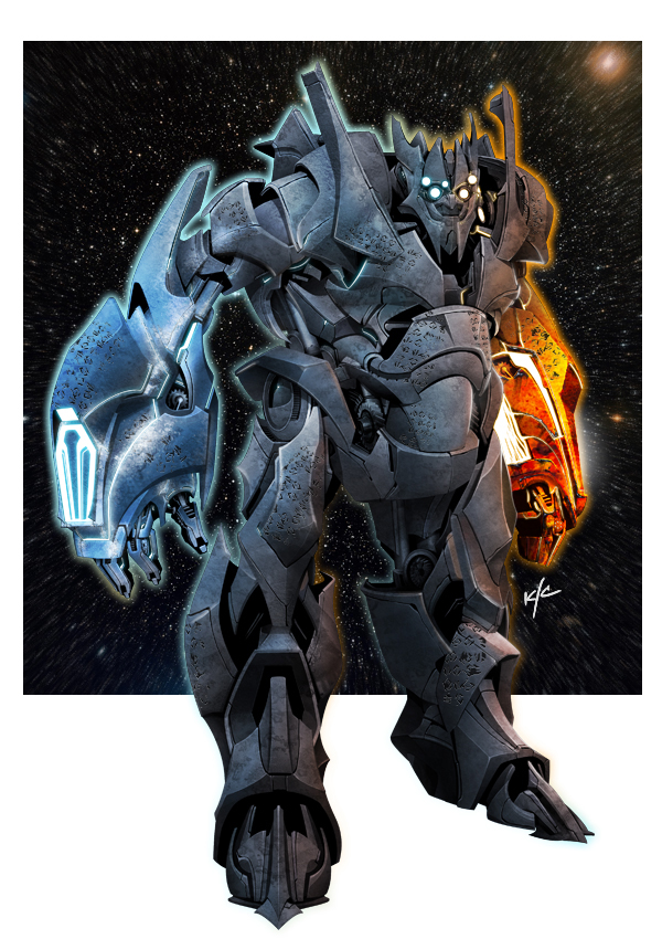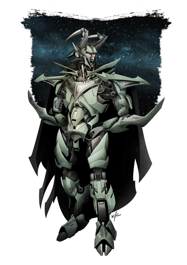 메가트로너스. 최초의 디셉티콘이자 폴른 The Fallen으로 알려진 존재입니다. 강력한 힘을 추구했기에 유니크론을 파괴할 정도로 막강한 레퀴엠 블래스터 Requiem Blaster로 무장했고 끊임없이 힘을 갈망하는 존재로 그려집니다.