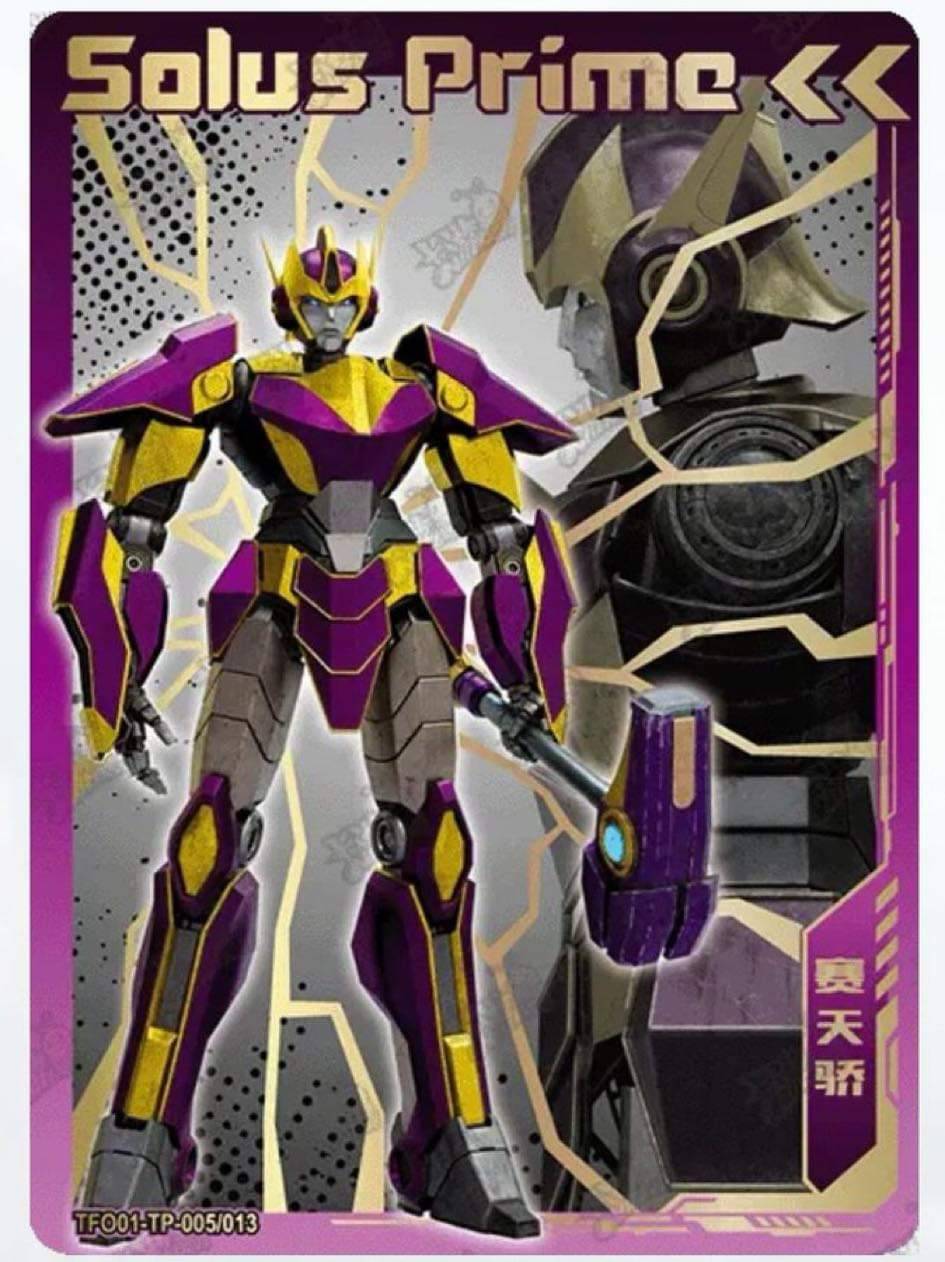 ONE의 솔러스 프라임은 <프라임 워즈 트릴로지> 애니메이션에서 묘사된 솔러스 프라임의 디자인을 상당히 참고한 형상입니다.