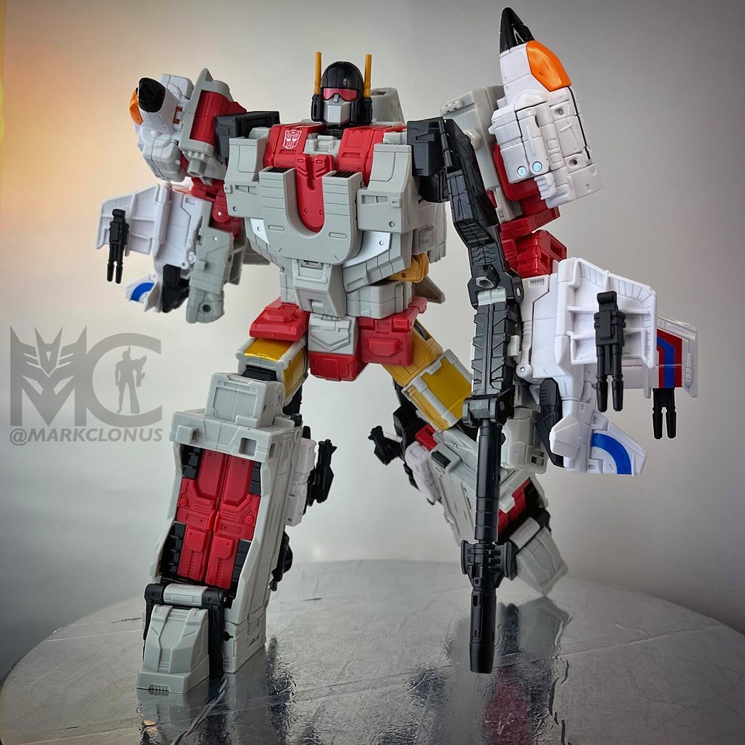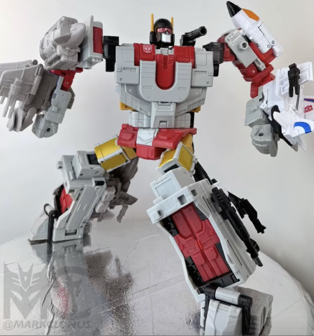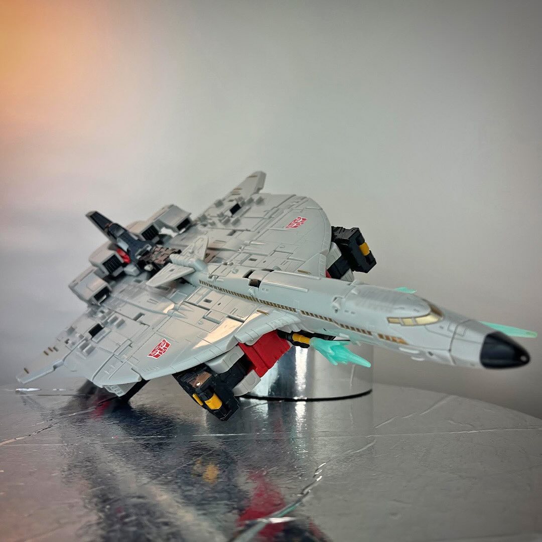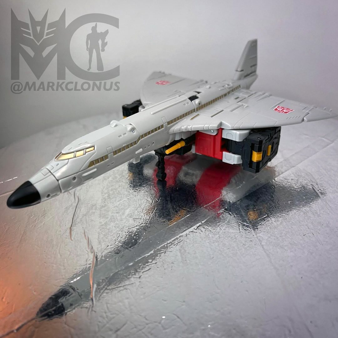 큰 제트기는 앞쪽 노즈를 기울일 수 있는 기능을 갖추고 있어 실제 제트기에 더욱 가까운 디테일을 보여줄 뿐 아니라 G1 애니메이션 시리즈의 변형 시퀀스를 오마주하고 있습니다.
