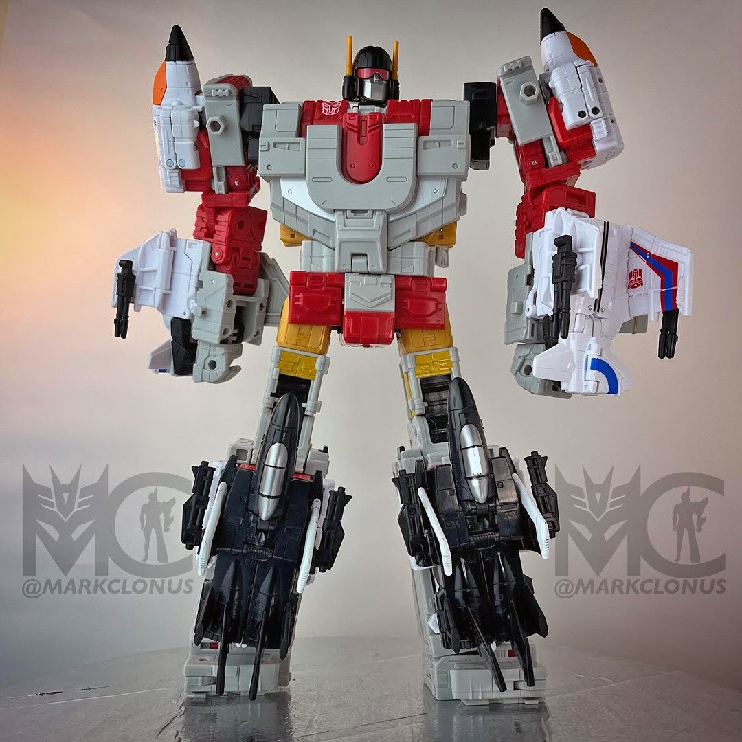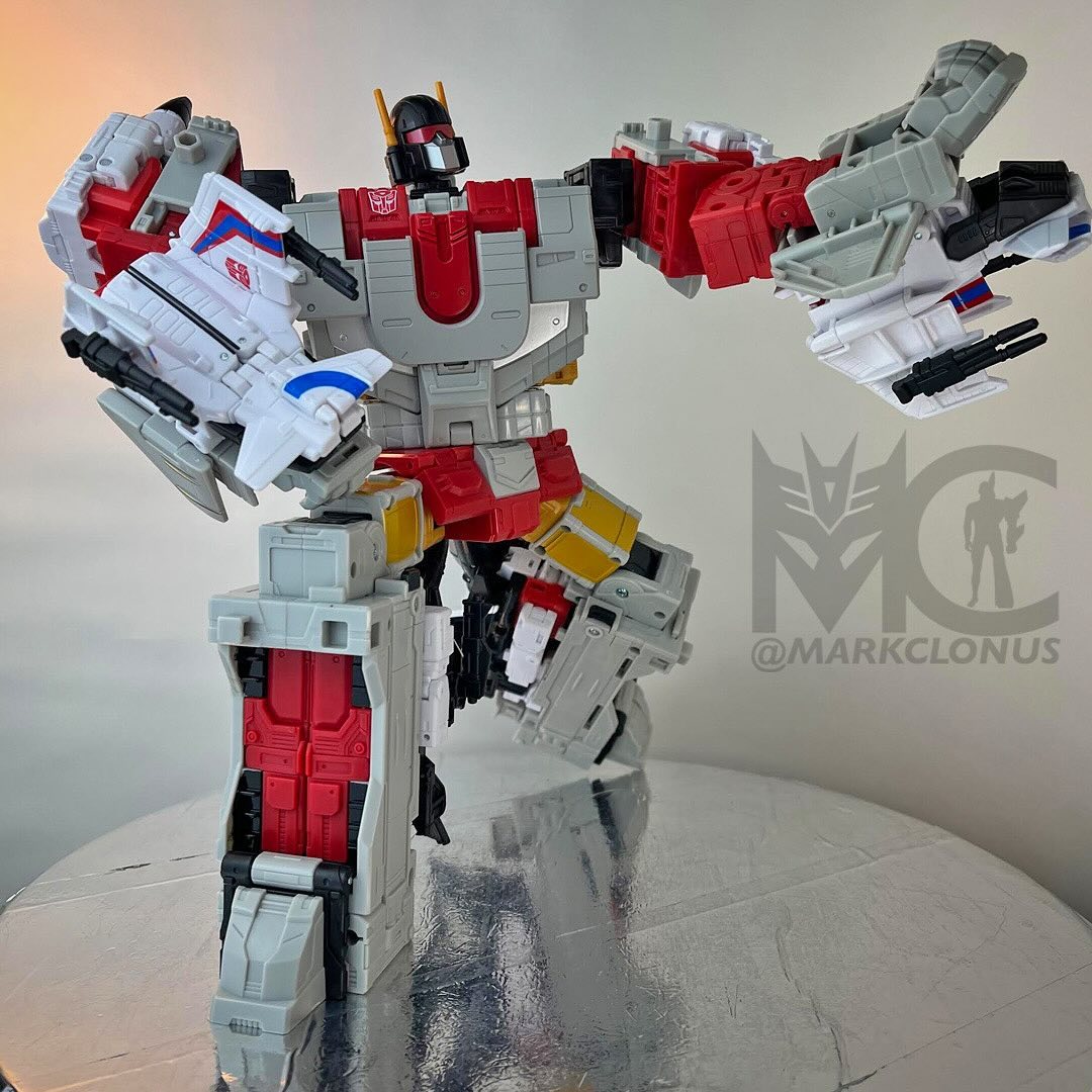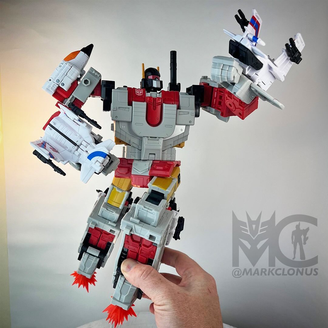 큰 제트기는 앞쪽 노즈를 기울일 수 있는 기능을 갖추고 있어 실제 제트기에 더욱 가까운 디테일을 보여줄 뿐 아니라 G1 애니메이션 시리즈의 변형 시퀀스를 오마주하고 있습니다.