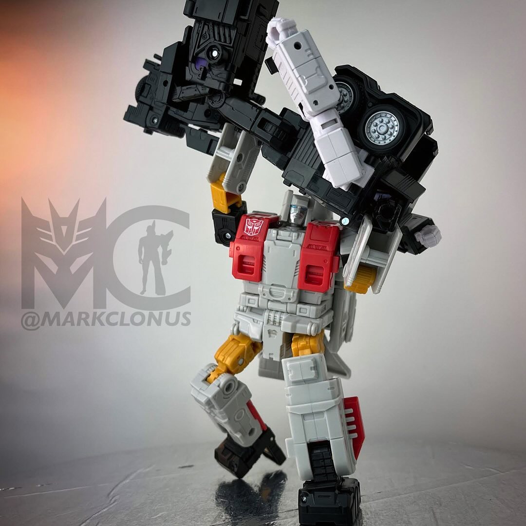 그럼 이제 제 추억담은 그만하고, 스크램블 시티 기능의 부활로 넘어가 보죠! 이번 뼈대 시스템은 메나소어와 비슷한 점이 많아서 교체 가능한 기능을 유지하는 게 중요하다고 생각했어요. 그리고 하스이 상이 천재답게 그 기능을 유지하면서도 다른 요소들을 조정해서 이 포즈 가능한 거인을 스턴티콘 컴바이너 숙적과의 멋진 대결을 준비할 수 있게 만들었습니다.