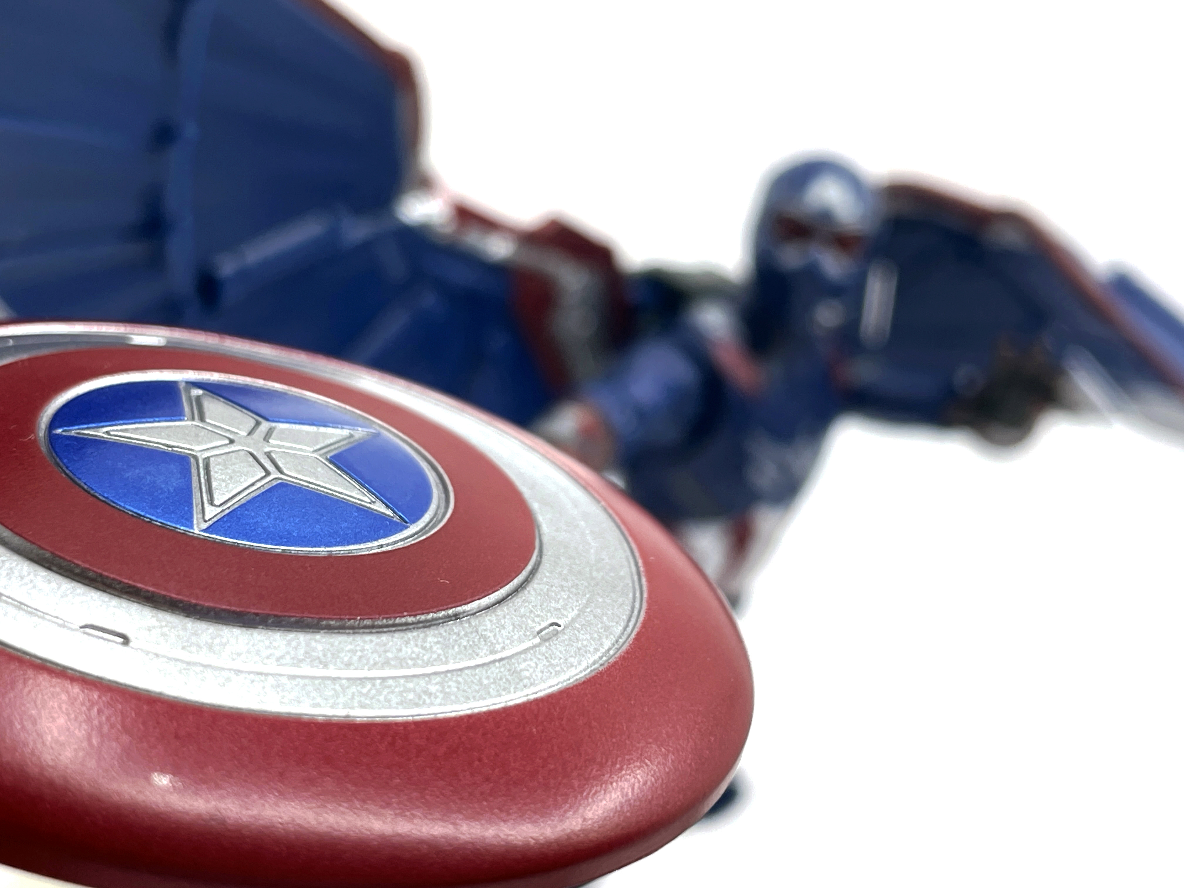 영화 출시 전에 구입할 기회가 있어서 미리 구입했습니다. 일전에 <팔콘과 윈터 솔져> 기반의 캡틴 아메리카 제품을 구입했기에 넘길까 했지만, 샘이 새로운 캡틴 아메리카로서 영화 데뷔를 함과 동시에 멋진 슈트를 입고 나타났다는 점에 주목해 구입하지 않을 수 없었습니다. 그만큼 만족스러운 제품입니다.