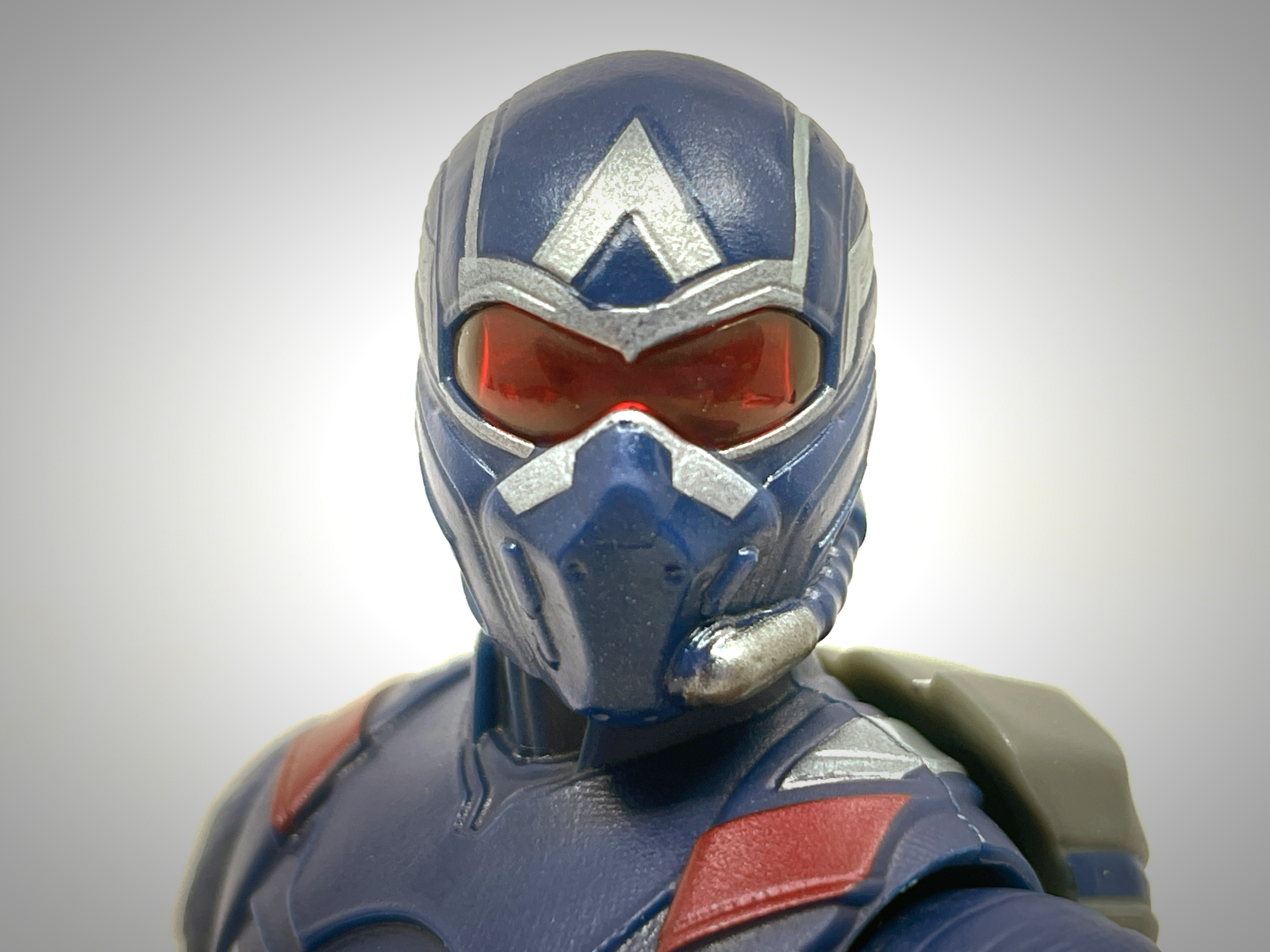 고글 안에 눈이 보일 정도로 정밀한 제품입니다. 기존 <팔콘과 윈터 솔져>에서 나온 헤어 밴드를 더 이상 하지 않는데, 앤서니 매키 본인의 인터뷰에서 당시 고글에 땀이 차는 바람에 괴로웠다고 밝혔고 이런 점을 개선하기 위해 '팔콘' 시절처럼 평소엔 고글만 쓰는 형태로 돌아왔습니다.