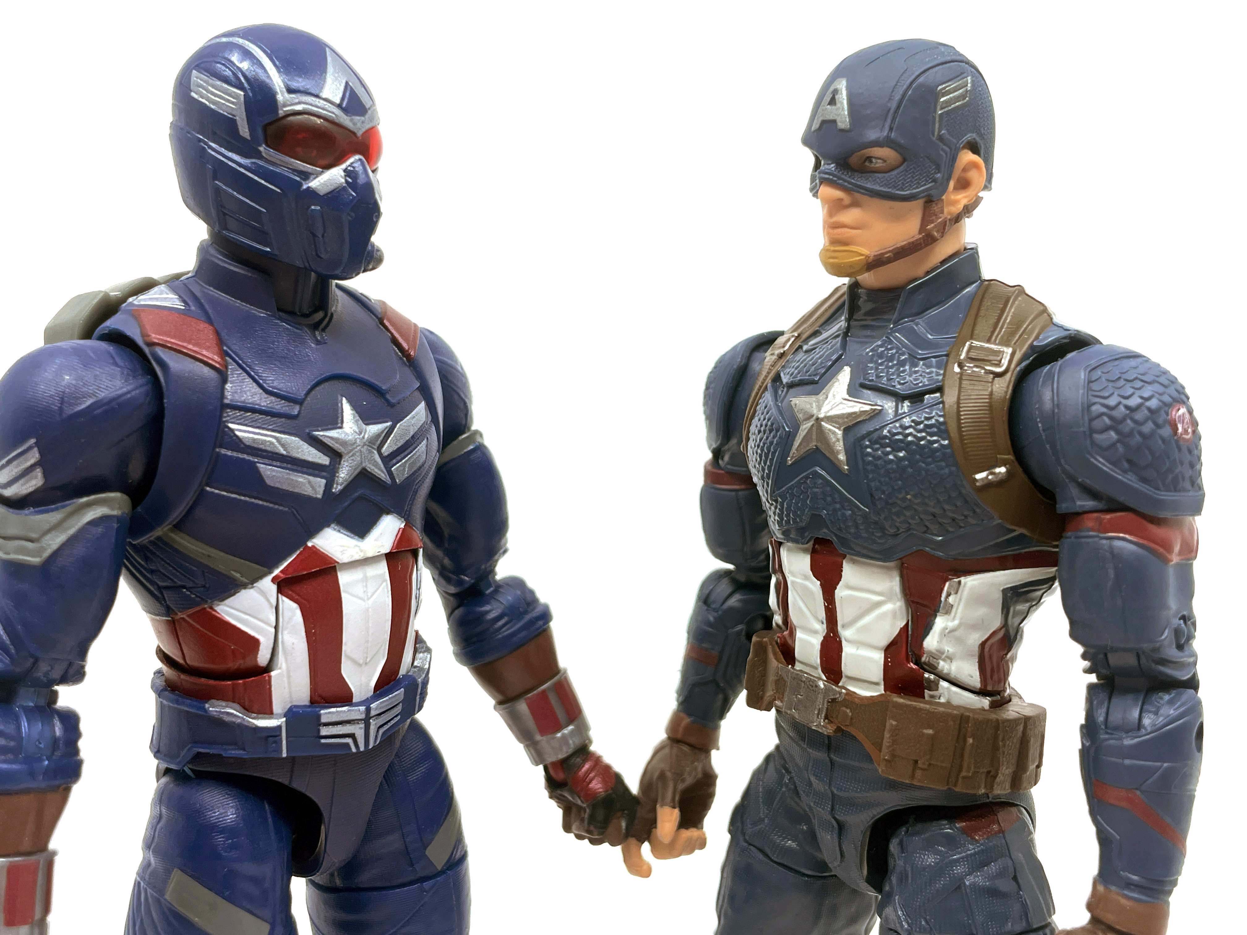 영화 <어벤져스: 엔드게임> 기반의 스티브 로저스 캡틴 아메리카 제품과 비교.