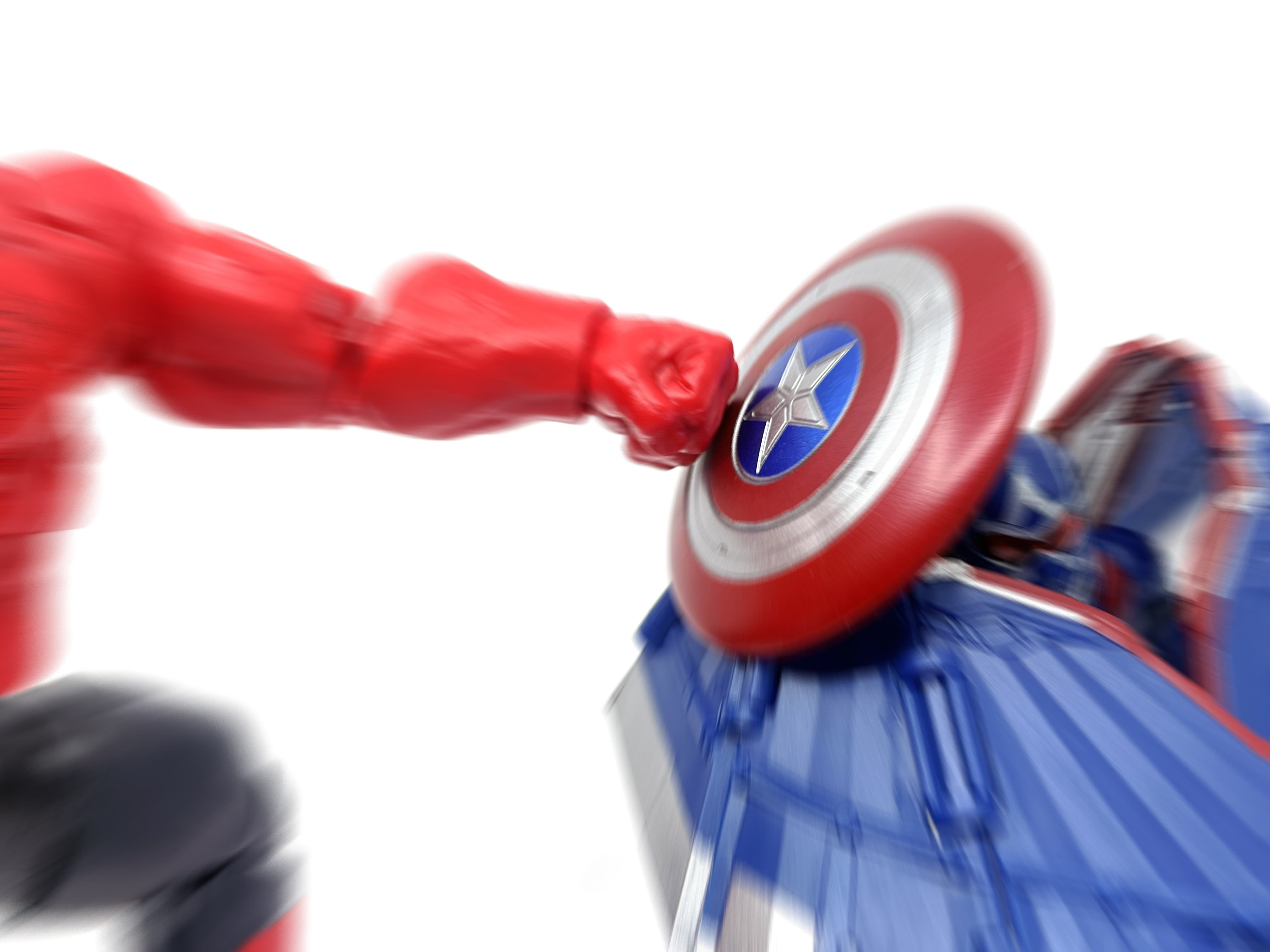 방패는 물론이고 날개까지 사용해 레드 헐크의 주먹을 막는 샘 윌슨.