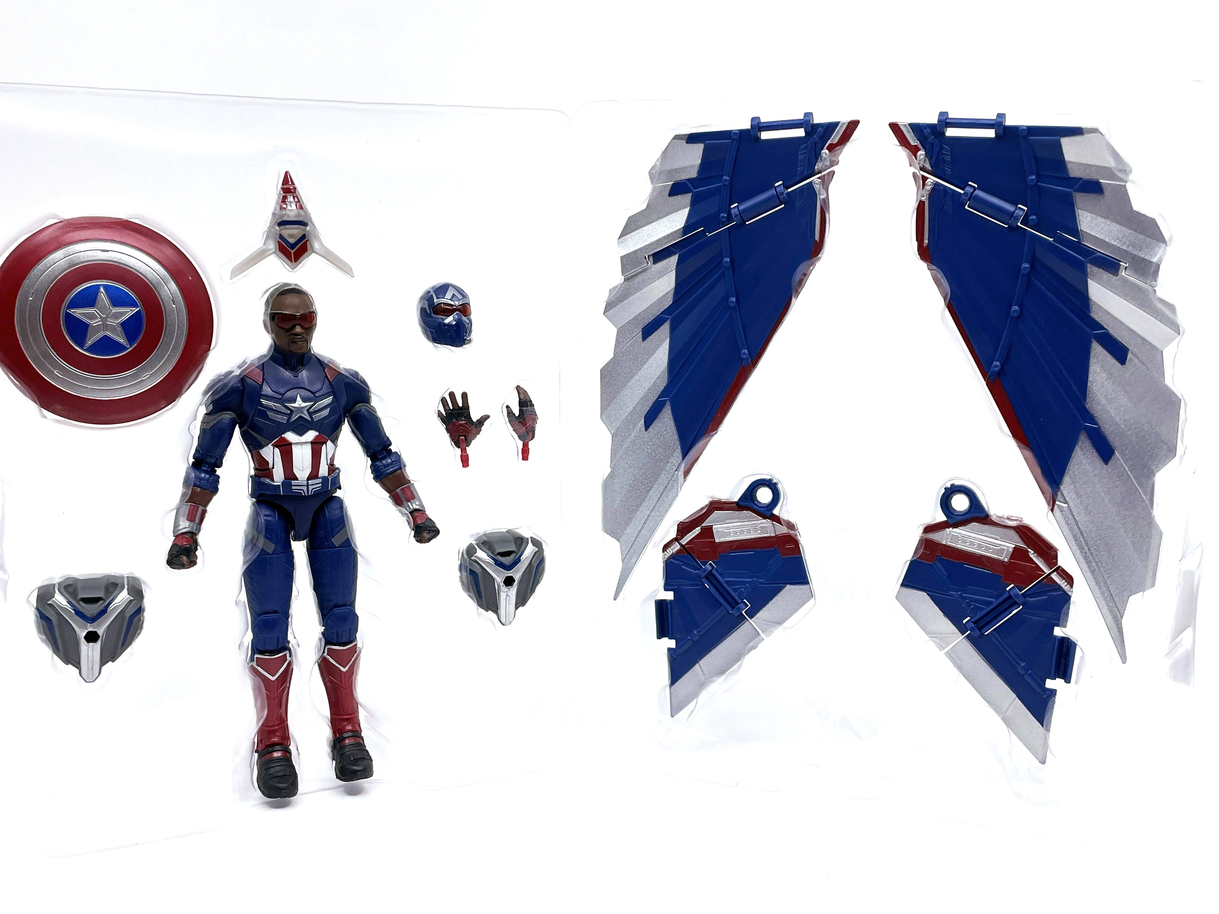 전체적으로 기존 <팔콘과 윈터 솔져> 기반의 샘 윌슨 캡틴 아메리카의 개선판이라 할 수 있습니다. <팔콘과 윈터 솔져> 당시에 날개가 BAF로 나와서 모든 웨이브 제품을 구입해야하는 번거로운 일이 있었지만, 이번 제품은 본체와 날개를 비롯한 액세서리가 전부 동봉된 상태라 하나만 구입해도 되는 제품입니다.
