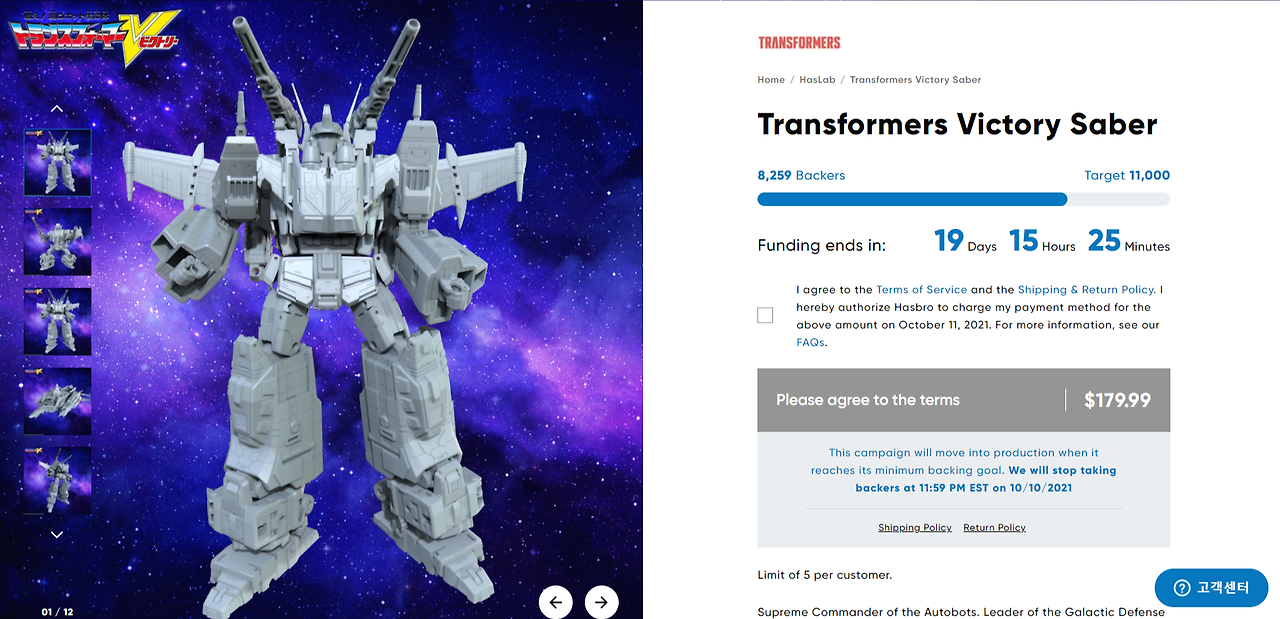 해즈랩 트랜스포머 제품인 라이오카이저가 생산 최소 수량인 1만을 넘기면서 정식 생산이 결정되었습니다. 펀딩을 게시한지 약 10일만에 목표치를 달성한 셈이고 북미/캐나다에서 지원한 수량만으로도 생산 목표를 달성할 수 있게 됐습니다.