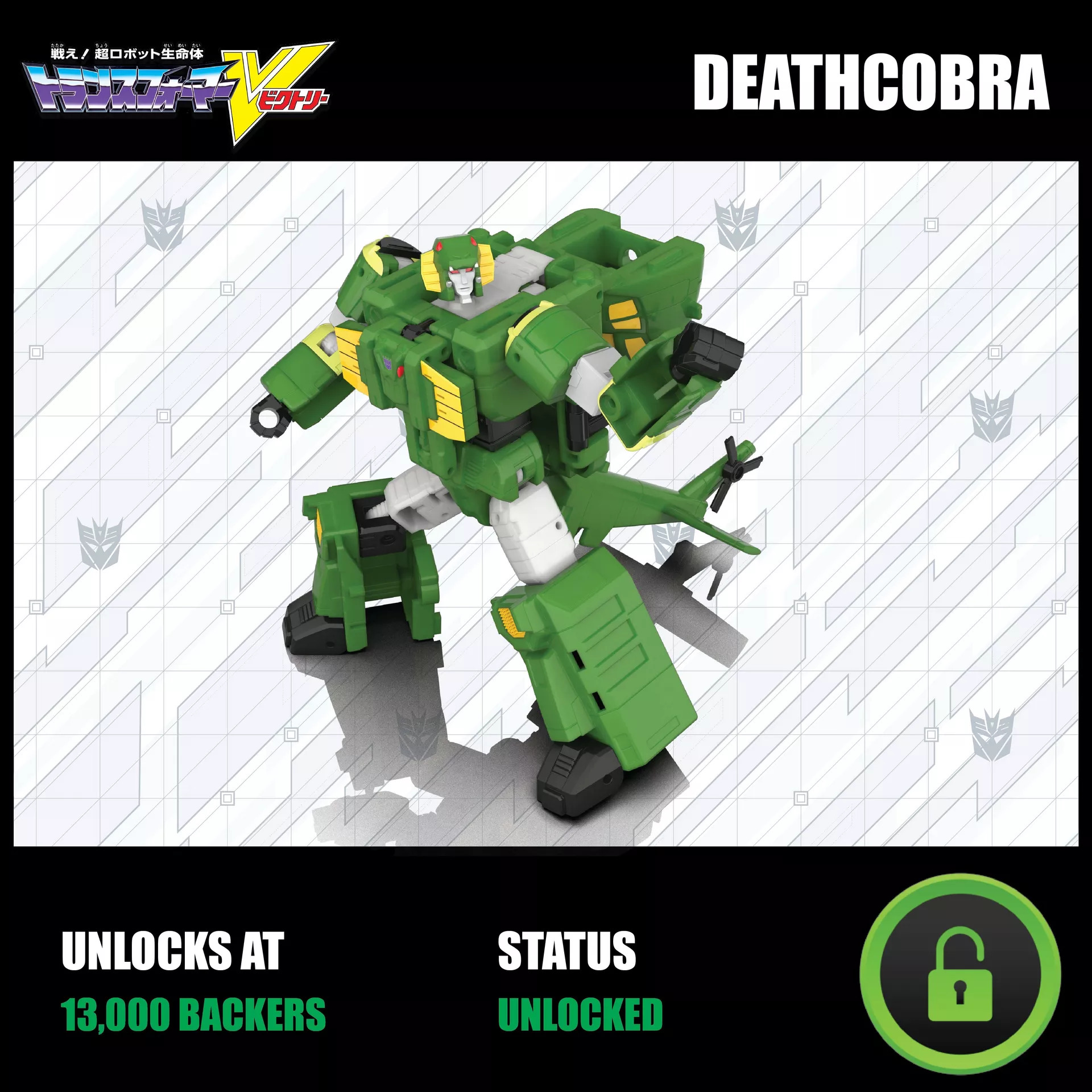 전 세계 팬들의 뜨거운 성원 덕분에 무자비한 데스코브라가 전투에 합류합니다! 이번 해즈랩 프로젝트를 후원한 모든 분께 이 강력한 디셉티콘이 제공됩니다. 디셉티콘 군단이 그 어느 때보다 강력해졌습니다.