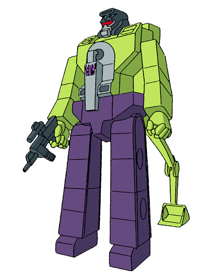 컨스트럭티콘의 마지막 타자인 굴착기로 변신하는 스캐빈저.