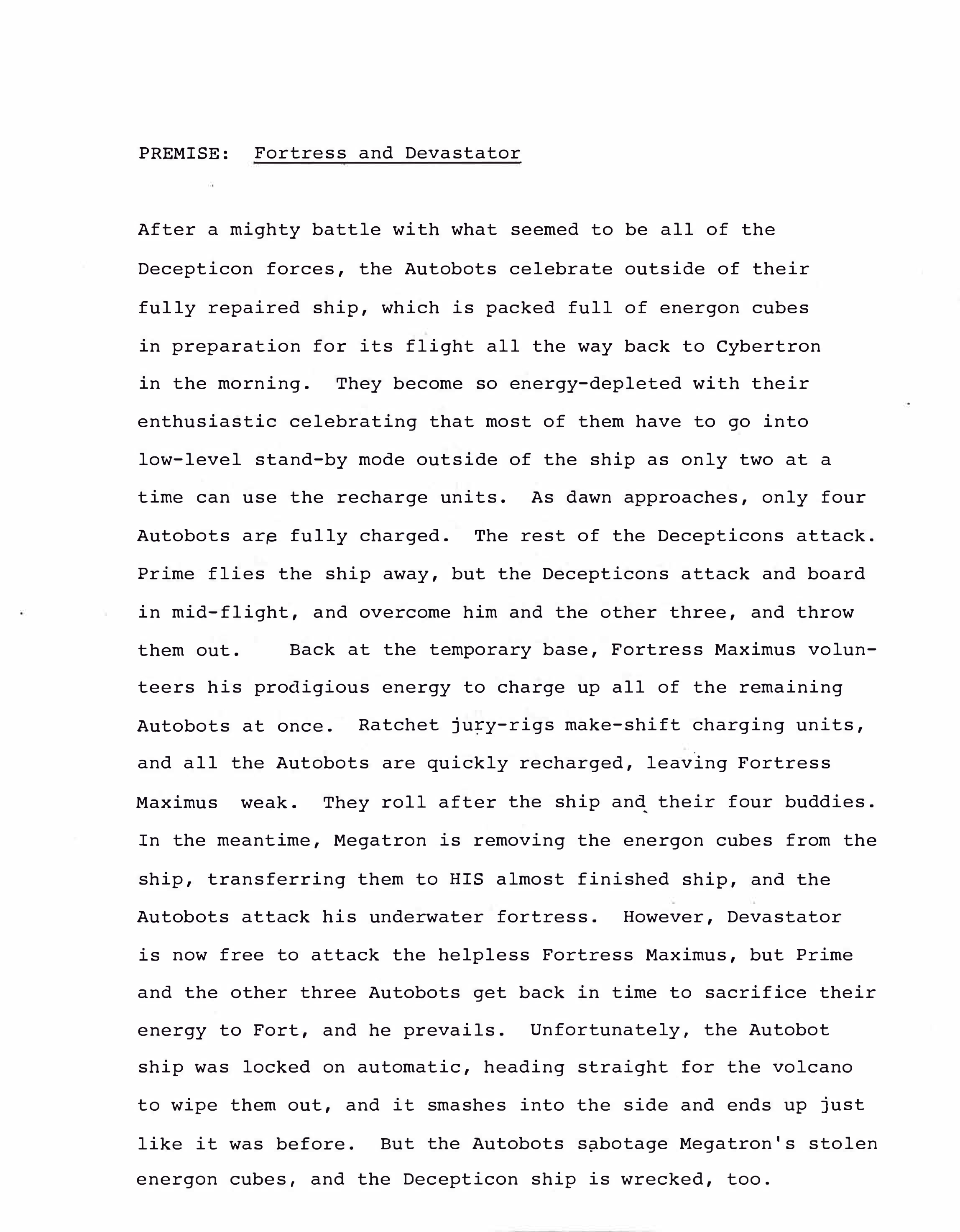 전제(PREMISE): 포트리스와 데바스테이터 (Fortress and Devastator)