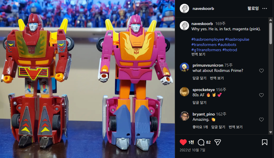 사실 86 핫 로드는 원래 마젠타 배색으로 나올 예정이었습니다. 스튜디오 시리즈의 완구 디자인을 담당하는 해즈브로의 에반 브룩스 Evan Brooks는 캐릭터의 고증을 중시하는 완구 디자이너라 처음 핫 로드를 만들 때부터 마젠타 배색으로 디자인을 했었습니다. 하지만, 해즈브로 상층부에선 이에 대해 부정적이었는데, 이유는 기존 핫 로드 완구들이 전부 빨강으로 나왔기 때문. 그래서 86 핫로드는 구판 완구들처럼 빨간 사출색으로 출시되었으나, 레트로 라인으로나마 마젠타 색이 재현되었습니다.