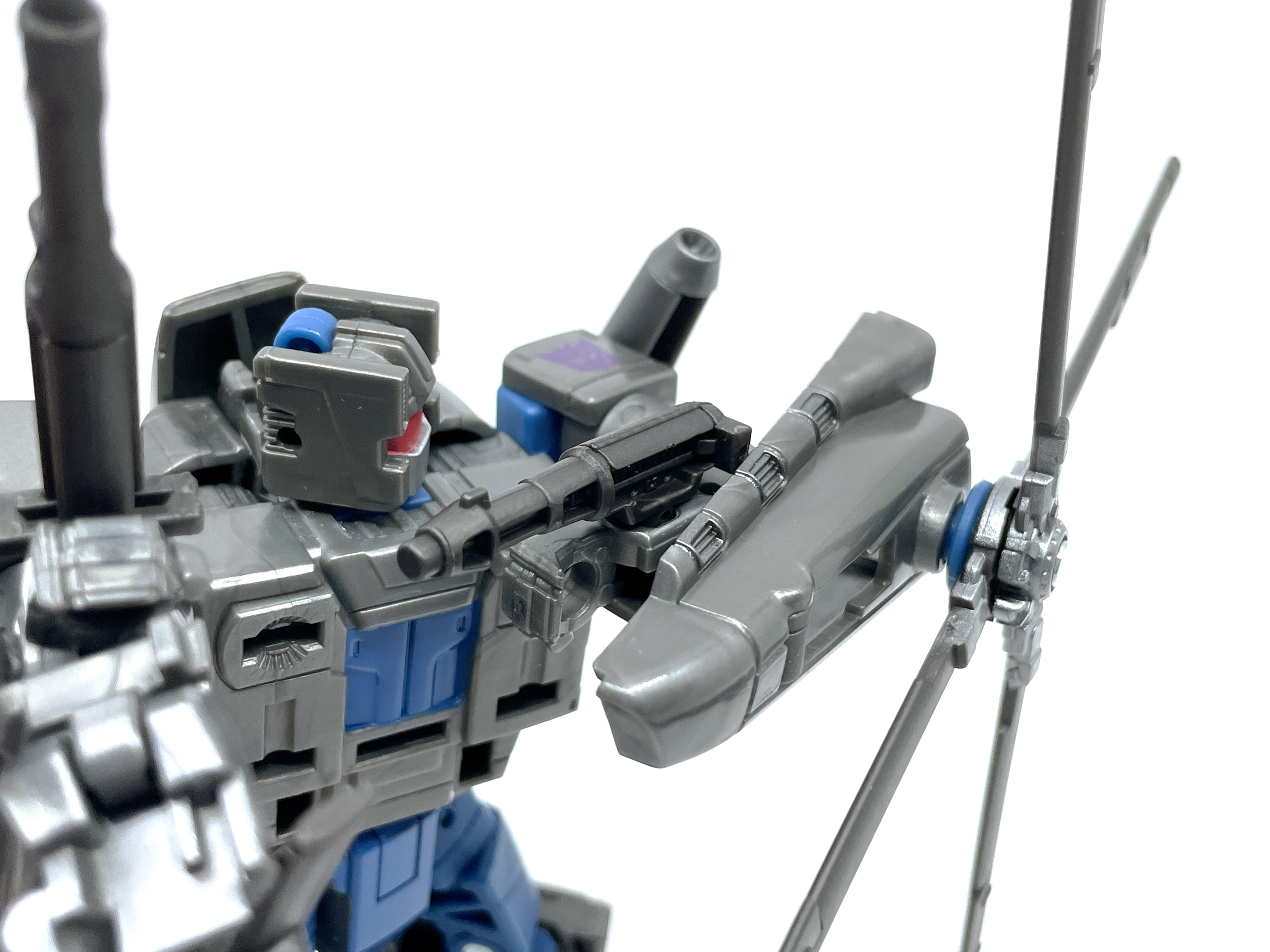 늘 그렇듯이 이번 제품 역시 애니메이션의 모습을 기준으로 만들어졌습니다. 변신 방식의 차이로 인해, 다리의 헬기 머리 배치가 달라지긴 했지만, 전반적인 외형은 애니메이션의 모습을 최대한 재현했습니다.