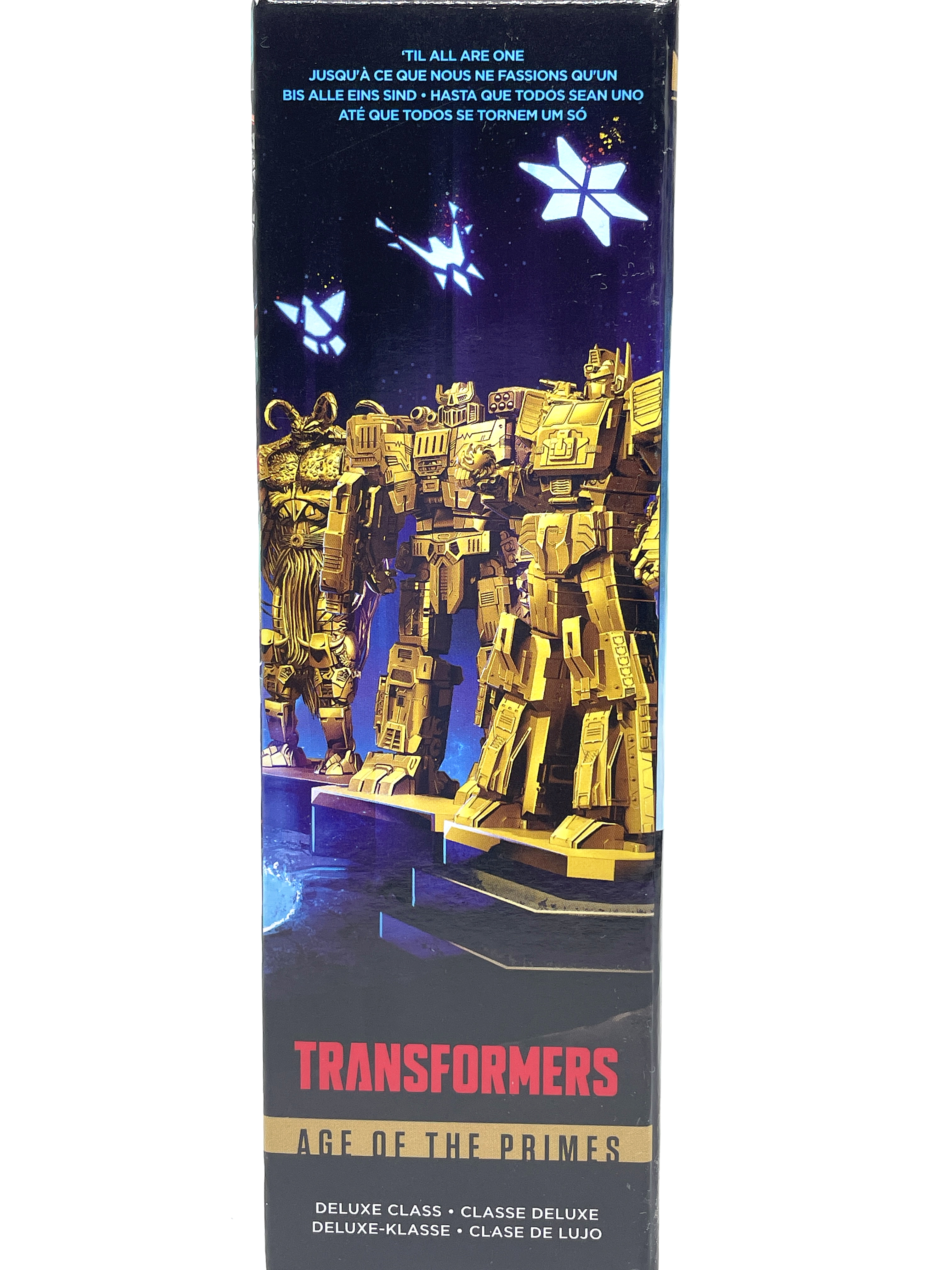 이번 <에이지 오브 더 프라임>의 볼텍스는 13인 중 메가트로너스의 후손으로 설정되었습니다. 컴뱃티콘들의 파괴적인 성향은 메가트로너스의 에너존 혈통에서 근거한 것으로 설정한 느낌입니다. 그래서 패키지에선 메가트로너스의 동상이 보이는 배치로 인쇄됐습니다.