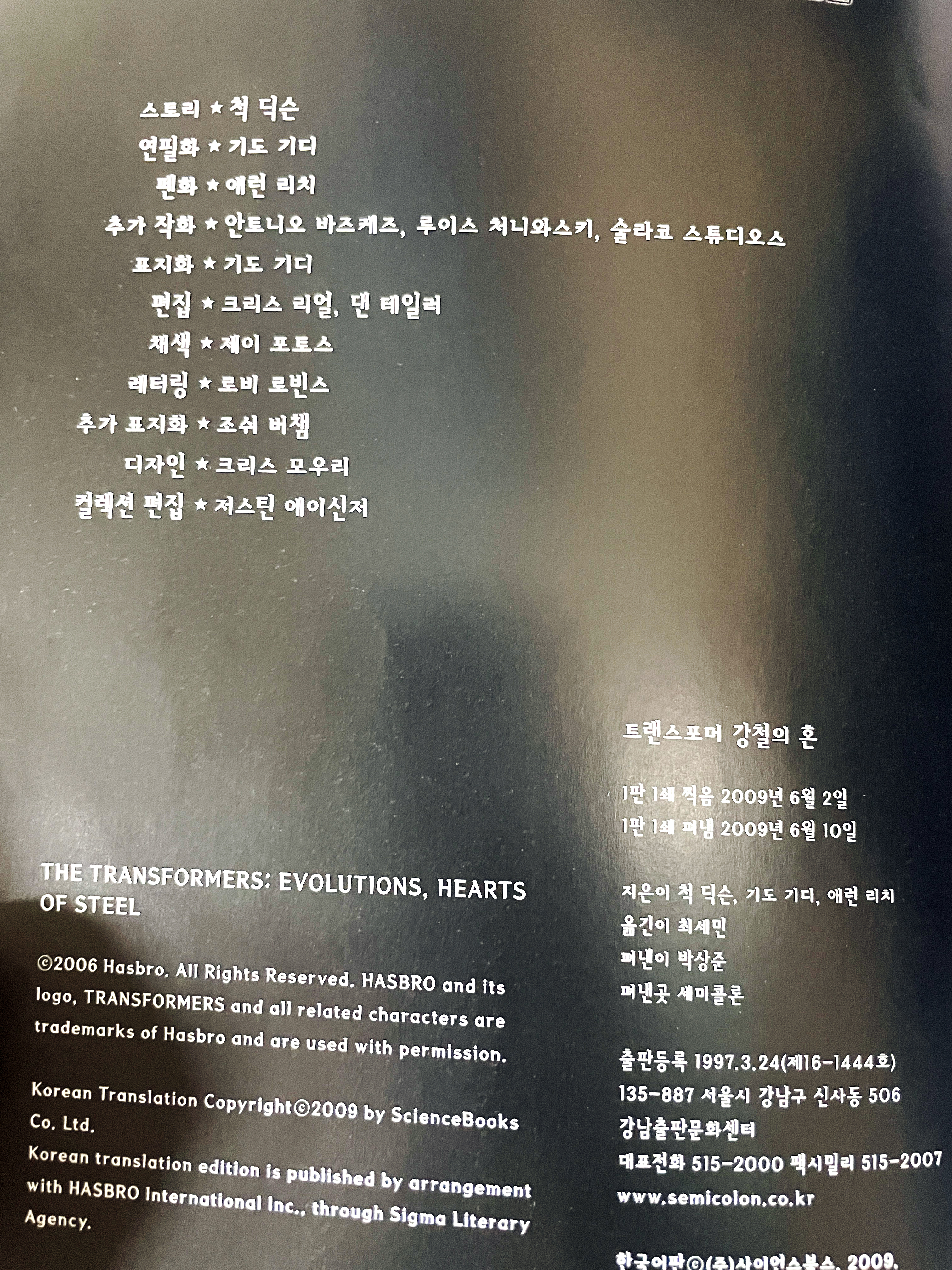 2009년 당시 세미콜론을 통해 정식 발매된 <트랜스포머: 강철의 혼>은 중고 시장에서 꽤 오랫동안 8~9만원 가격대의 고가로 판매되고 있었습니다. 그러다, 우연히 2~3만원 가격대의 중고 서적을 발견할 수 있었고 구매하게 됐습니다.