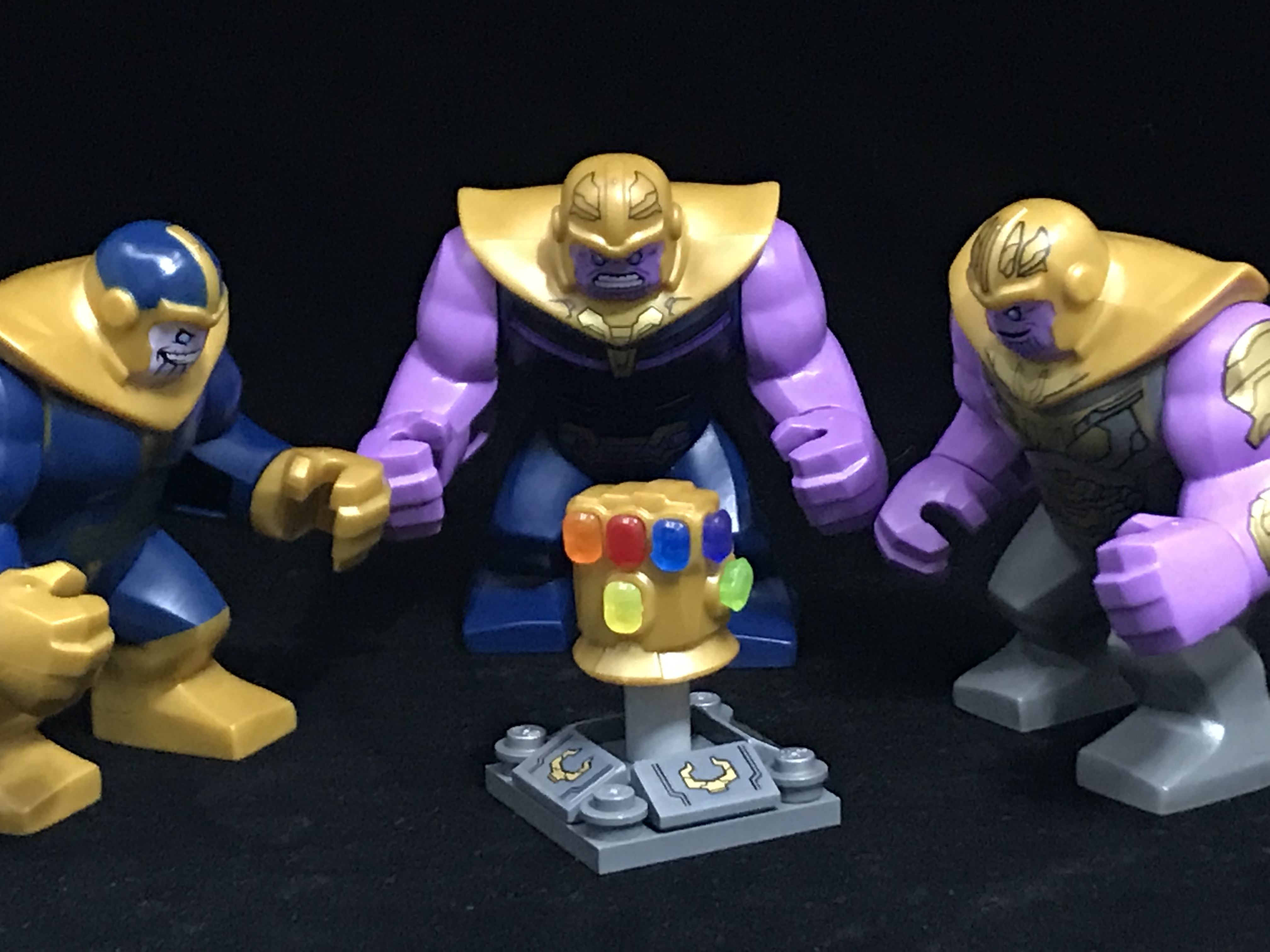 마이티 마이크로 미니피겨 타노스를 제외한, 모든 타노스 대형피겨를 모았습니다. 왼쪽부터 2013년, 2018년, 2019년 순으로 출시된 타노스 미니피겨들.