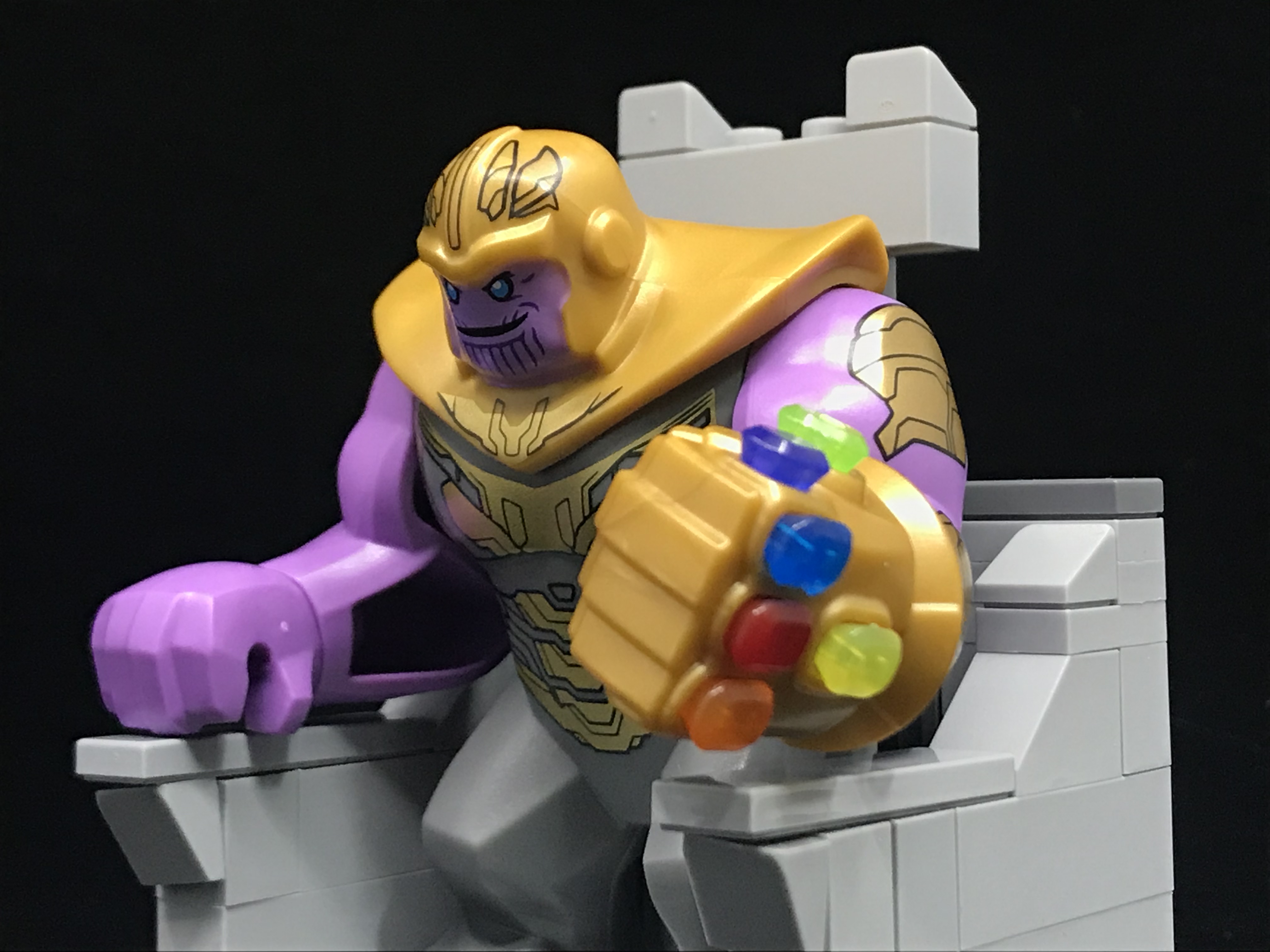 앞서 완성했던 의자에 앉은 타노스.