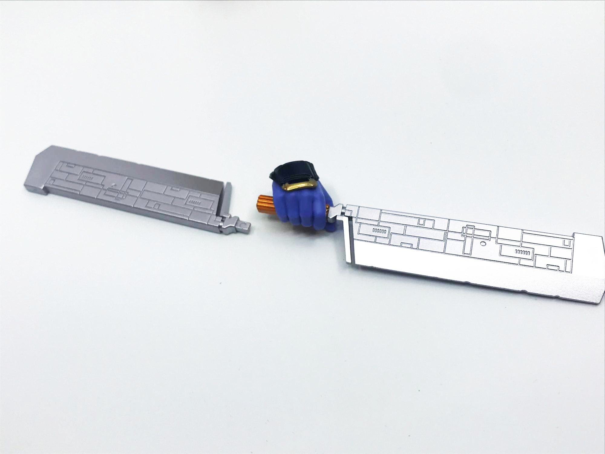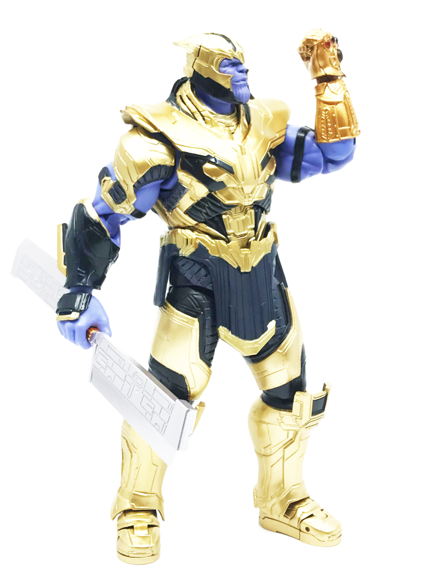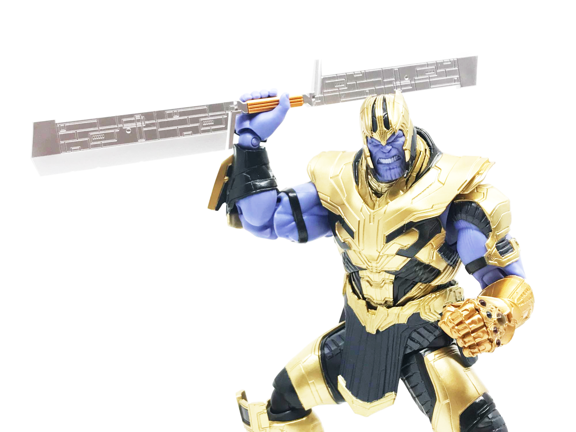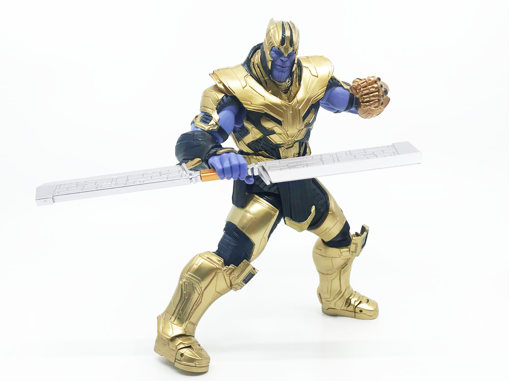본 제품에서 사용되는 타노스의 검은 <어벤져스: 엔드게임>이 개봉하기도 훨씬 전, 2018년 말 즈음에 유출된 설정화를 기반으로 하고 있는 것이 특징입니다. 검은 한쪽 날을 분리해서 손에 쥐는 방식으로 착용합니다.