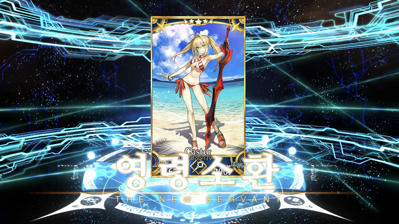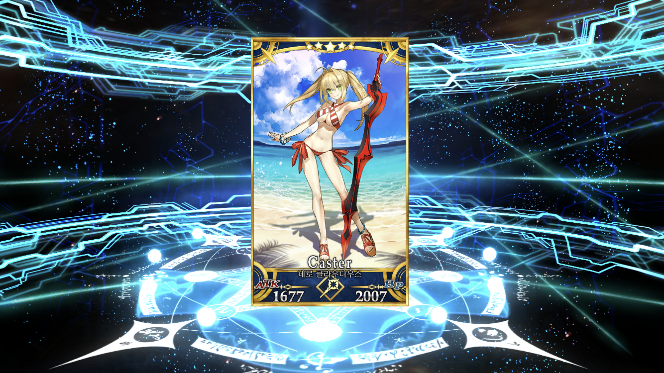 2019년엔 C.C.C. 이벤트 이후론 별로 돌릴 게 없었기에, -특히, 불야성의 캐스터가 꽝 같은 성능 덕에 거른 것도 있지만 - 느긋하게 돌이나 모으고 있었으나, 수영복 니토크리스의 기묘함에 그동안 모은 성전편을 성정석으로 바꿉니다. 비록, 10연차할 돌도 안 되지만……