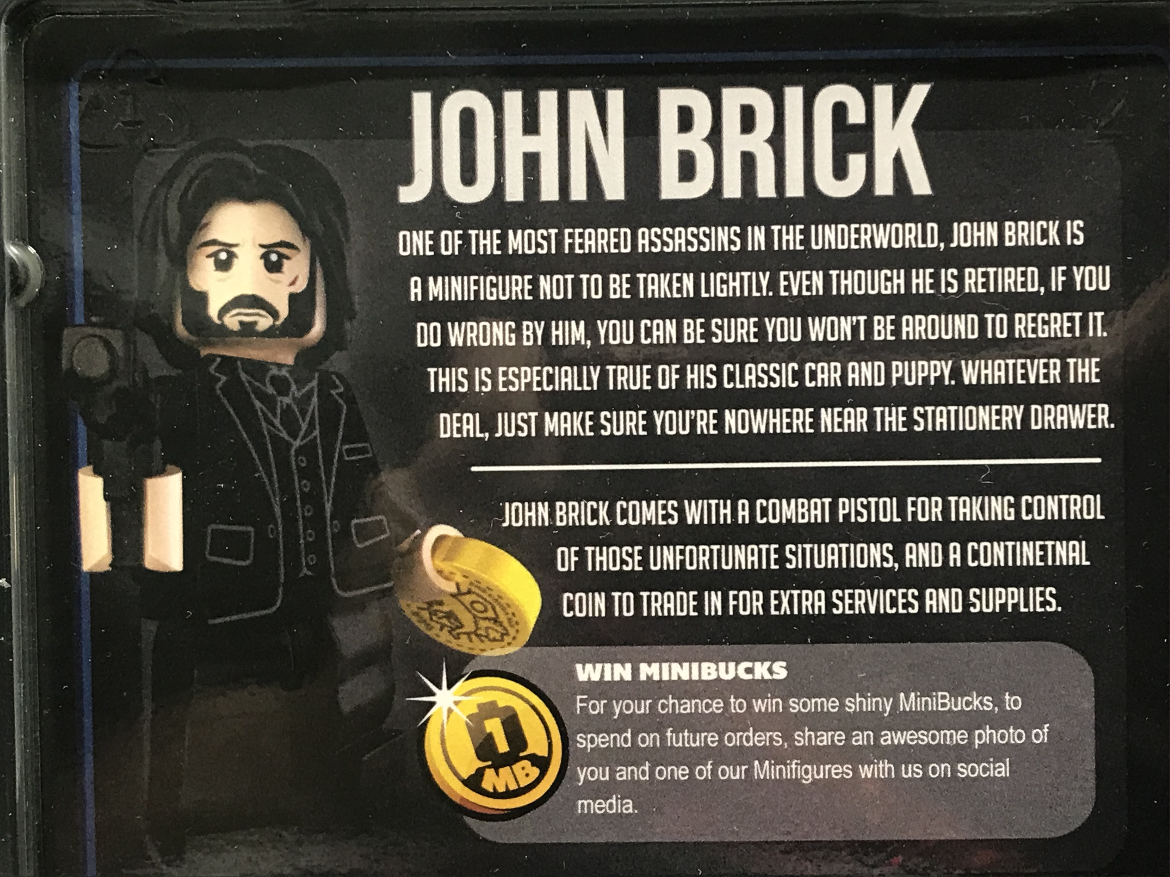 <존 윅 시리즈>가 청소년 관람불가 등급인 것도 있어서, 공식적으로 레고 미니피겨로 출시될 일은 전혀 없기에, 이렇게 커스텀 미니피겨를 구매하게 됩니다.