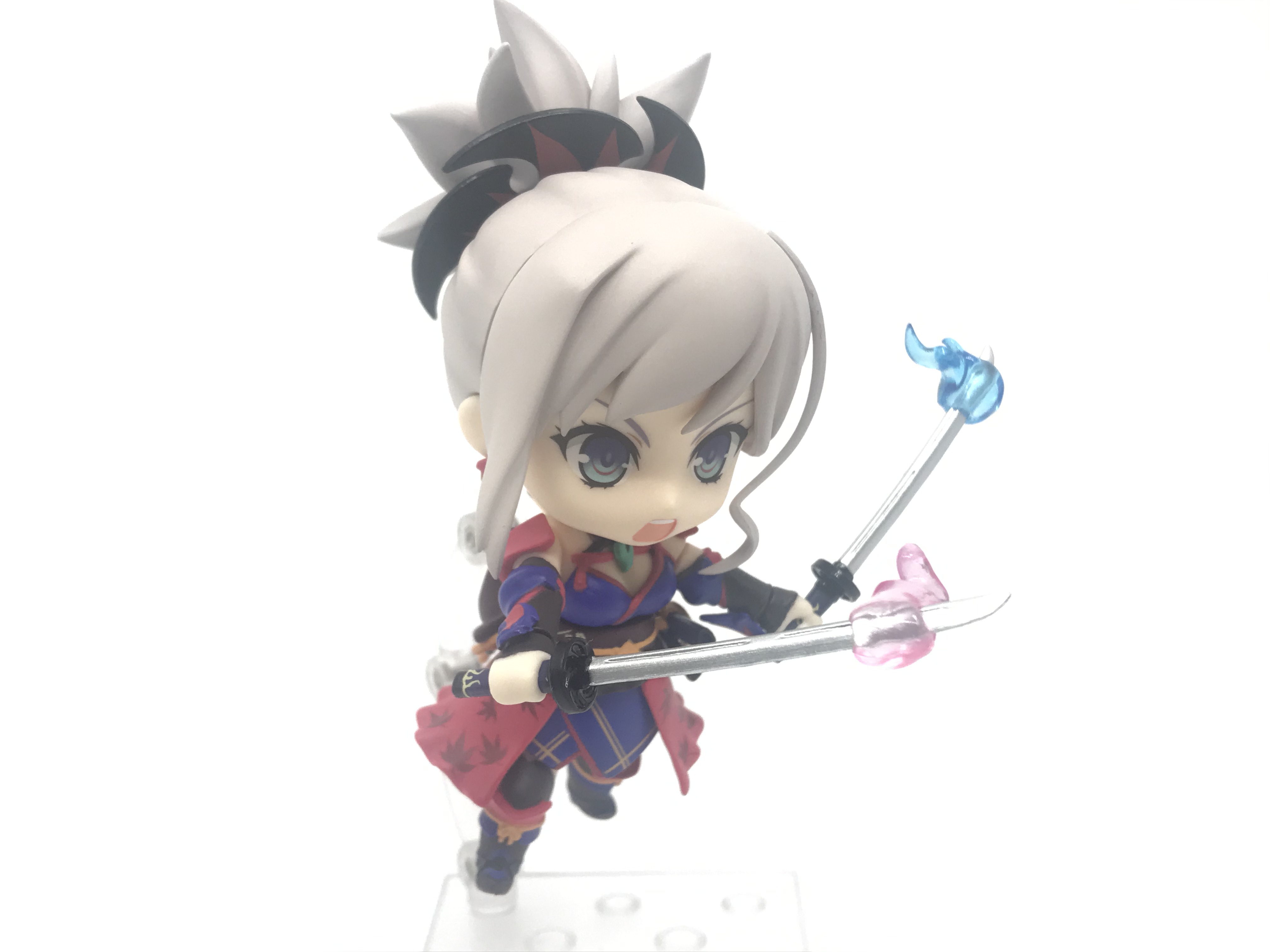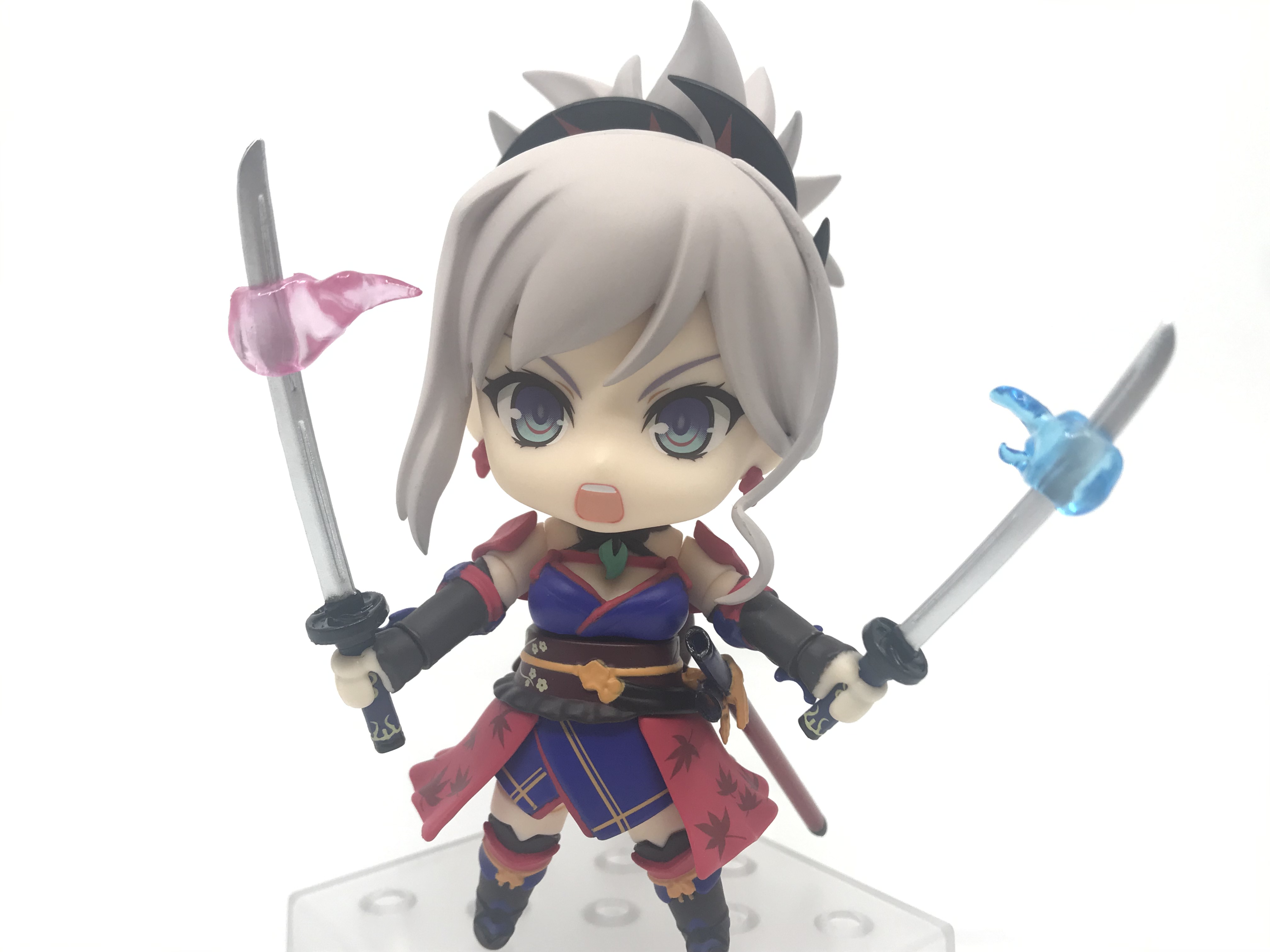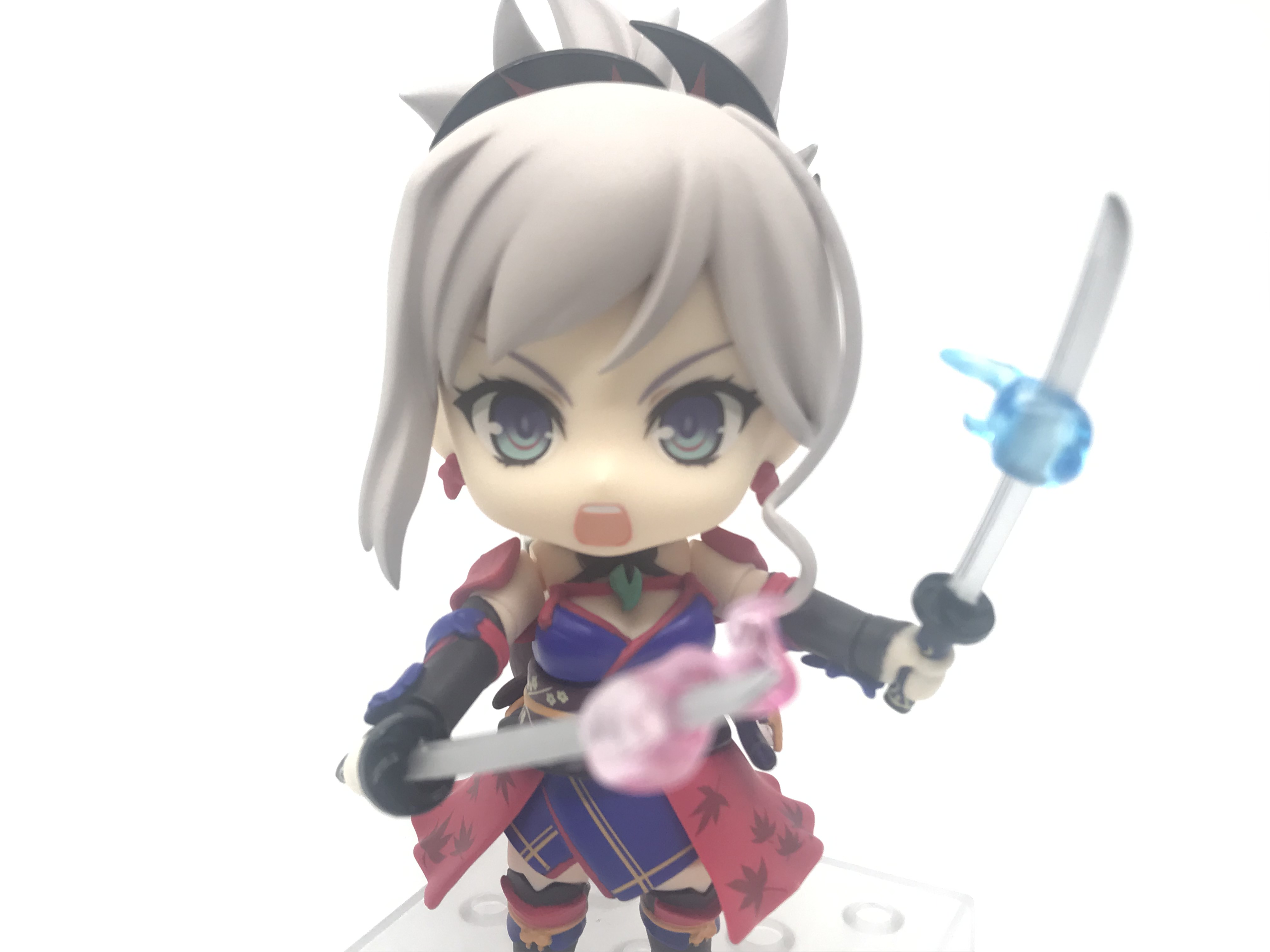 넨도로이드 답게 캐릭터 비주얼은 정말 훌륭합니다. 단풍 무늬 치마도 그렇고 호평할 요소는 한 가득. 비록, 보구 재현이 되진 않지만, 무사시 본체의 퀄리티에 흡족하기에 그러려니하고 넘어갑니다. 흑의 라이더도 히포그리프 보구는 재현되지 않는데요 뭘…
