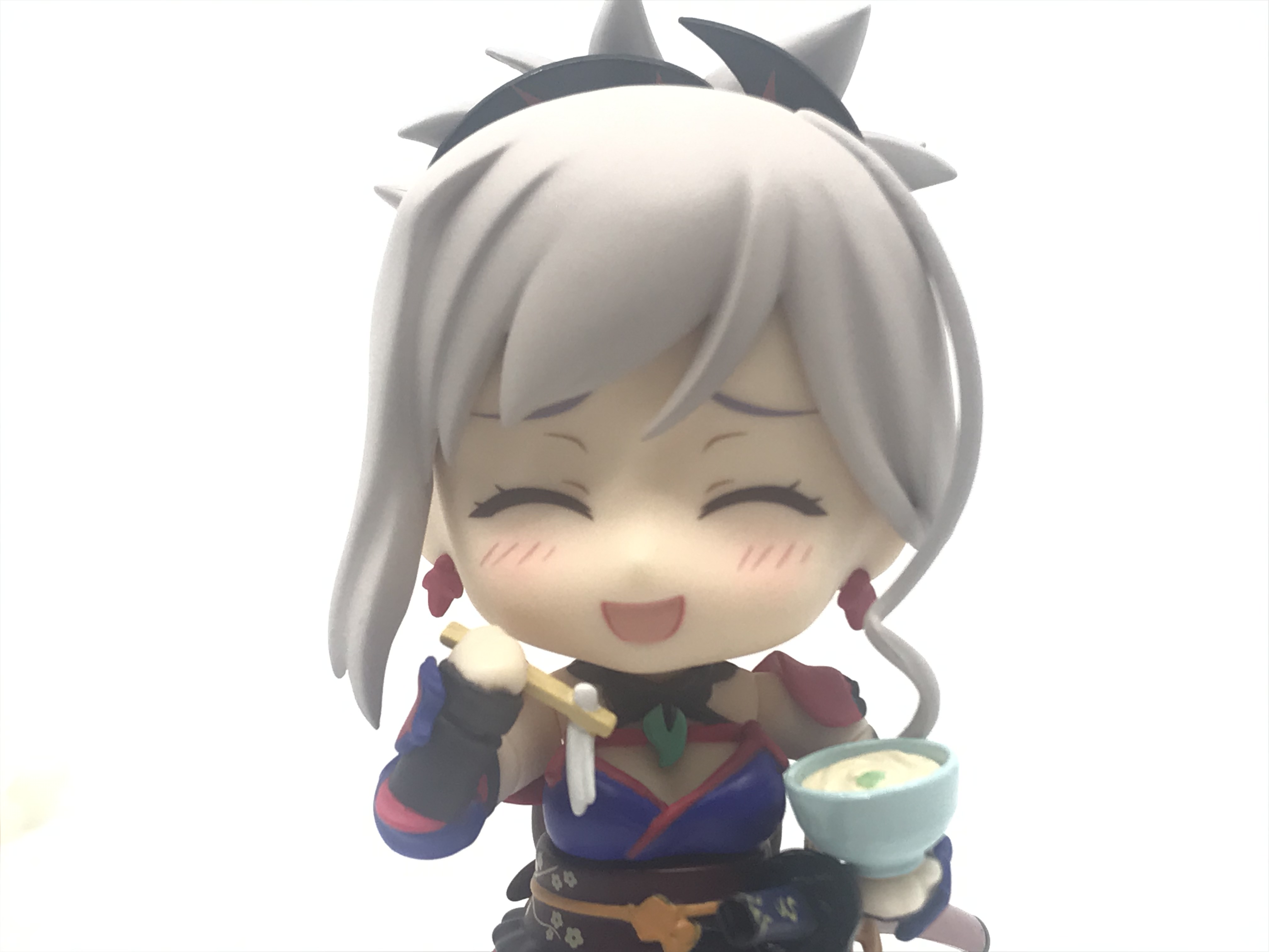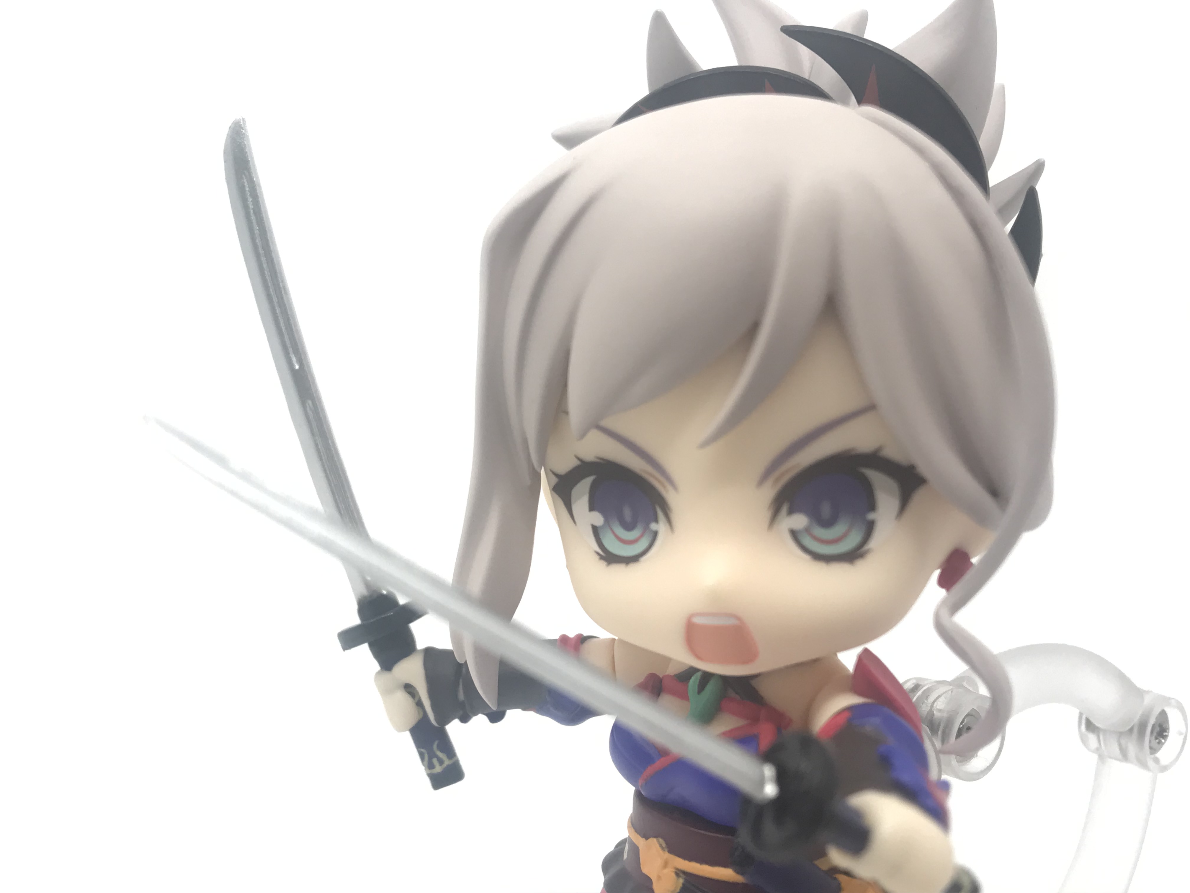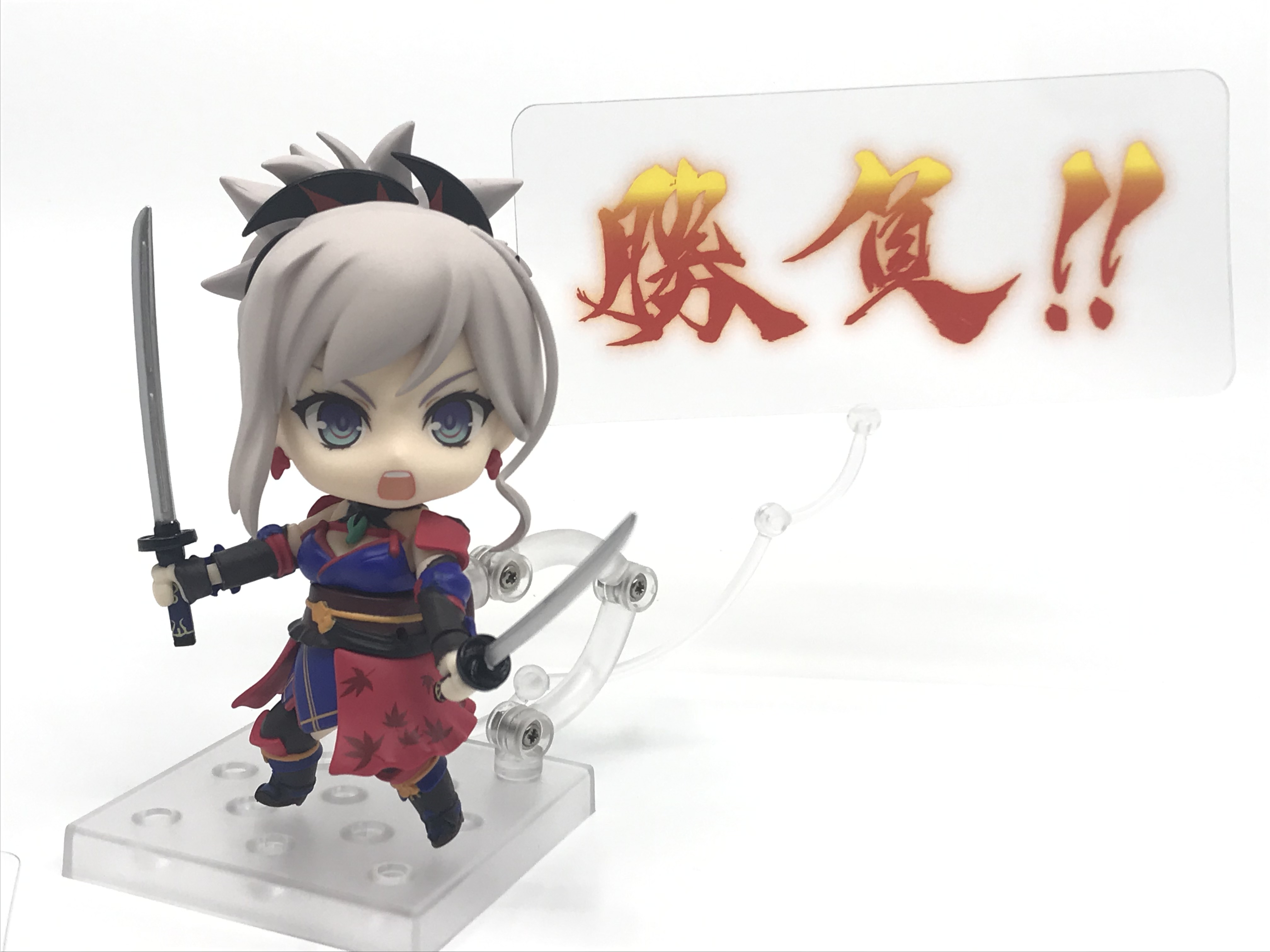 넨도로이드 답게 캐릭터 비주얼은 정말 훌륭합니다. 단풍 무늬 치마도 그렇고 호평할 요소는 한 가득. 비록, 보구 재현이 되진 않지만, 무사시 본체의 퀄리티에 흡족하기에 그러려니하고 넘어갑니다. 흑의 라이더도 히포그리프 보구는 재현되지 않는데요 뭘…